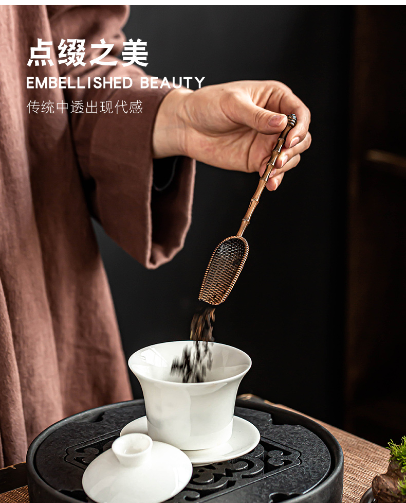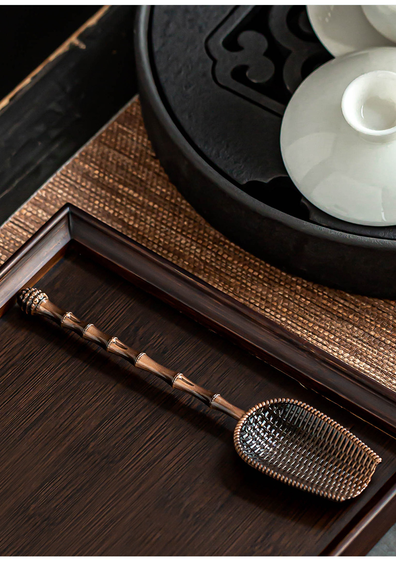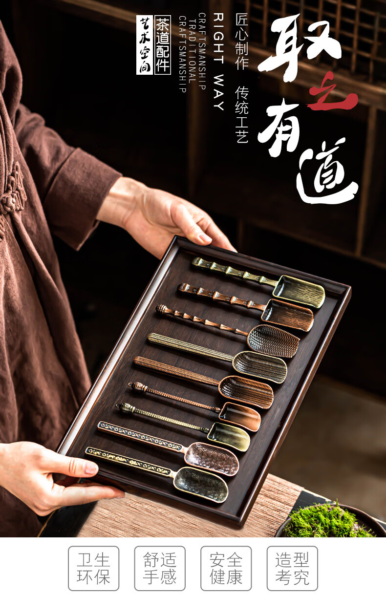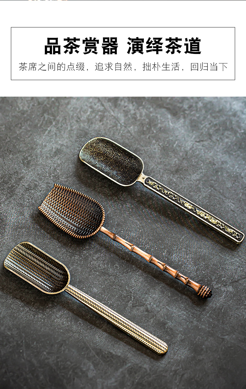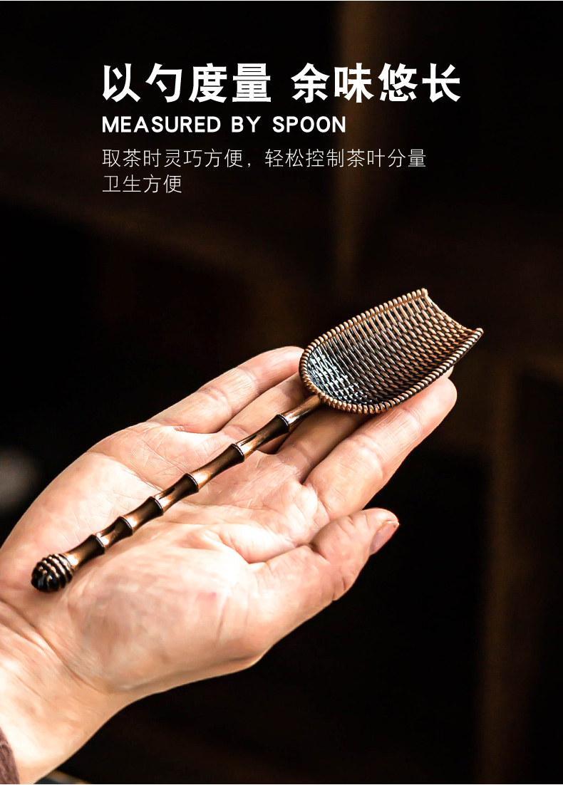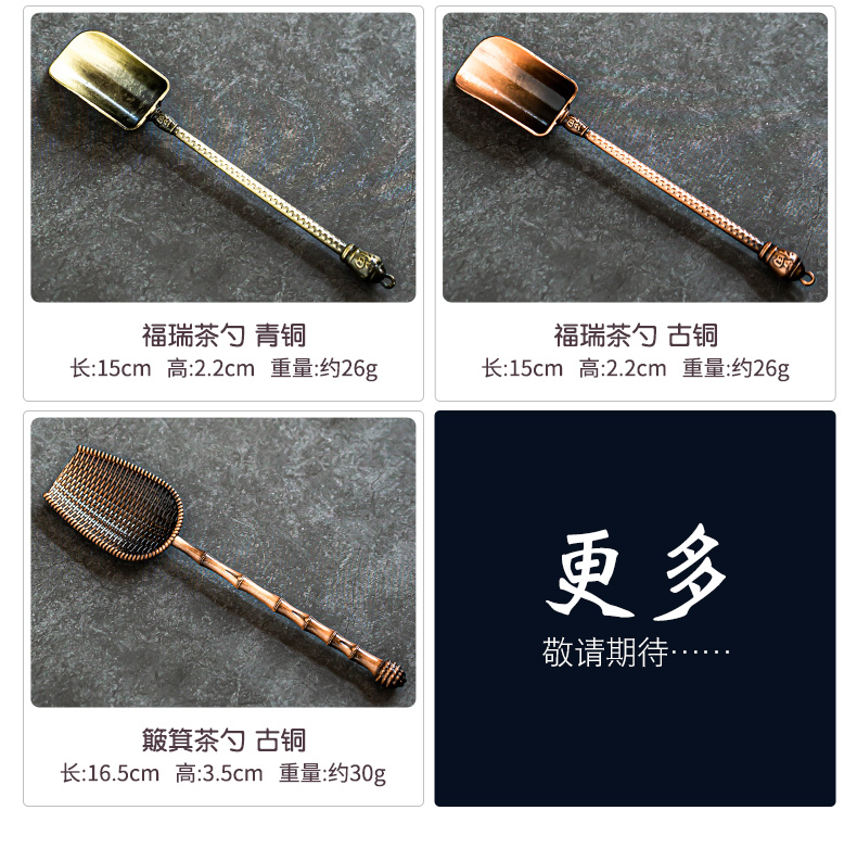 Porcelain tea set (cipaiming teaset) Porcelain tea spoon household tea spoon tea spoon Kung Fu tea set tea ceremony accessories copper color alloy tea spoon