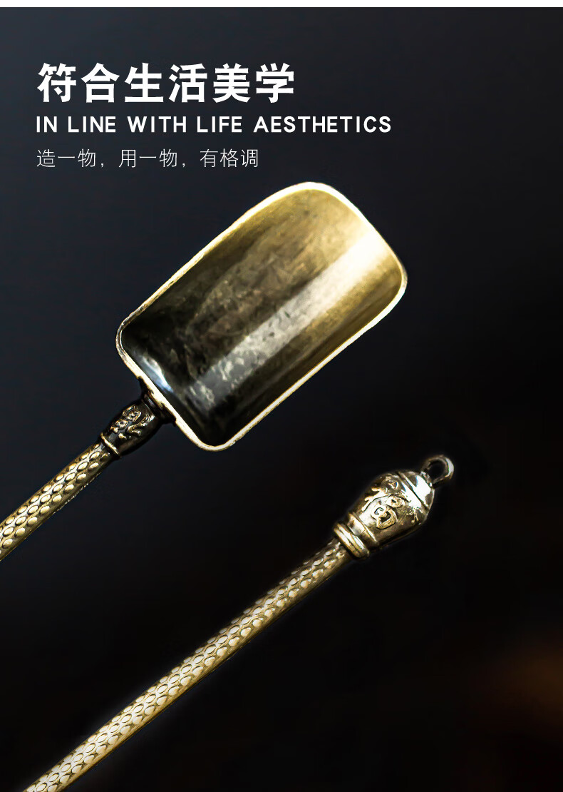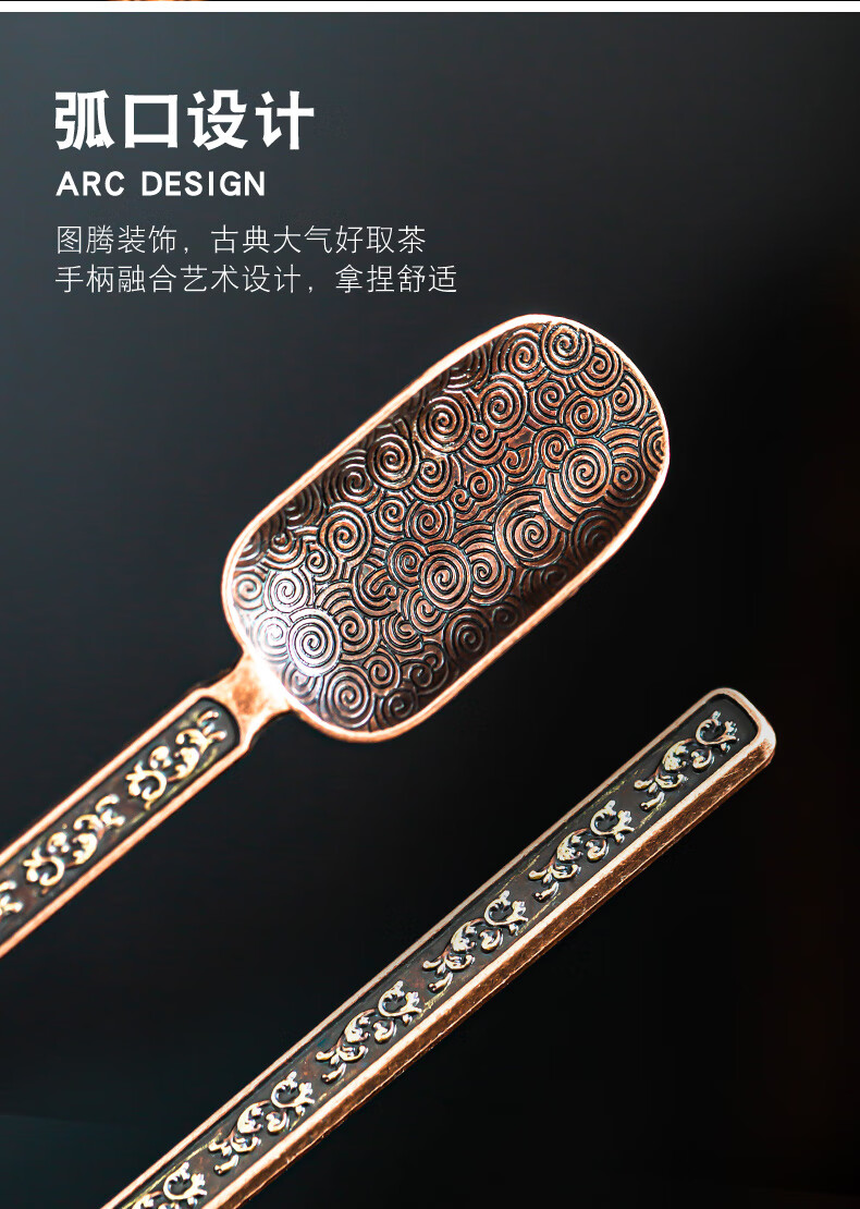 Porcelain tea set (cipaiming teaset) Porcelain tea spoon household tea spoon tea spoon Kung Fu tea set tea ceremony accessories copper color <Totem> alloy tea spoon