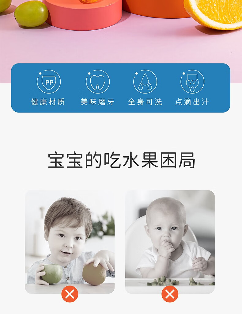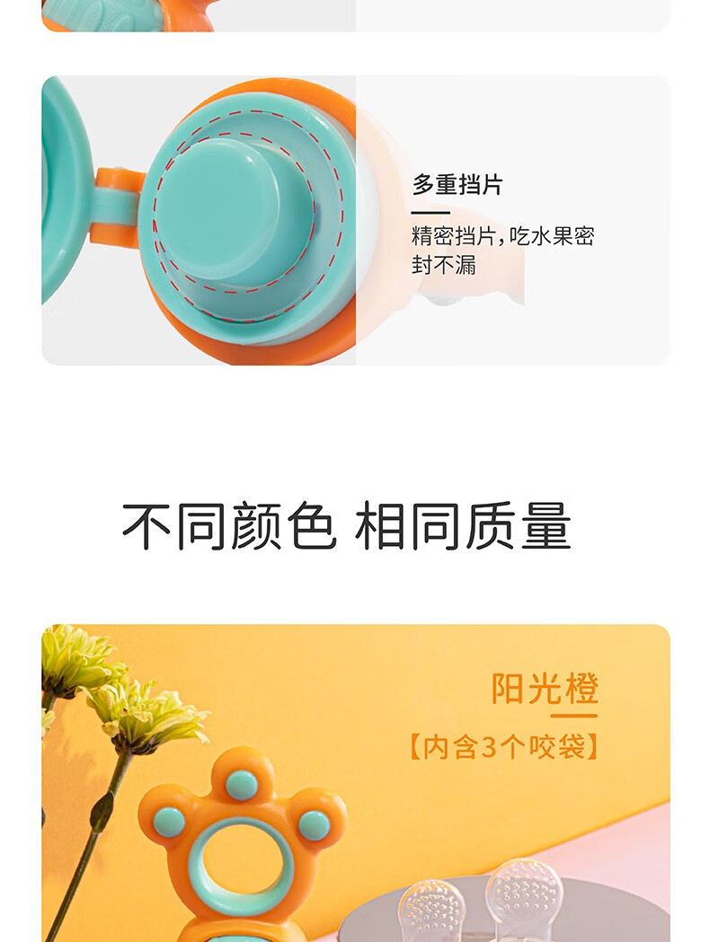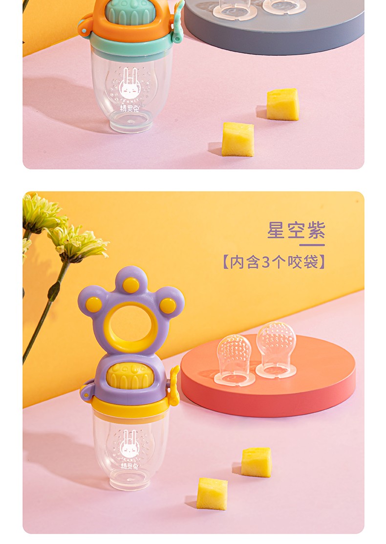 Elf Rabbit Bite Bag Fruit and Vegetable Baby Soothing Teether Baby Fruit and Vegetable Bite Baby Teething Fruit Food Food Supplement Sunshine Orange-Pushable Contains 3 Bite Bags