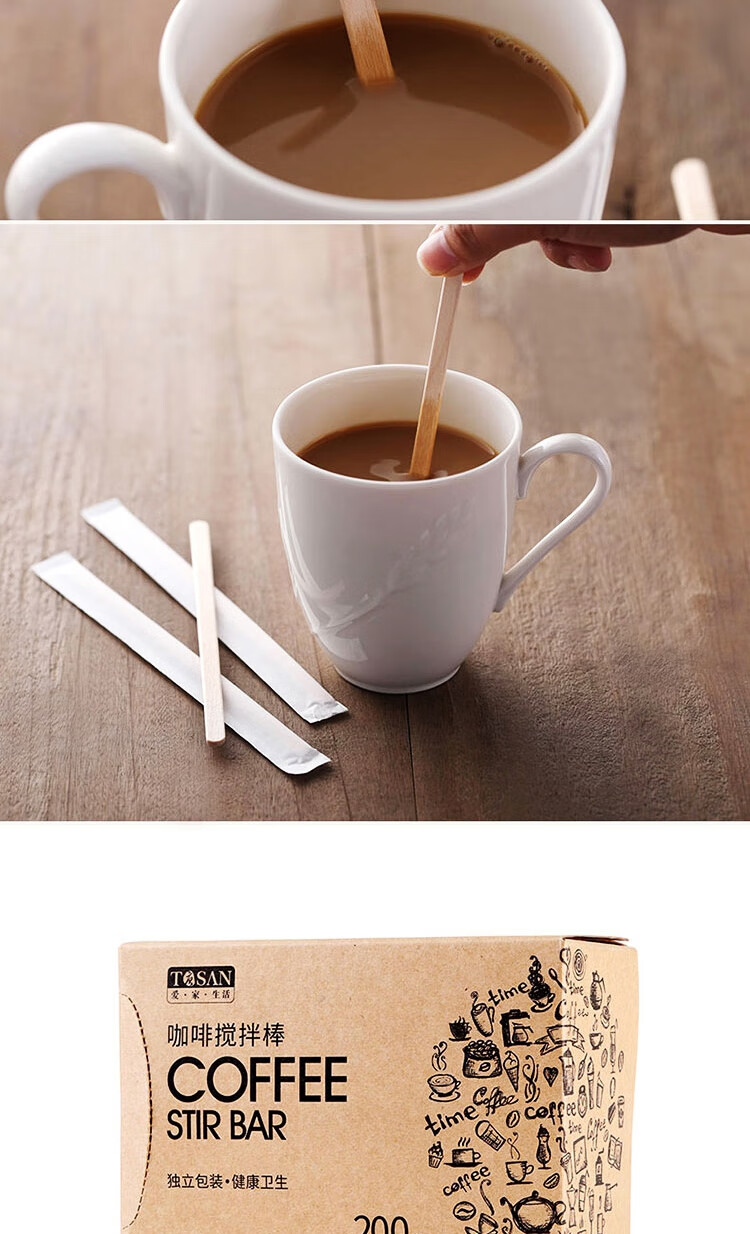 Tang Zong Chopsticks Disposable Coffee Stirring Wooden Coffee Stirring Sticks Individually Packed 14cm-200 Count