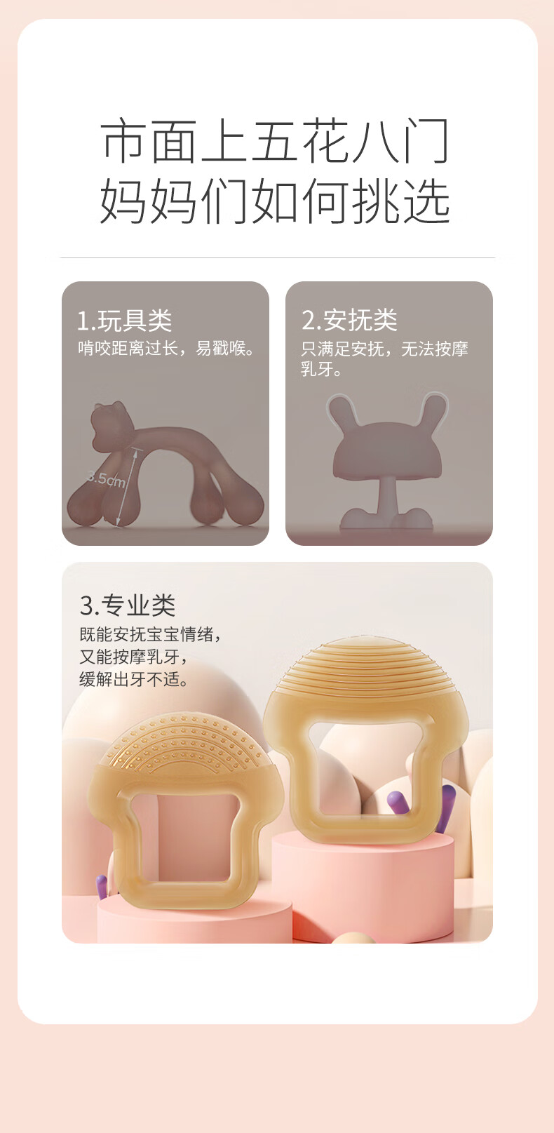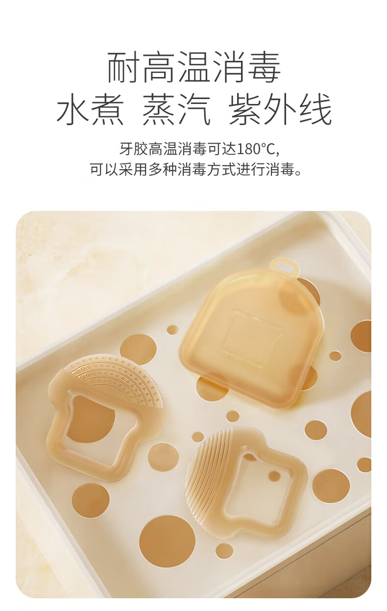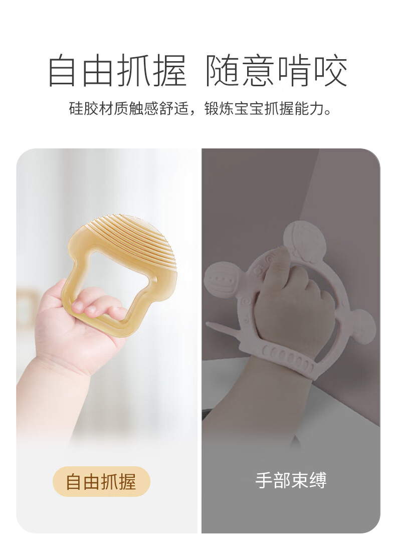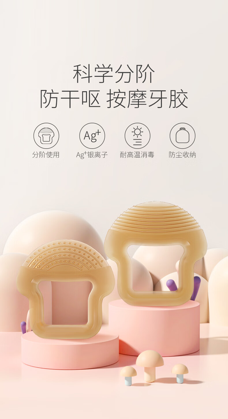 SUNNYBEBE soothing teether, full silicone baby to lull to sleep, bite and bite, newborn oral chewing toy, anti-eating hand artifact, mushroom teether, 2 pieces, contact type + stripe type