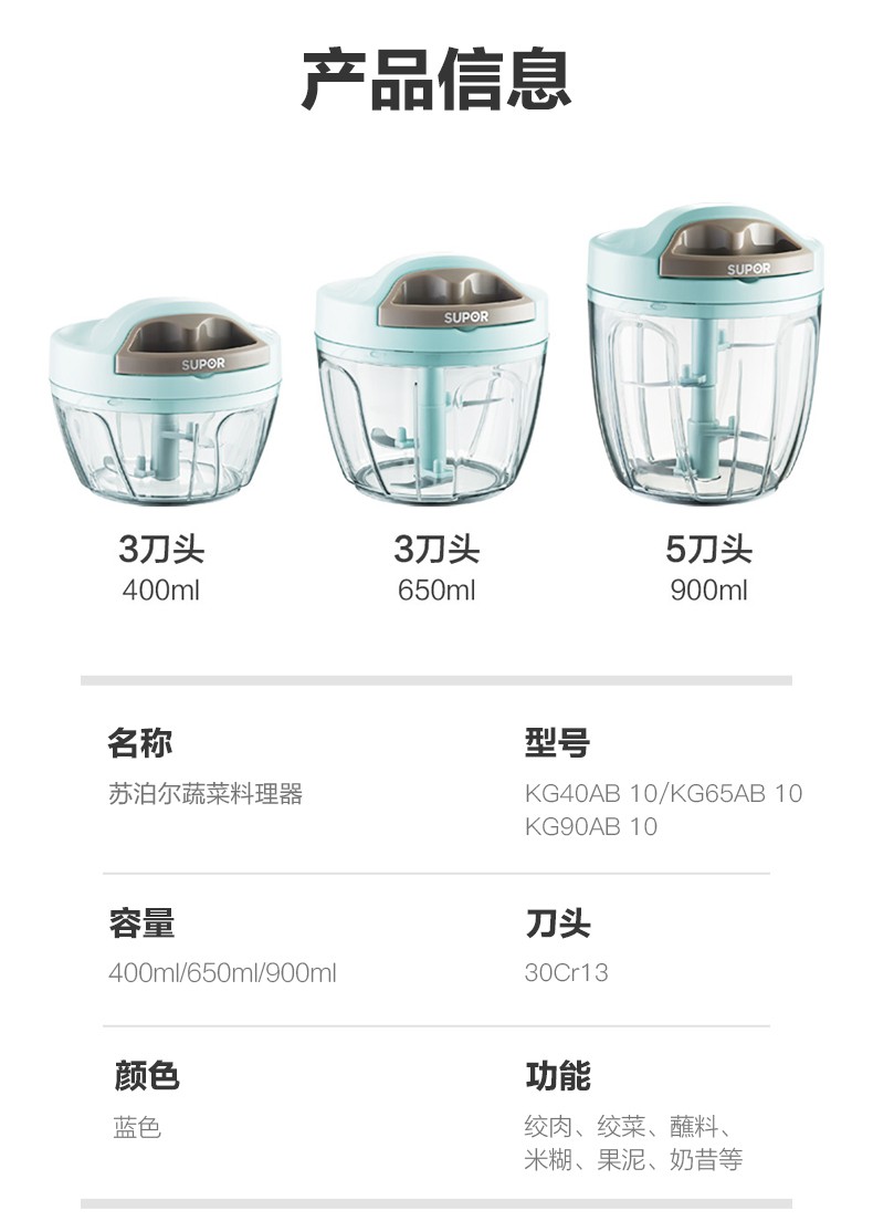 SUPOR household hand-pulled garlic artifact chili pepper pounded garlic stirred minced ginger garlic minced garlic vegetable cutter cooking machine food supplement machine 400ML KG40AB10