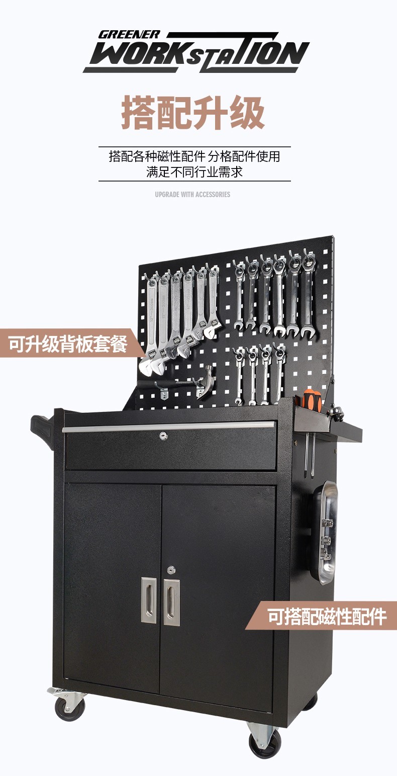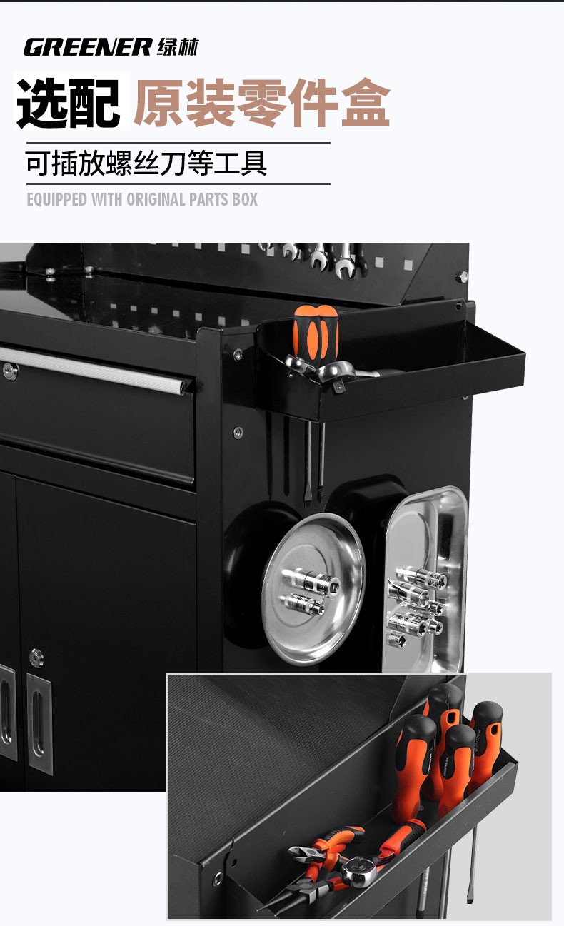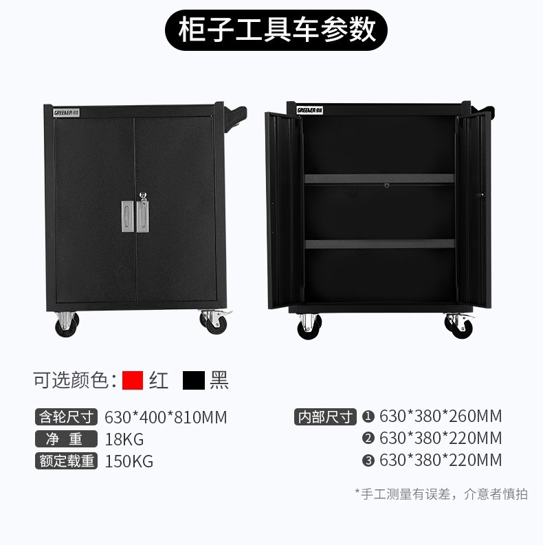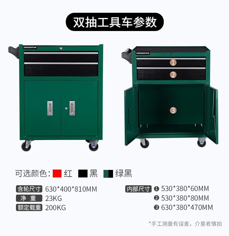 GREENER Tool Cart Multi-function Trolley Auto Repair Workbench Drawer-type Mobile Tool Cabinet Auto Repair Auto Maintenance High-end Extra Large Double Drawing Double Doors - Black