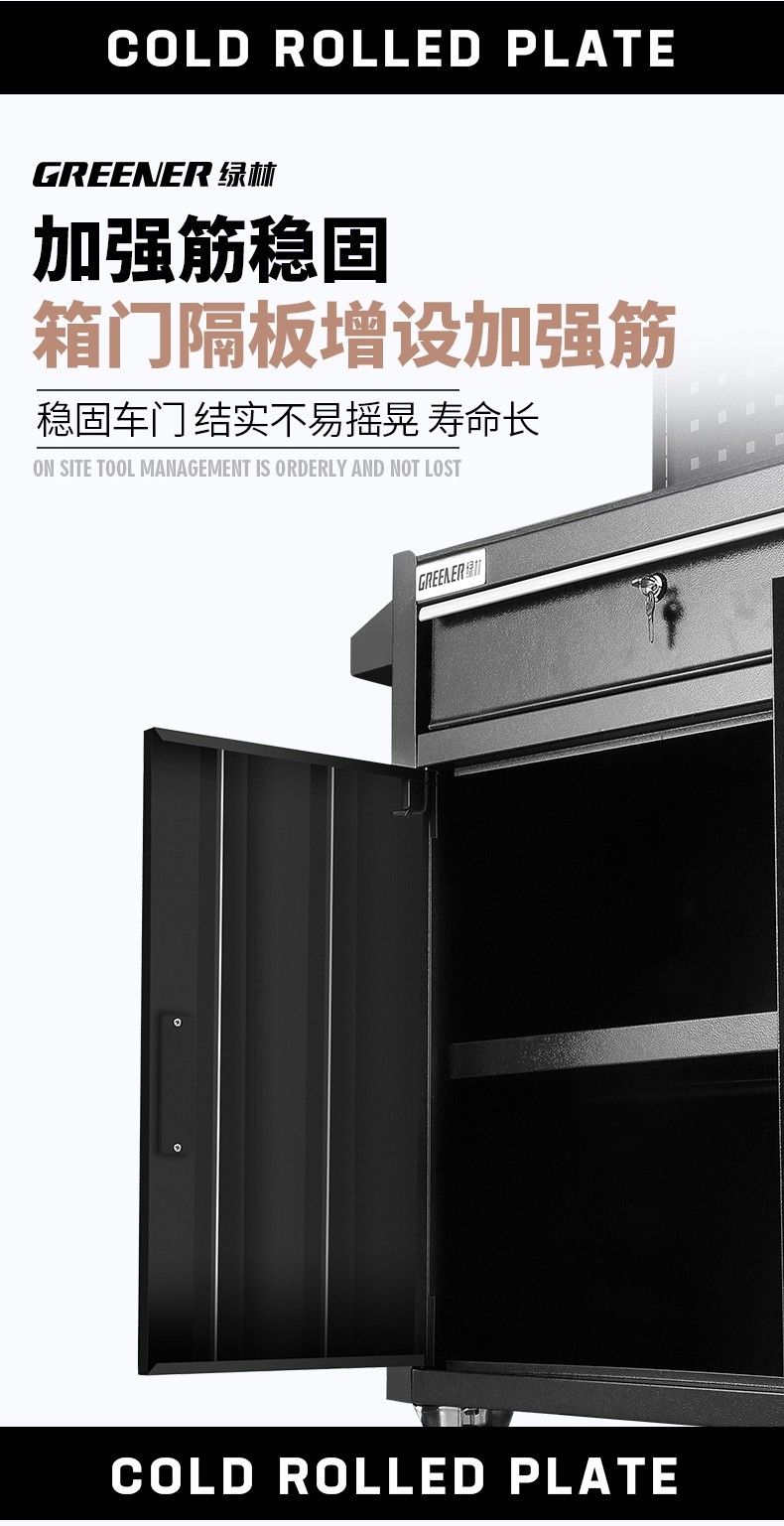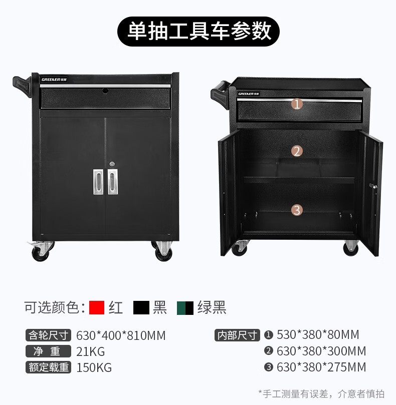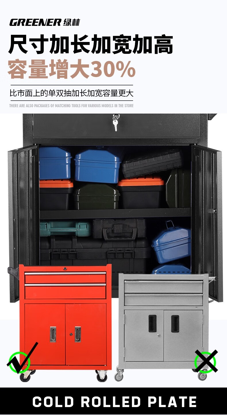 GREENER Tool Cart Multi-function Trolley Auto Repair Workbench Drawer-type Mobile Tool Cabinet Auto Repair Auto Maintenance High-end Extra Large Double Drawing Double Doors - Black