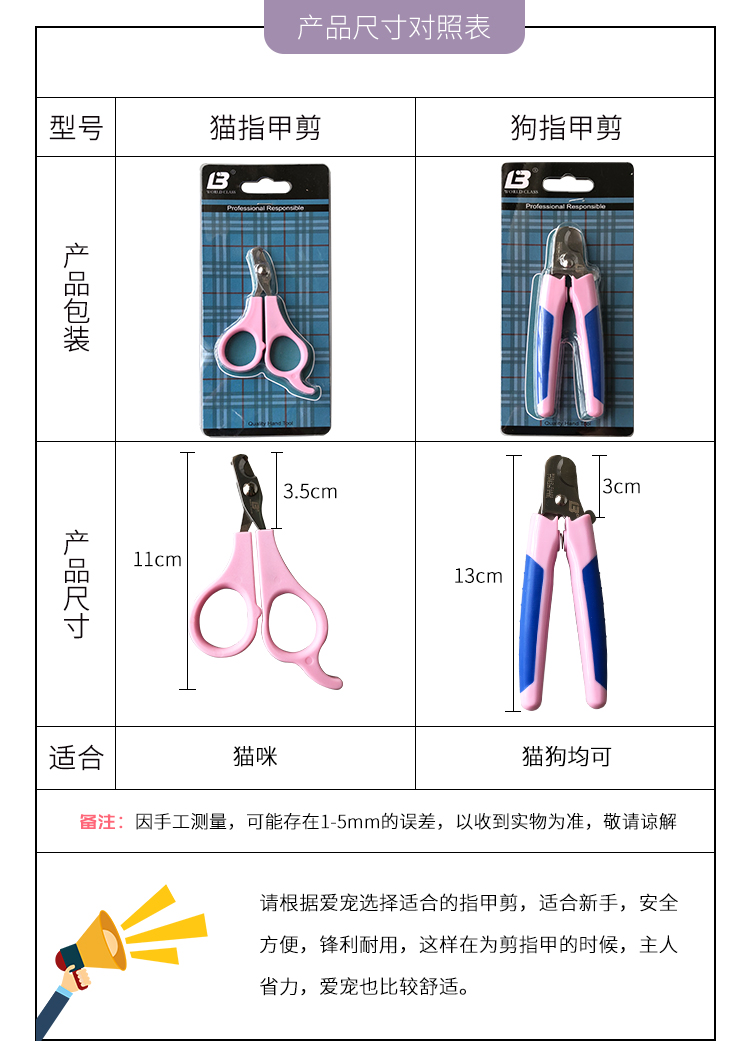 Lebi Cat Nail Clippers Dog Special Nail Clippers Pet Nail Clipper Teddy Golden Retriever Nail Clippers Pink Blue Handle Nail Clippers + Nail File
