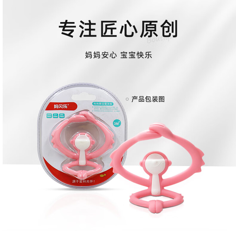 Mombella Yoga Monkey Teether Baby Teething Relief Teething Teether Toy Boilable Silicon Light Blue Yoga Monkey 1 Pack + Anti-chain + Storage Box