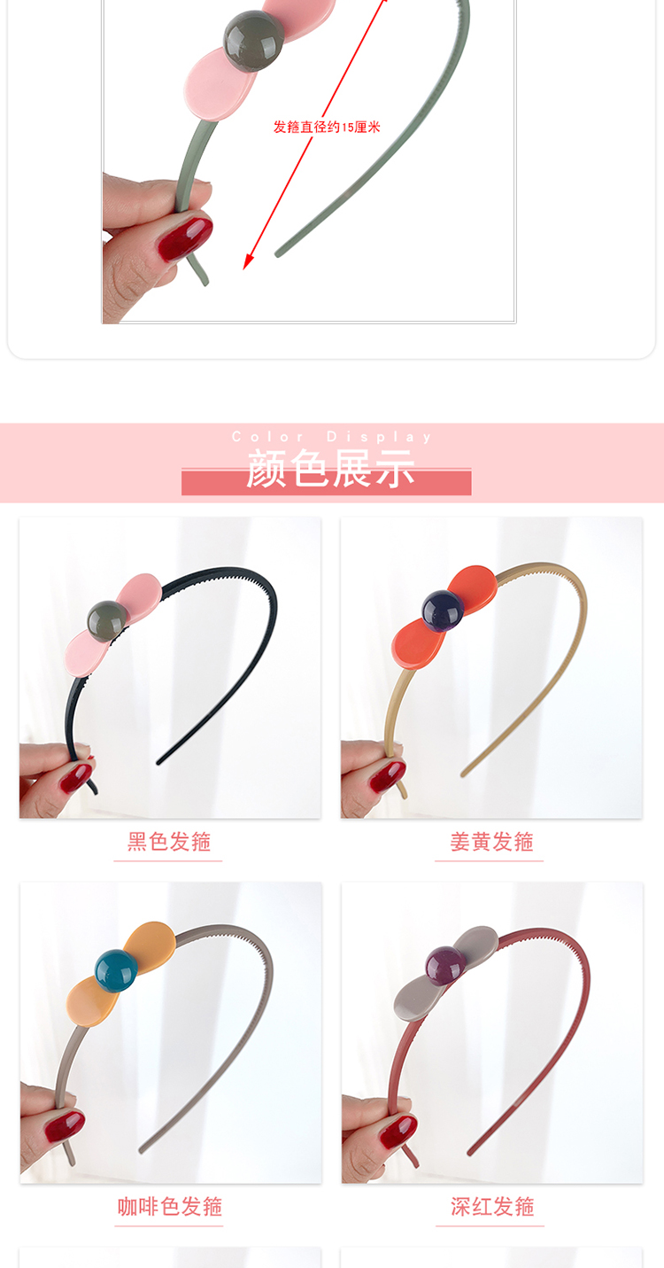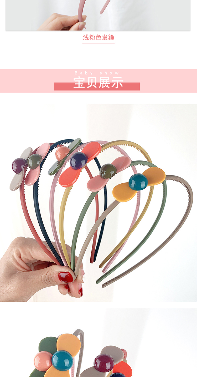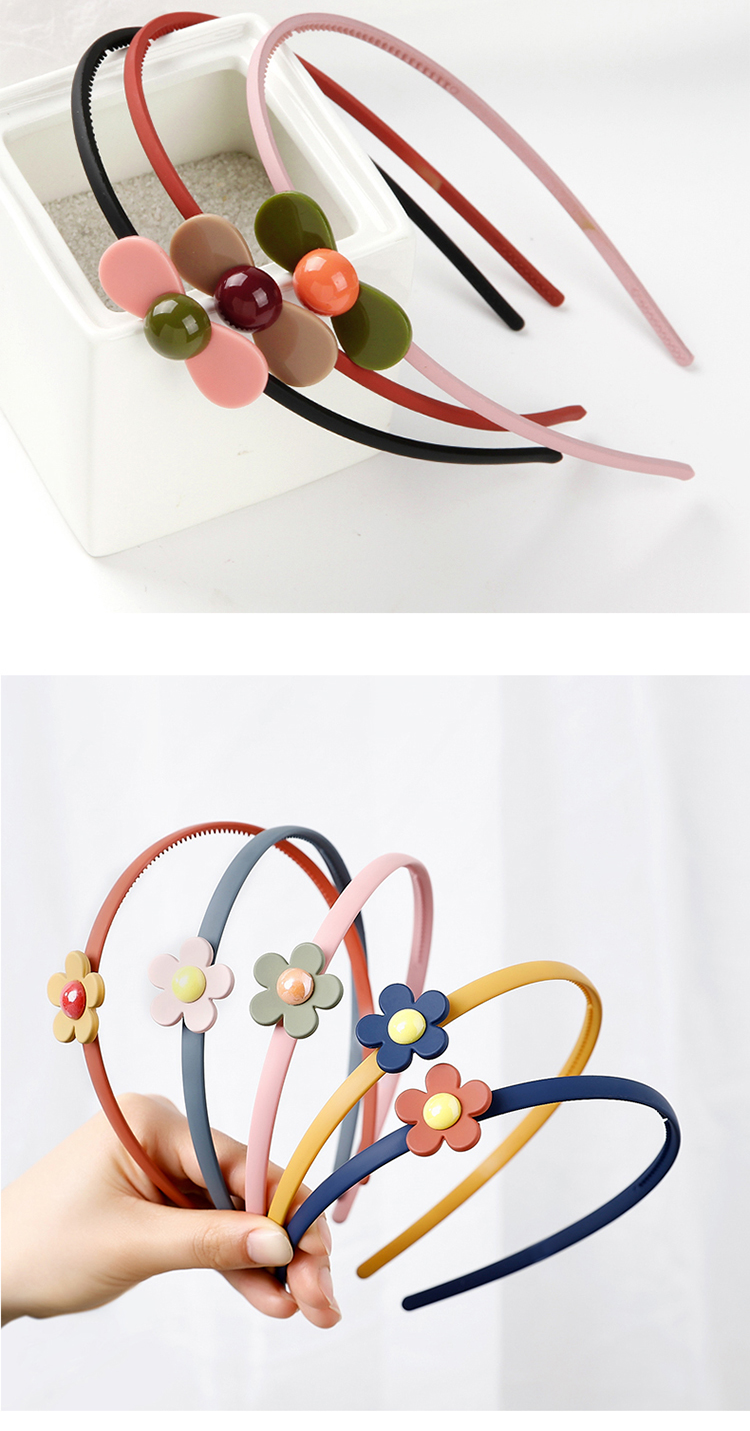 Qingxin children's flower headband girl's cute bow hairpin toothed anti-slip headband little girl student simple headband black headband