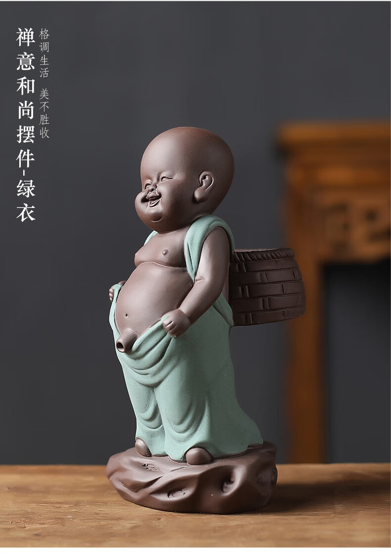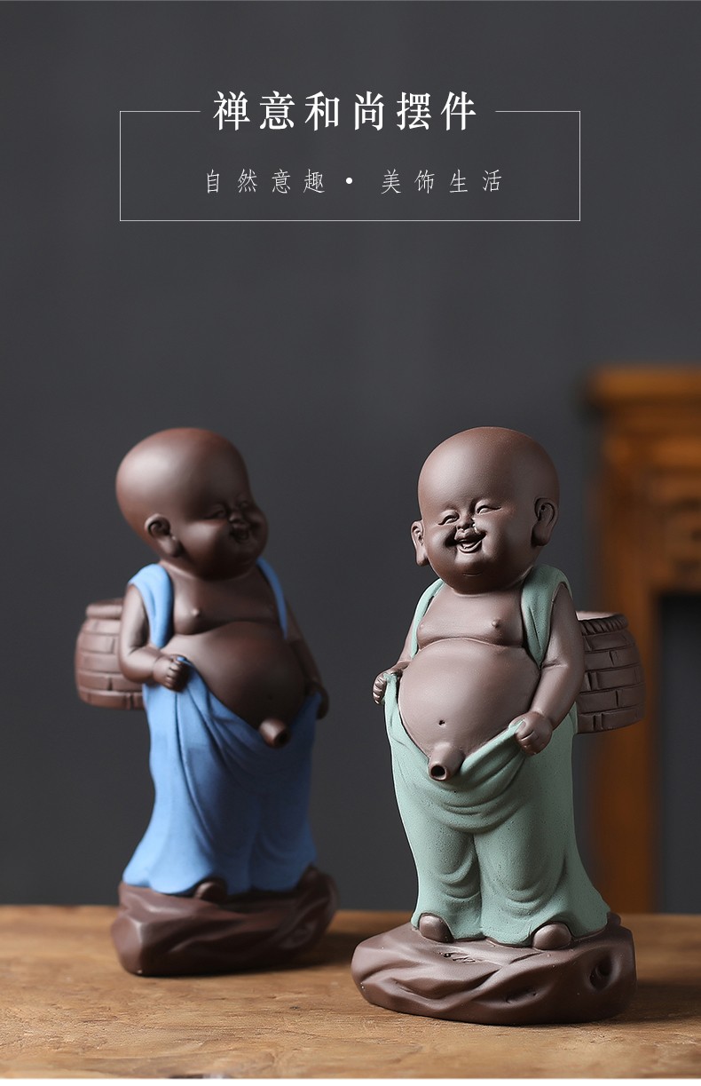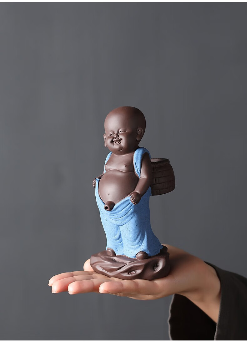 Yuxuan's new Internet celebrity purple clay tea pet attracts wealth, urine boy tea tray accessories, exquisite ornaments, can raise water-squirting little monk tea boy to pee, new product urine boy vibration-Lanyi
