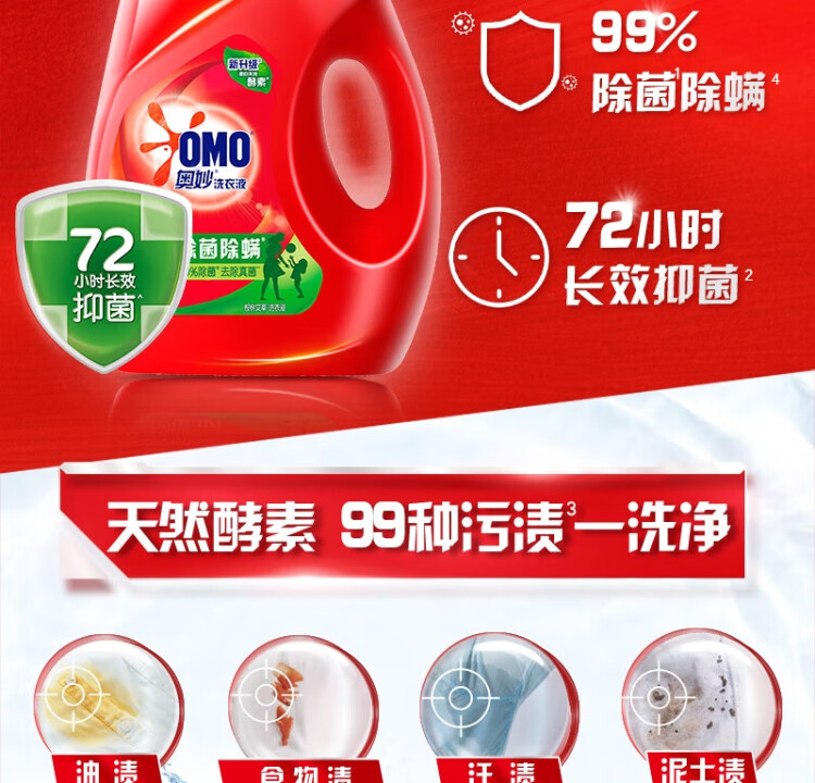 OMO sterilizing and mite-removing enzyme laundry detergent 18.3 Jin Jin equals 0.5 kg / 18.4 Jin Jin equals 0.5 kg (random delivery with new and old packaging)