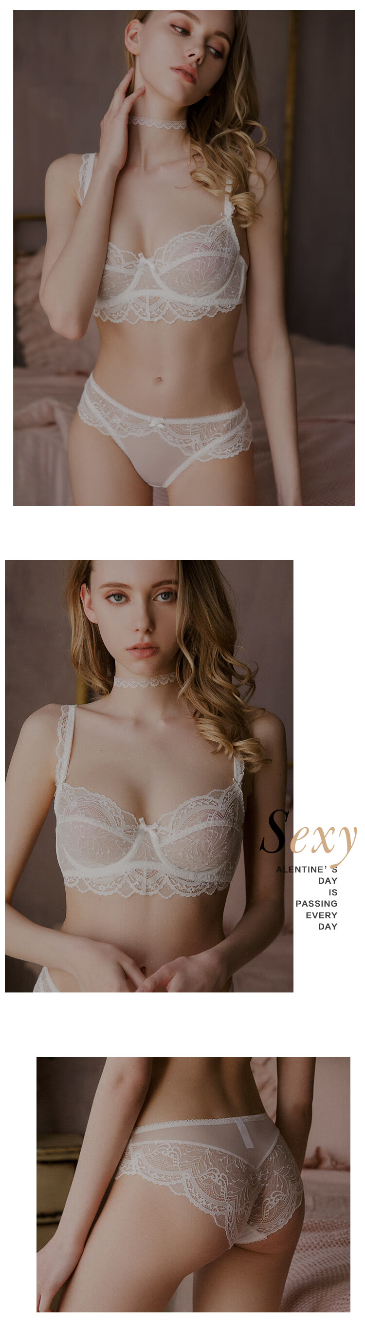 XMXT New Valentine's Day Ultra Thin Lace Sexy Back Push Up Large Size Women's Bra Set Underwear Lace Bra White 38/85C