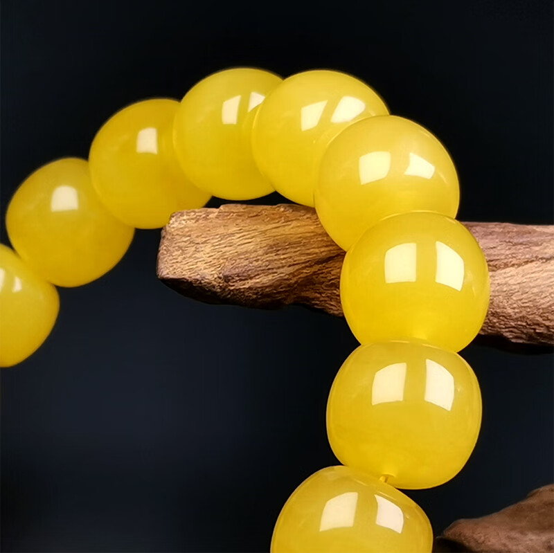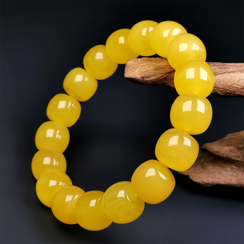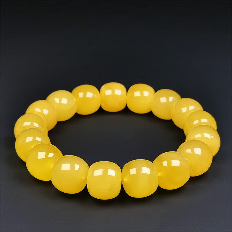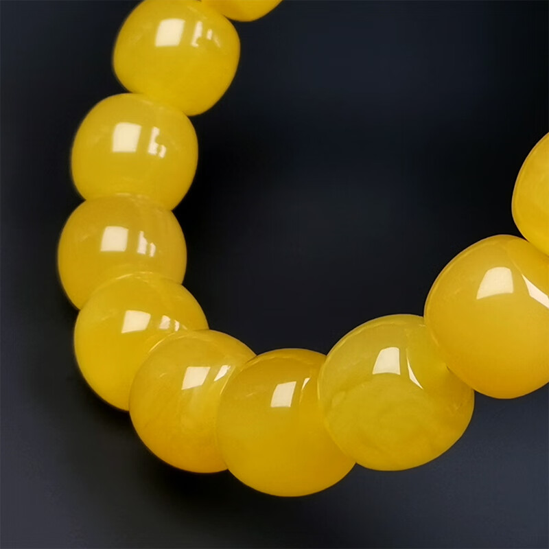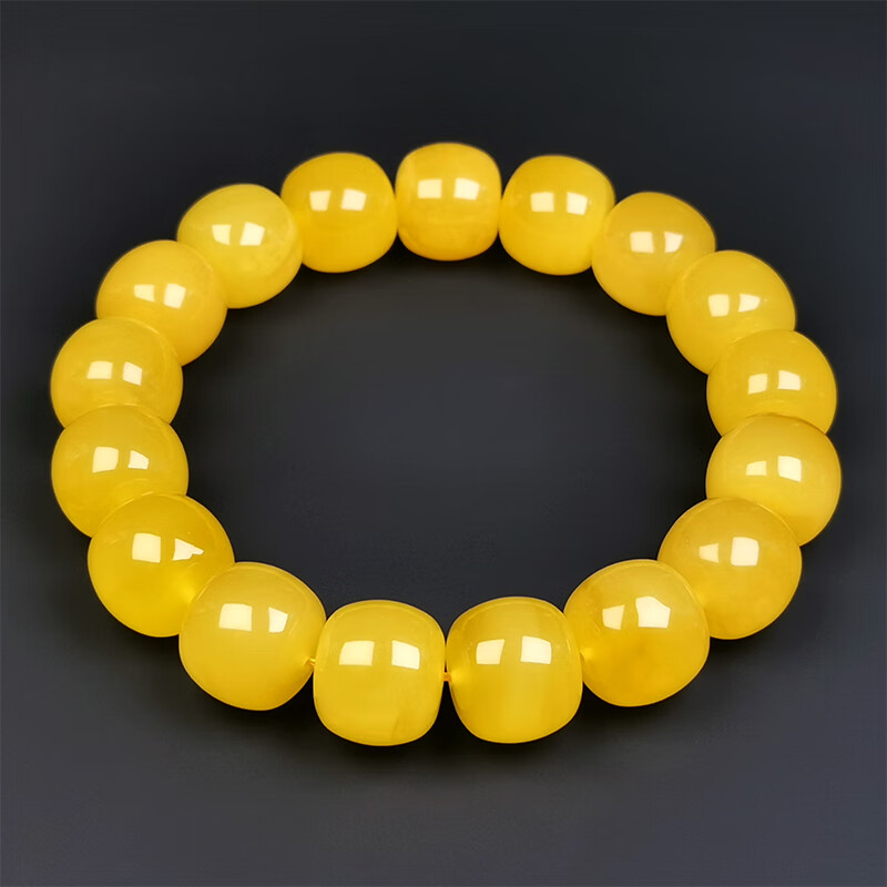 Hupai, one object, one picture, one certificate, natural beeswax bracelet, men's bracelet, chicken fat yellow barrel beads, Russian material, flawless bracelet, 27.69 grams, bead diameter 13.5*12 mm
