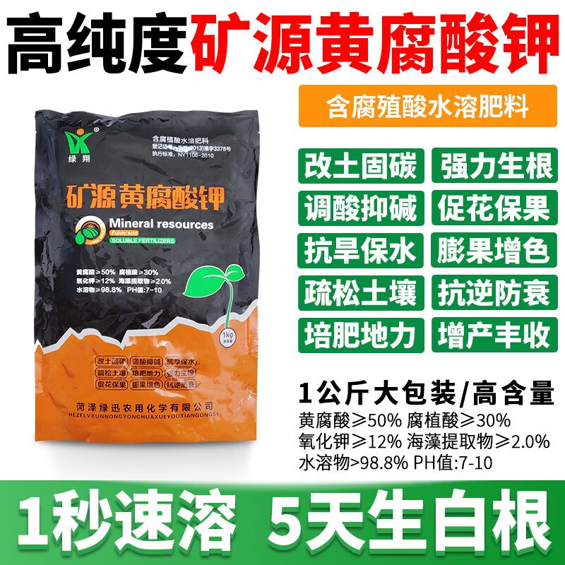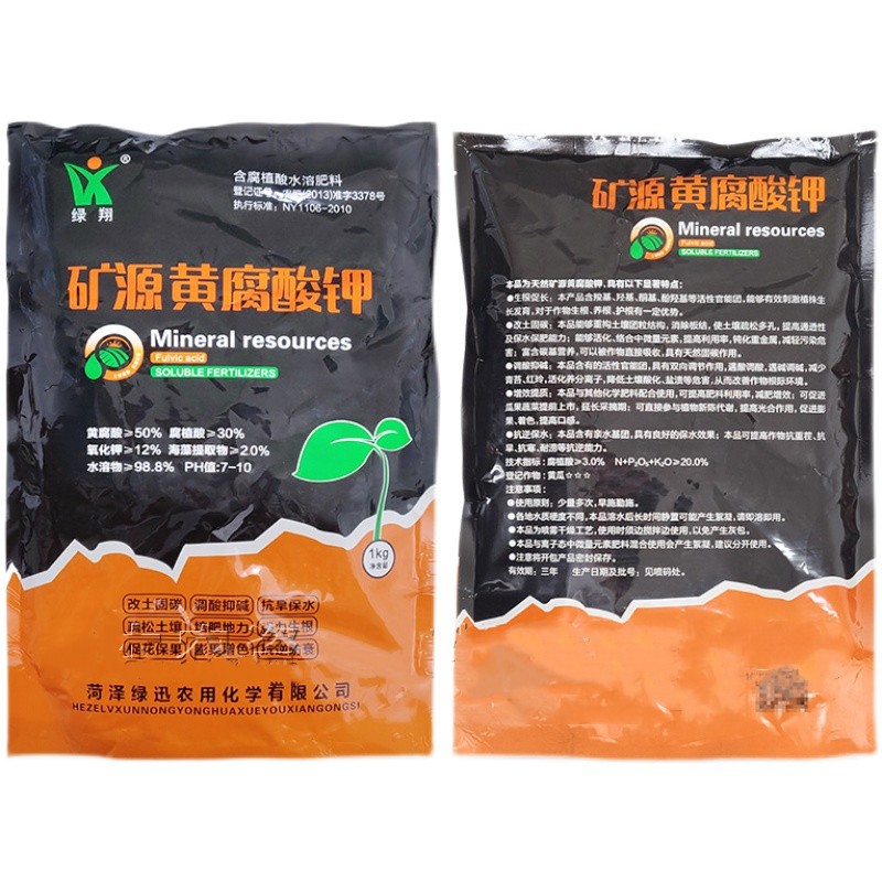 Fuente mineral de ácido fúlvico de potasio, fertilizante soluble en agua para hortalizas y árboles frutales, fertilización, mejora del suelo, resistencia a cultivos intensos, fertilizante medicinal para flores, frutas y verduras, 1000 g, 2 paquetes