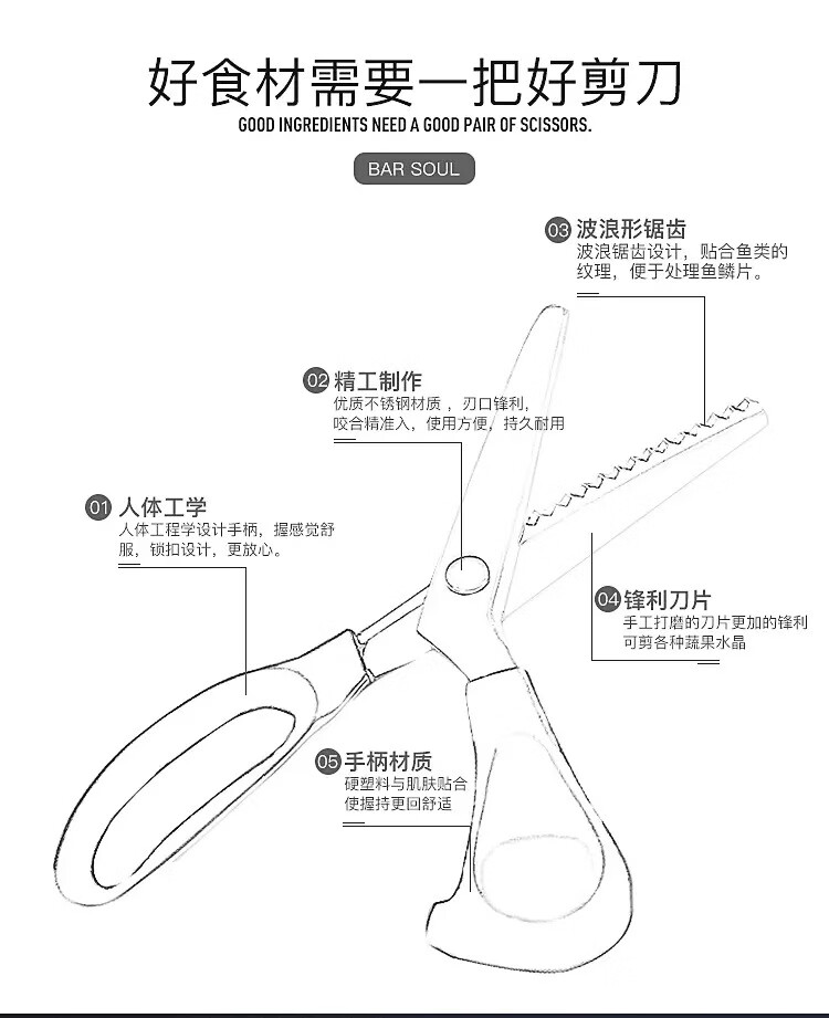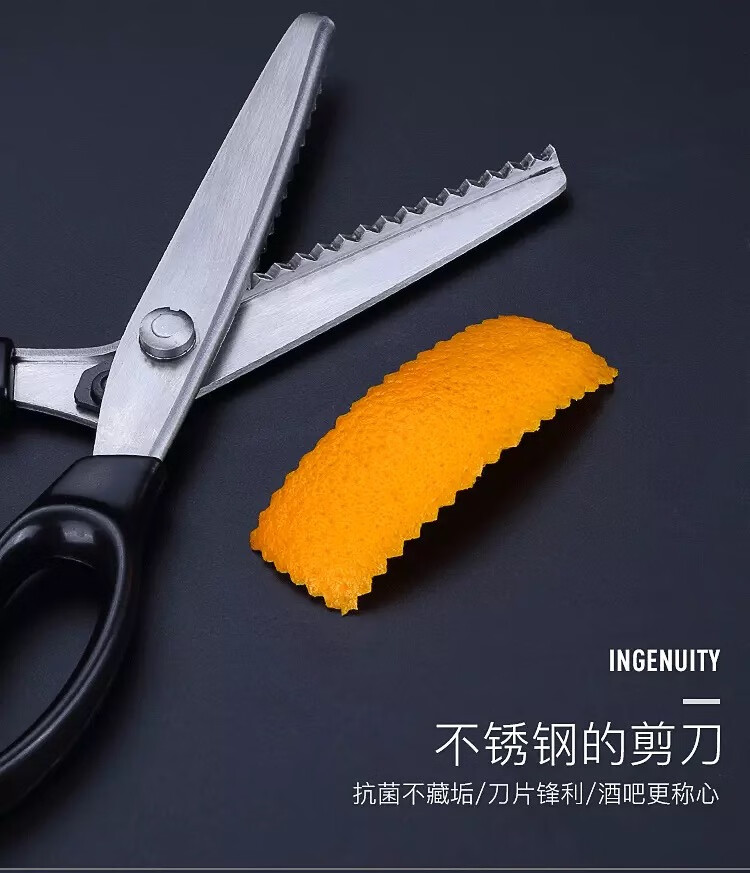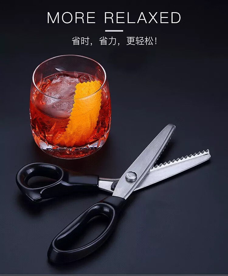 Bar Soul Mixer Orange Peel Making Tool Stainless Steel Serrated Scissors Lemon Peel Large Serrated Cocktail Decoration Tool Stainless Steel Large Serrated Orange Peel Scissors - Black
