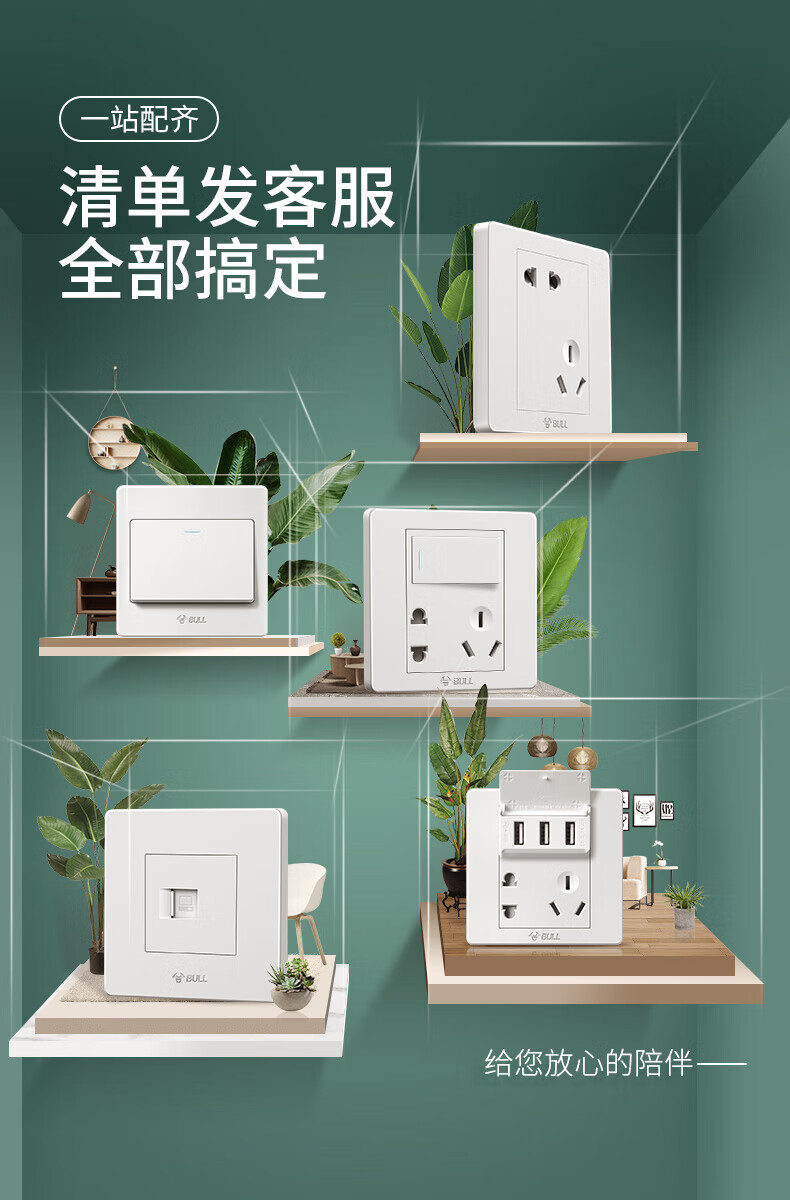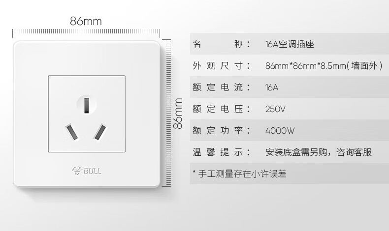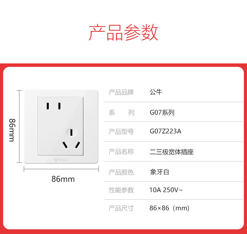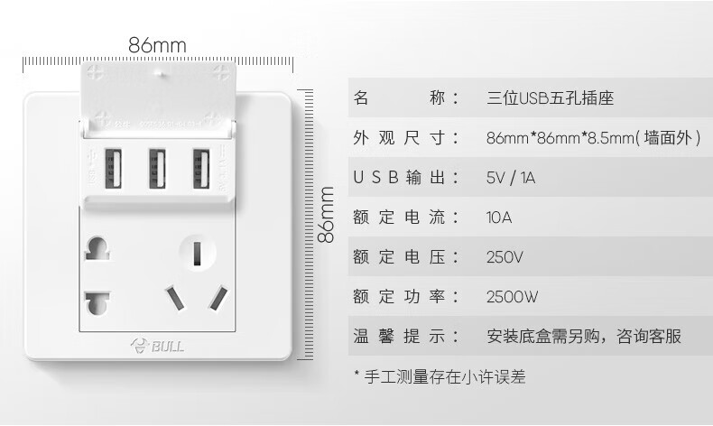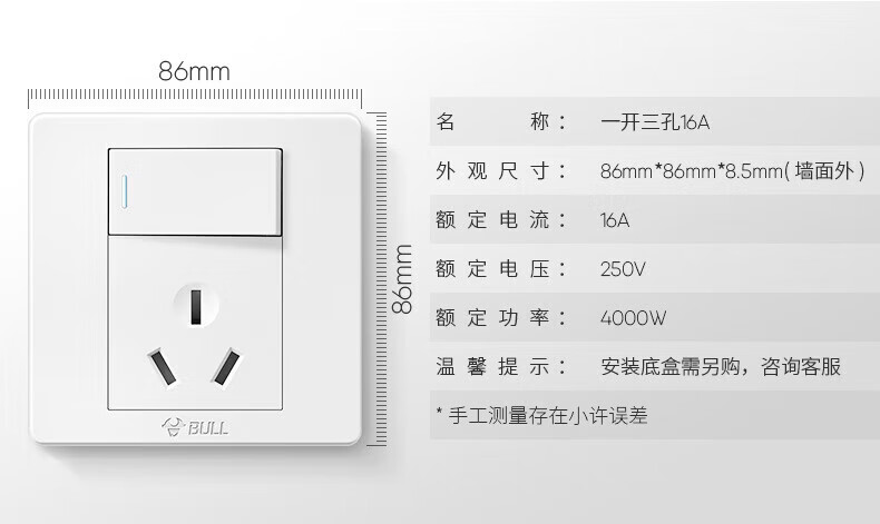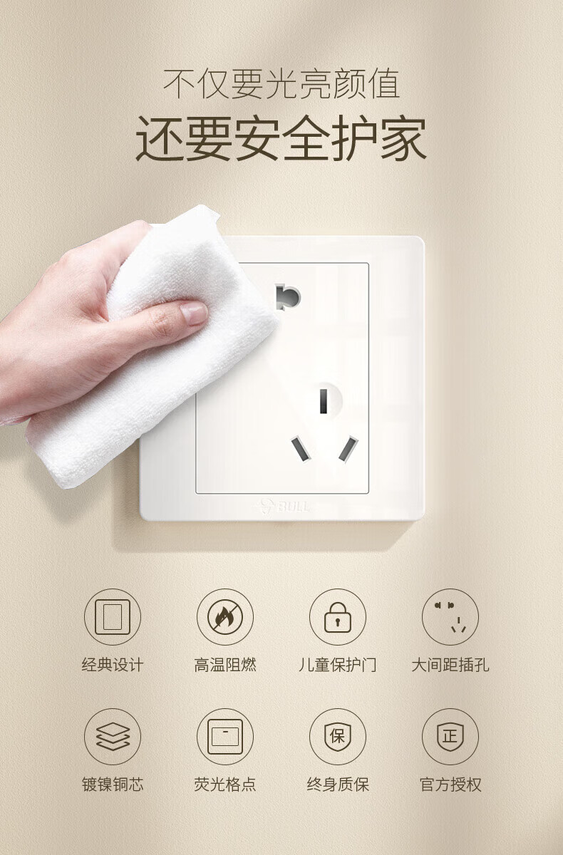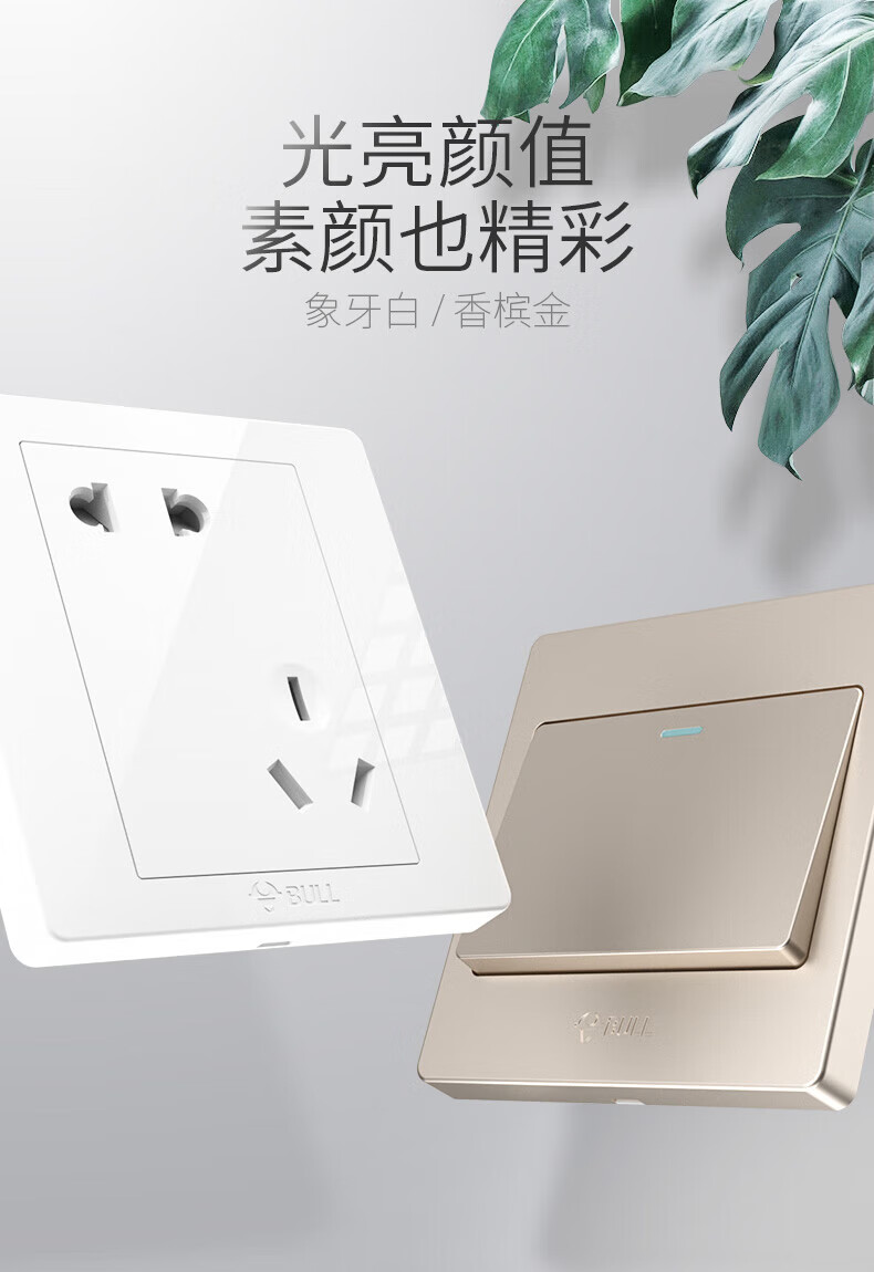 Bull (BULL) switch socket panel 86 type five-hole concealed installation with USB one open dual control multi-control household six-hole high-power wall G list fully equipped - 1 positive five-hole - ivory white