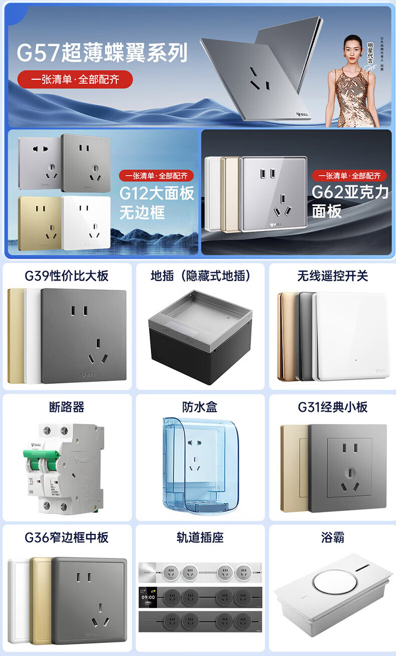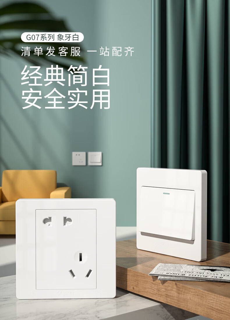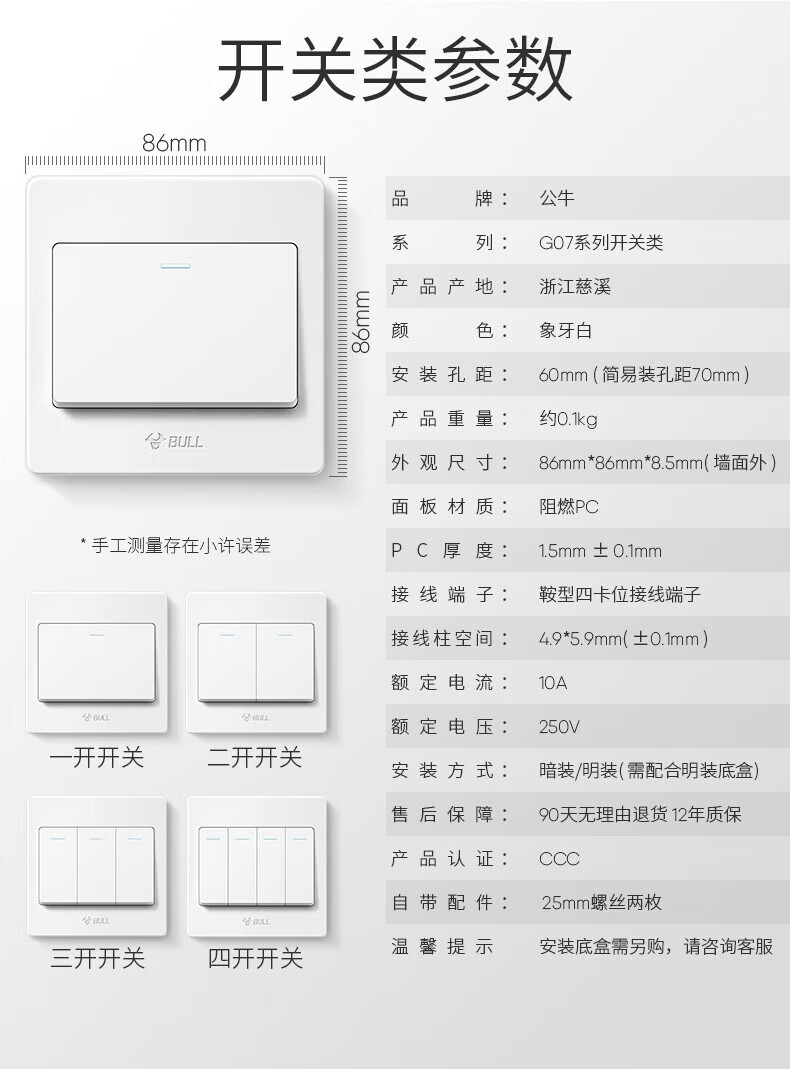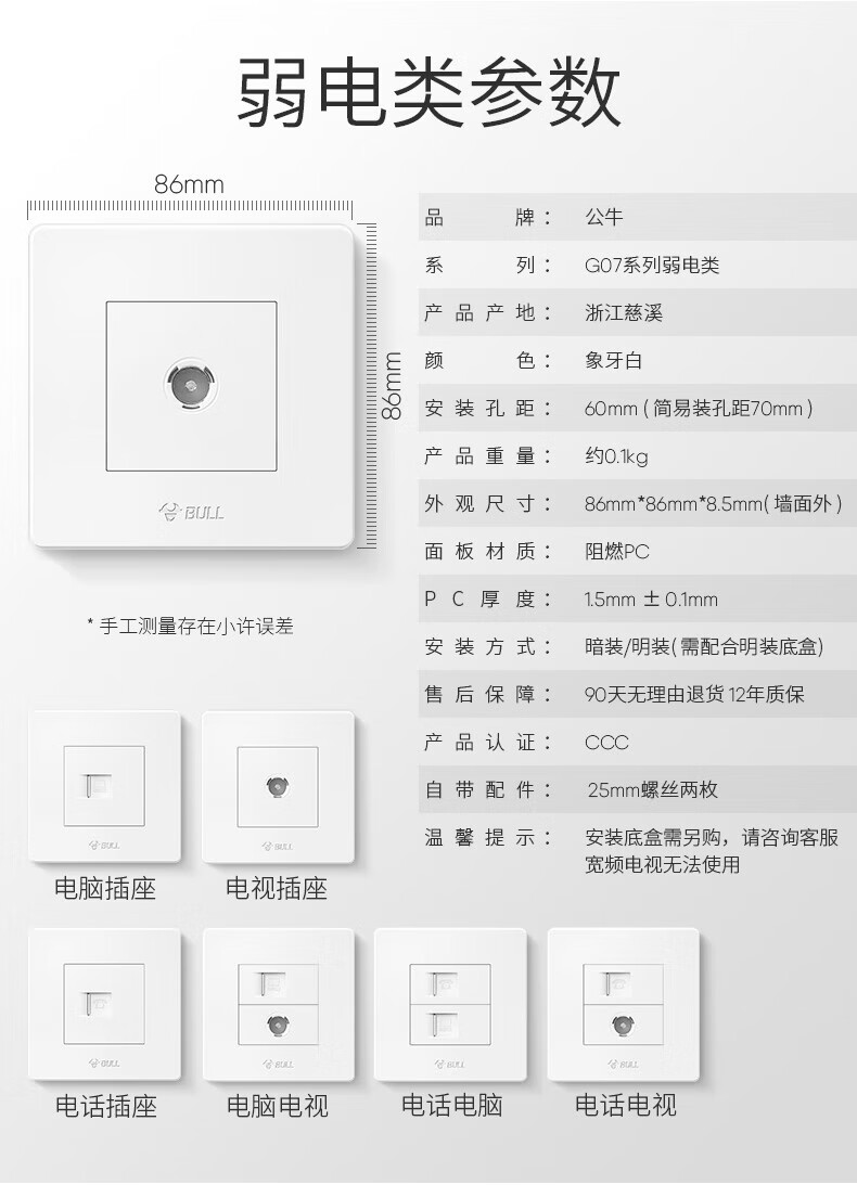 Bull (BULL) switch socket panel 86 type five-hole concealed installation with USB one open dual control multi-control household six-hole high-power wall G list fully equipped - 1 positive five-hole - ivory white