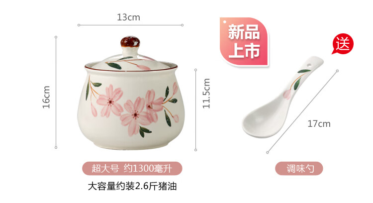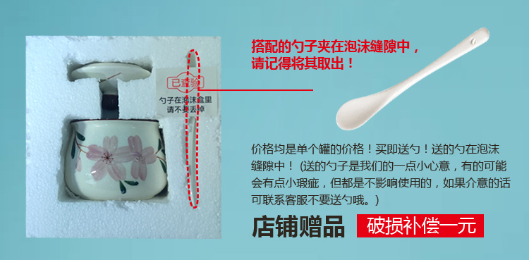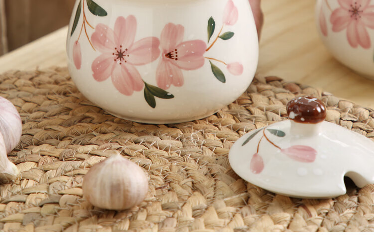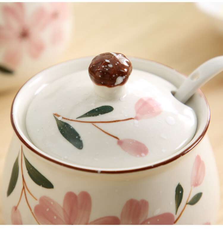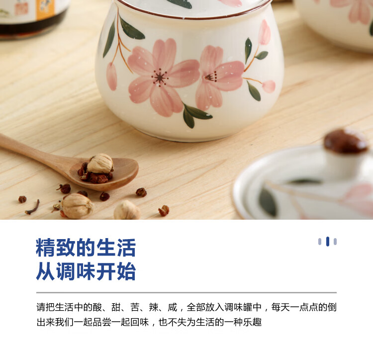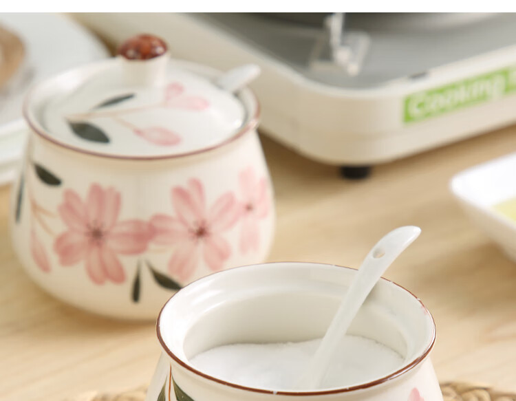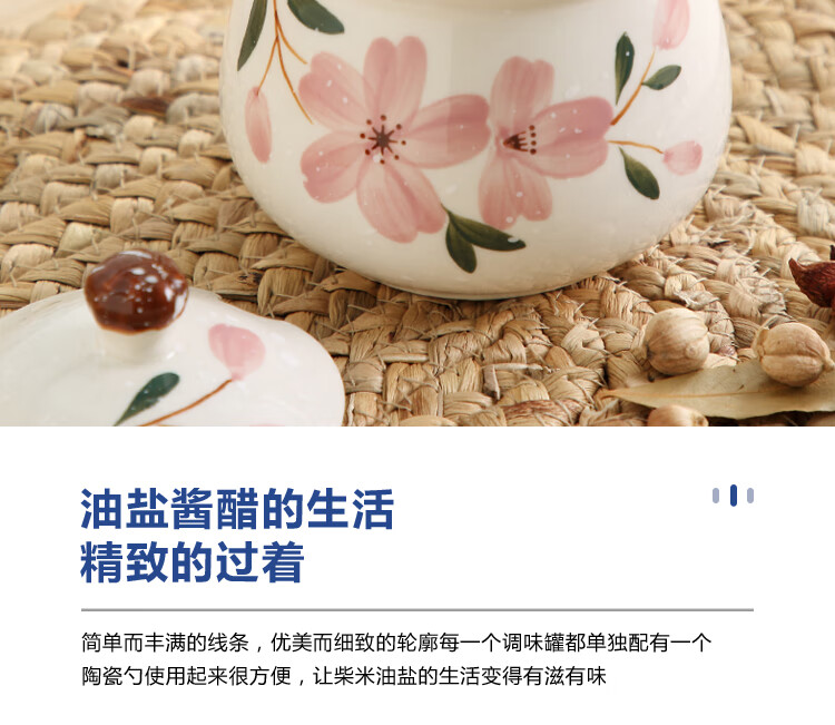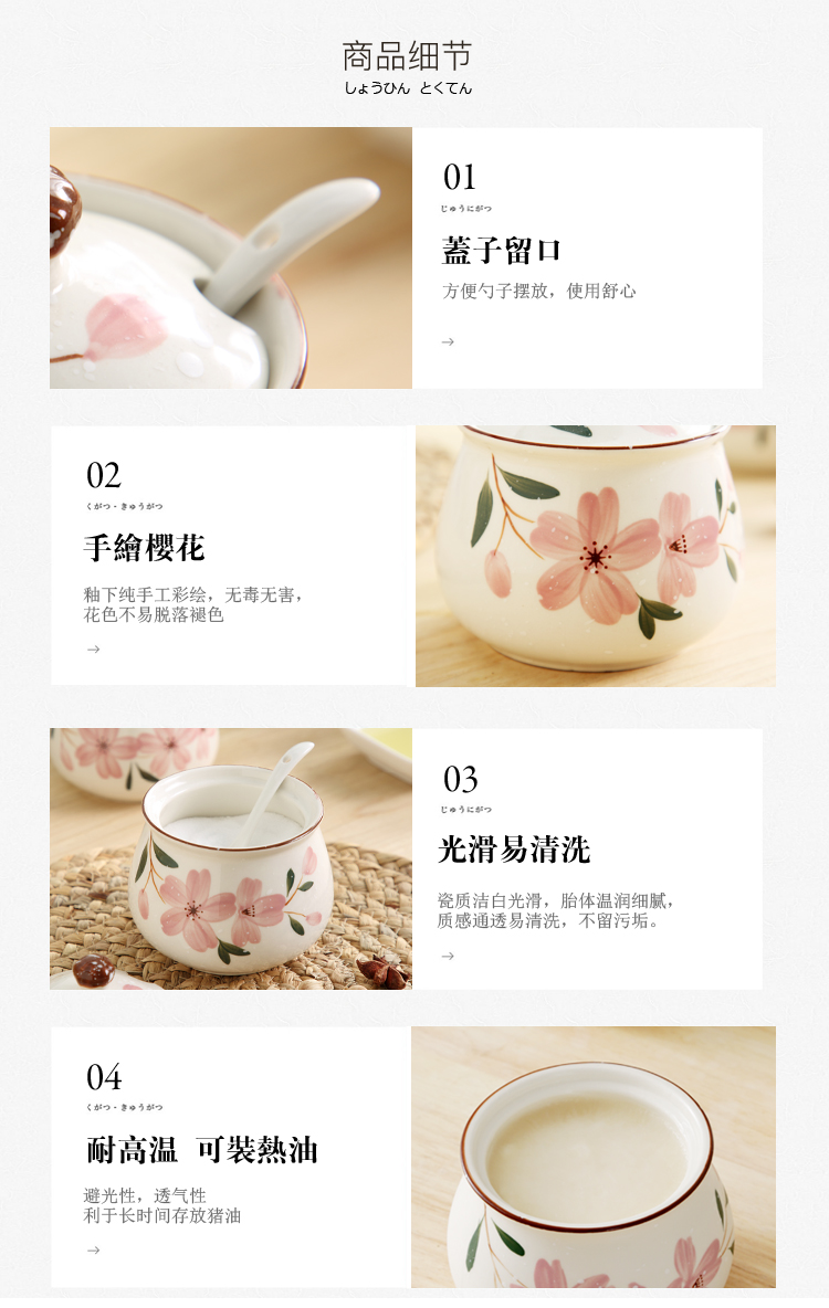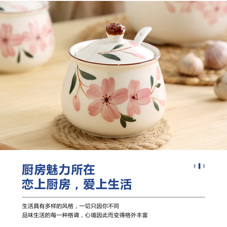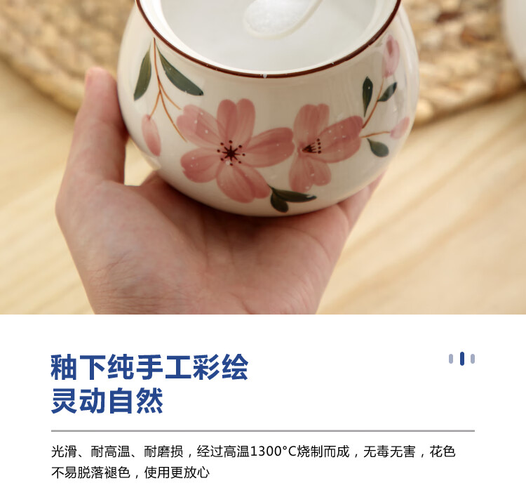 DuoMeiRan DuoMeiRan Japanese-style underglaze hand-painted cherry blossom seasoning jar jar oil and salt jar restaurant oil spicy jar household single cherry blossom seasoning jar-single (with spoon)