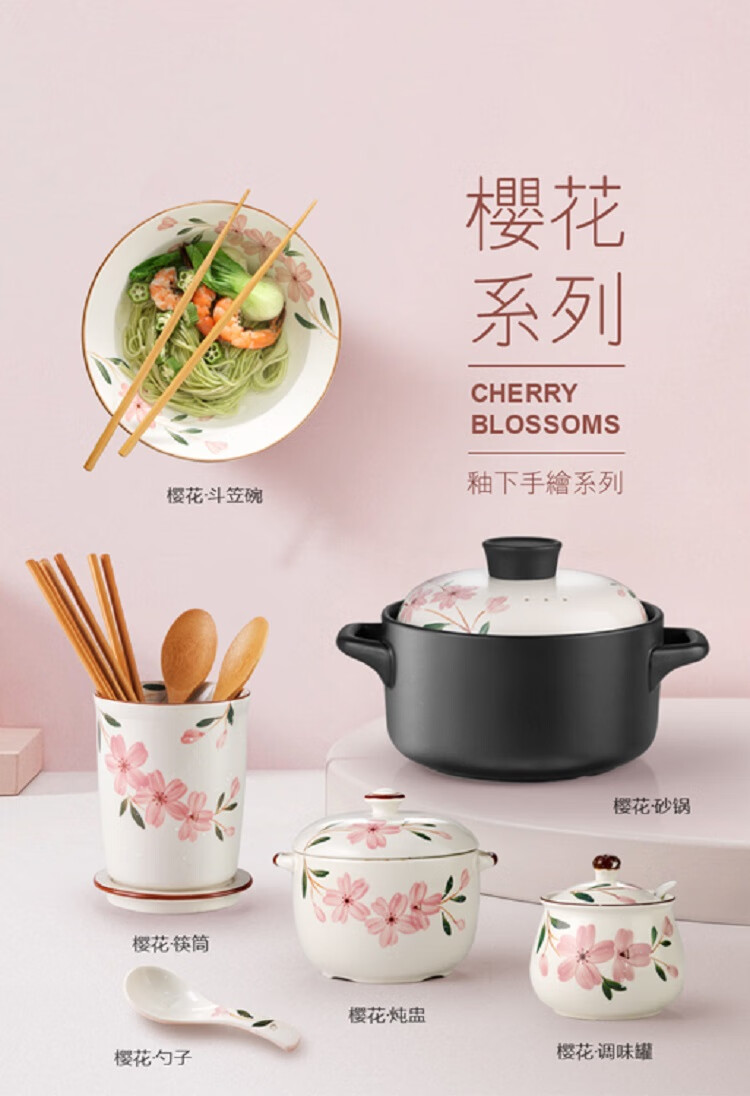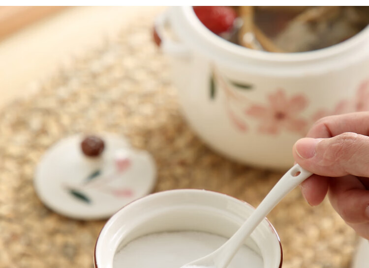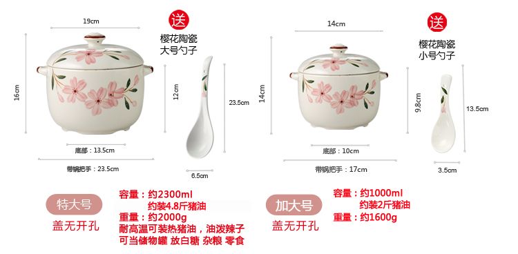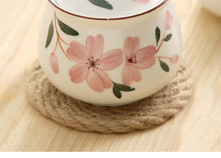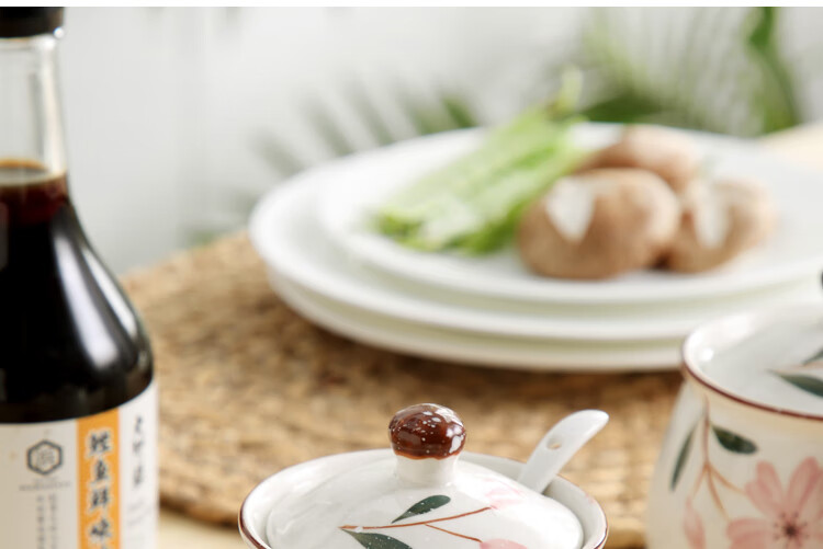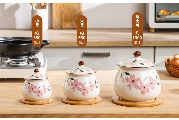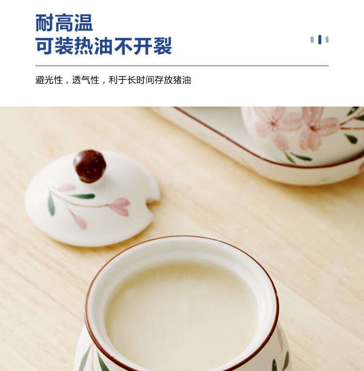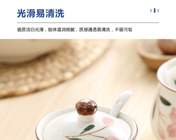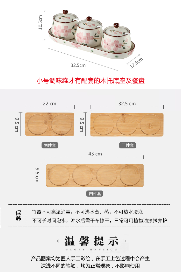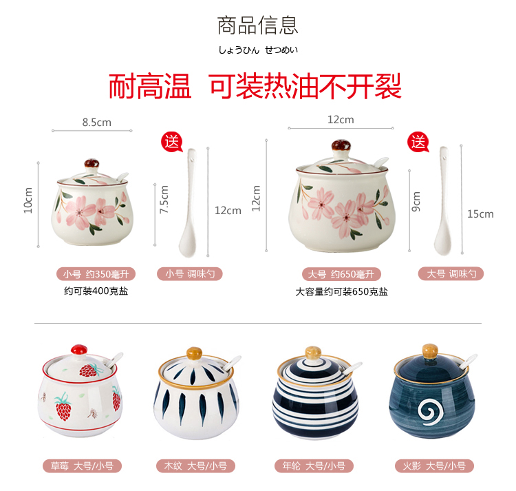 DuoMeiRan DuoMeiRan Japanese-style underglaze hand-painted cherry blossom seasoning jar jar oil and salt jar restaurant oil spicy jar household single cherry blossom seasoning jar-single (with spoon)