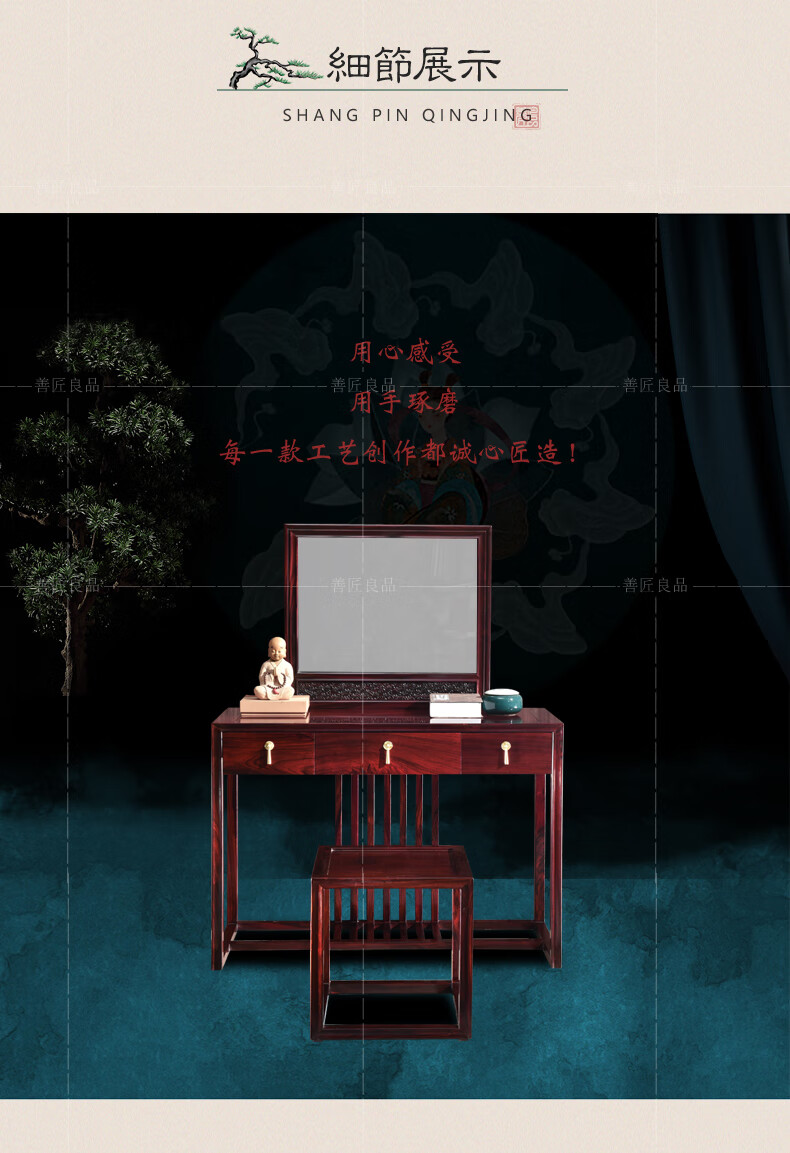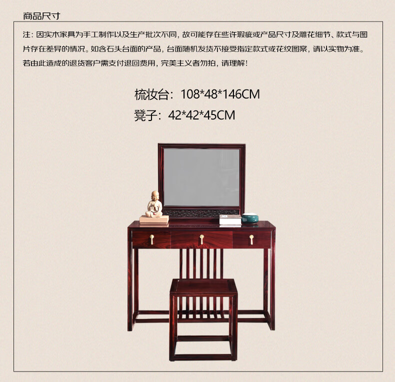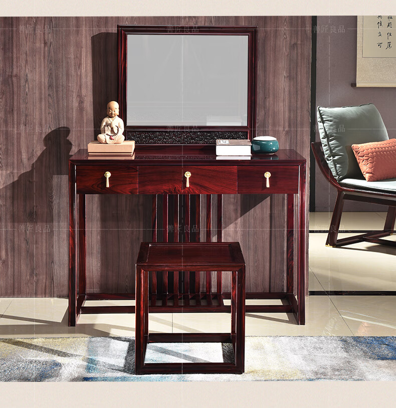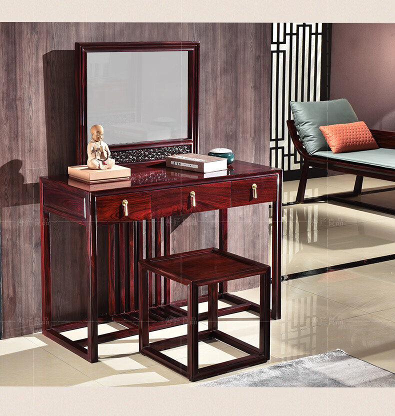 Good craftsmanship, mahogany furniture, Indonesian black rosewood (scientific name: Dalbergia rosewood), Chinese style dressing table, solid wood dressing table with storage drawers, Langfeng dressing table + dressing stool combination