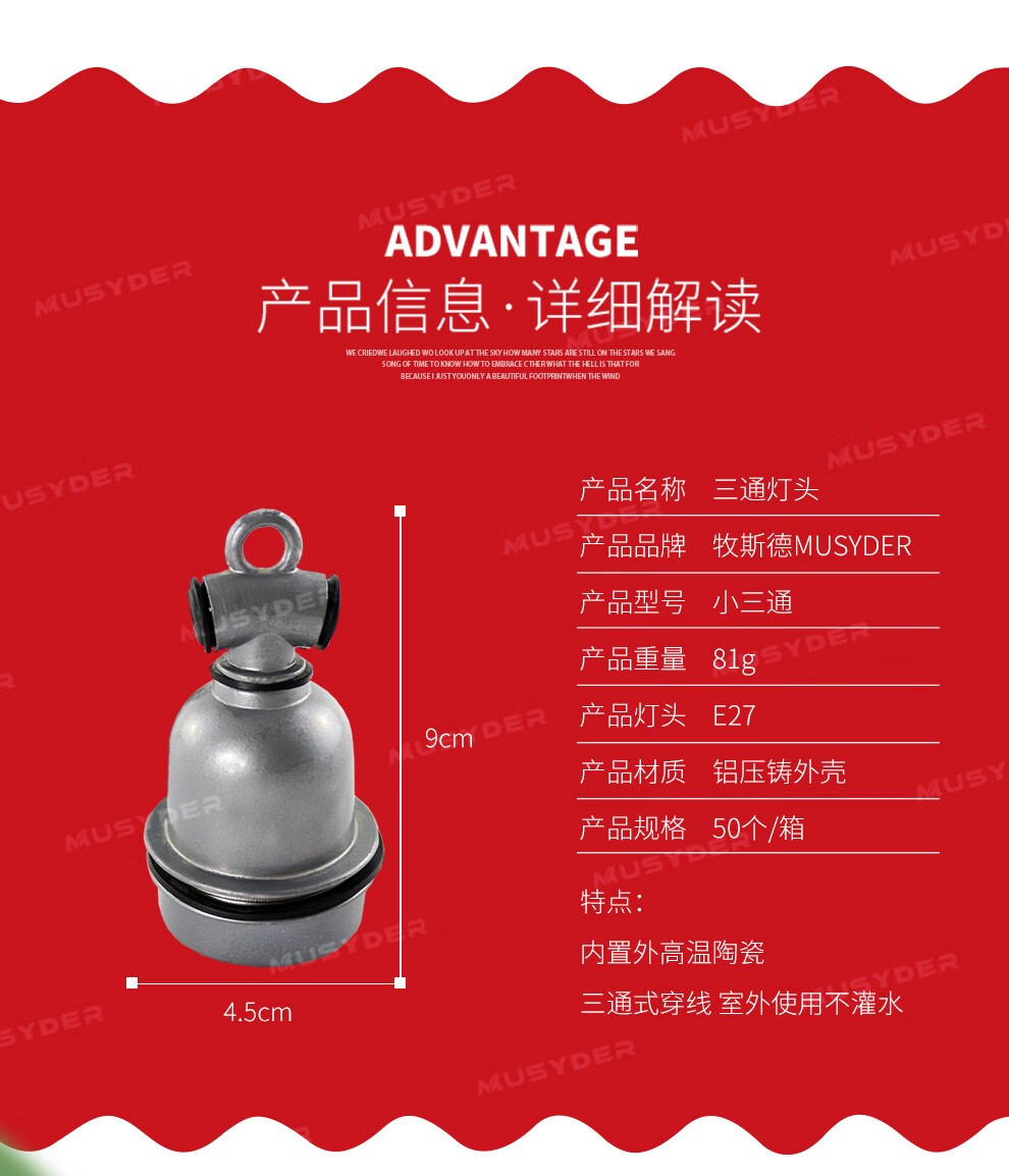 Mushide lamp holder ceramic waterproof lamp holder small tee thickened high temperature resistant ceramic chandelier screw E27 high power household farm lamps shipped after disinfection ceramic lamp holder (waterproof and high temperature resistant)