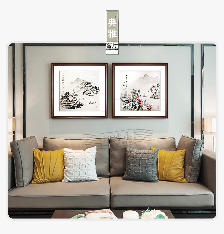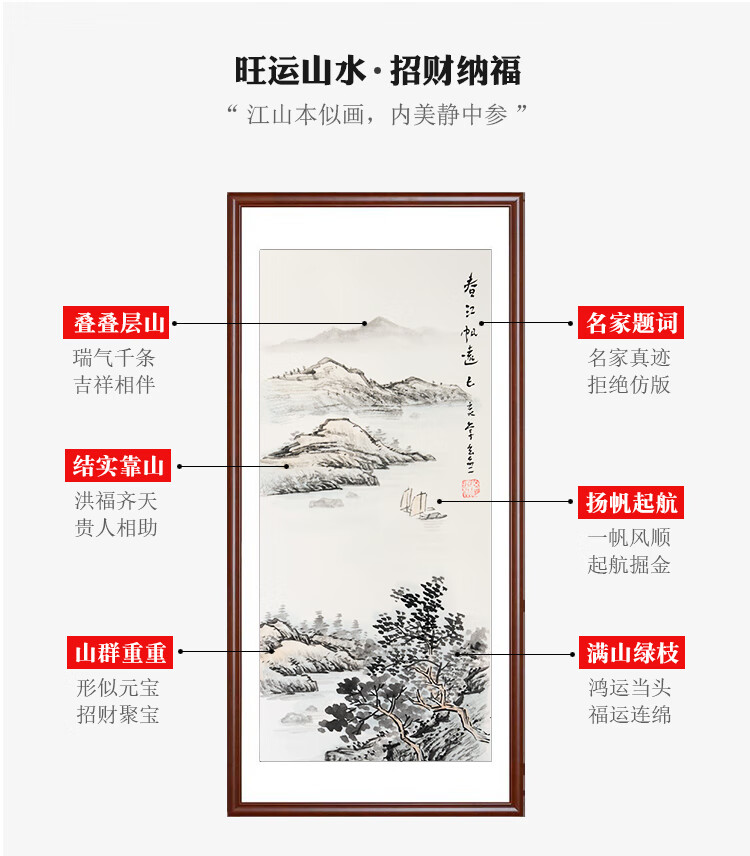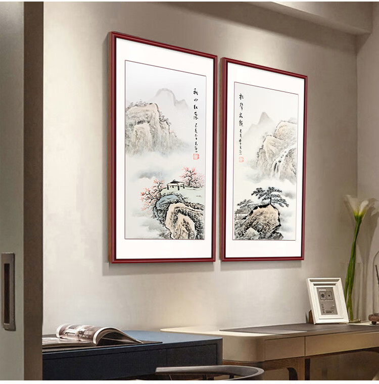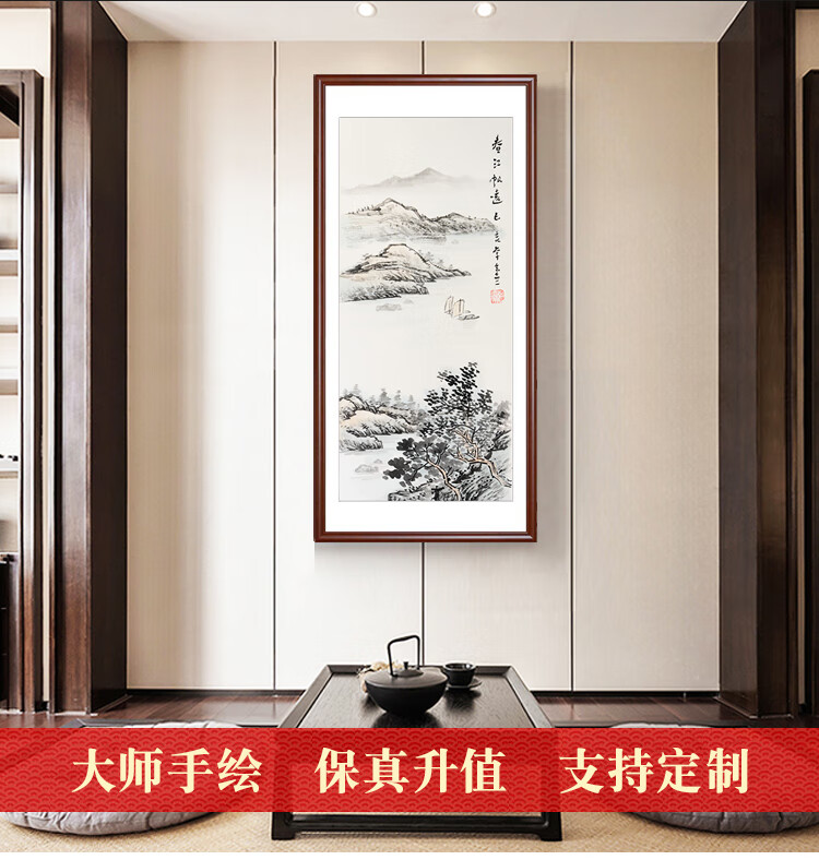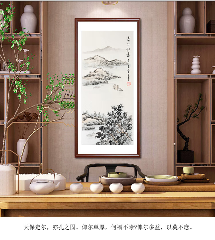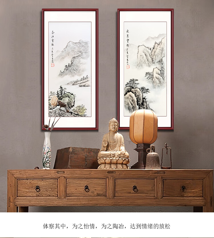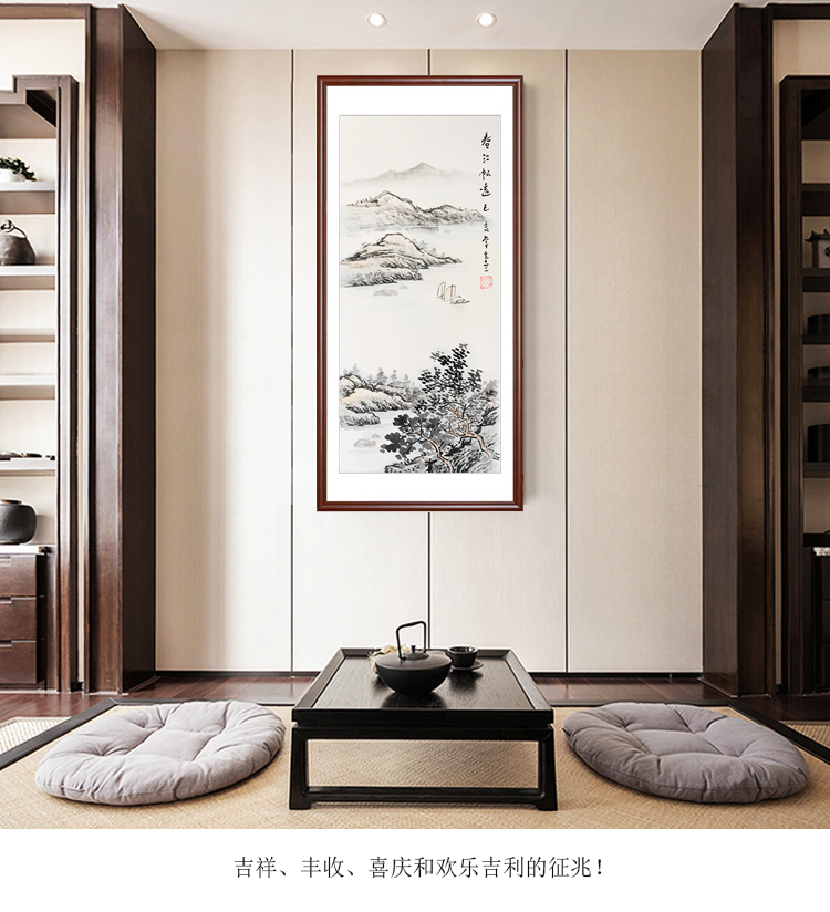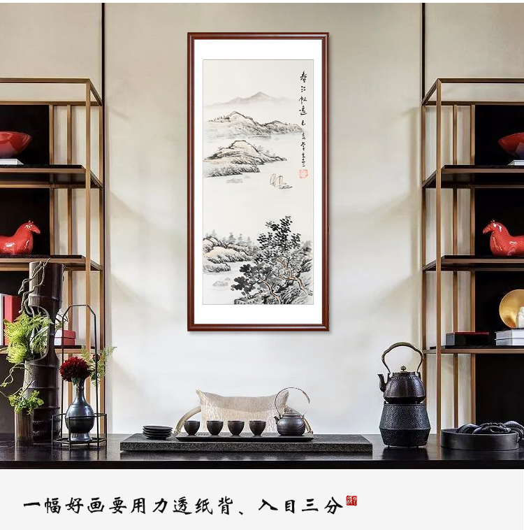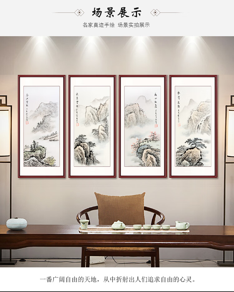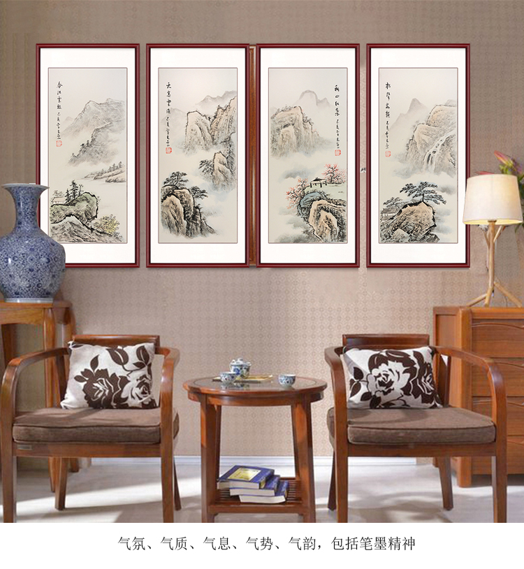 Celebrity calligraphy and painting, four-screen landscape painting, pure hand-painted Chinese painting, ink painting, living room sofa background, porch backing, vertical strip screen decoration hanging painting, sky high, clouds light, vertical size framed 85*40CM