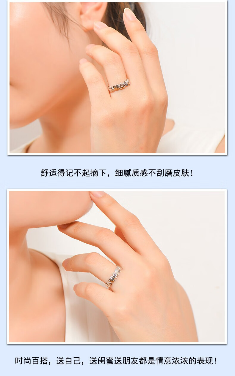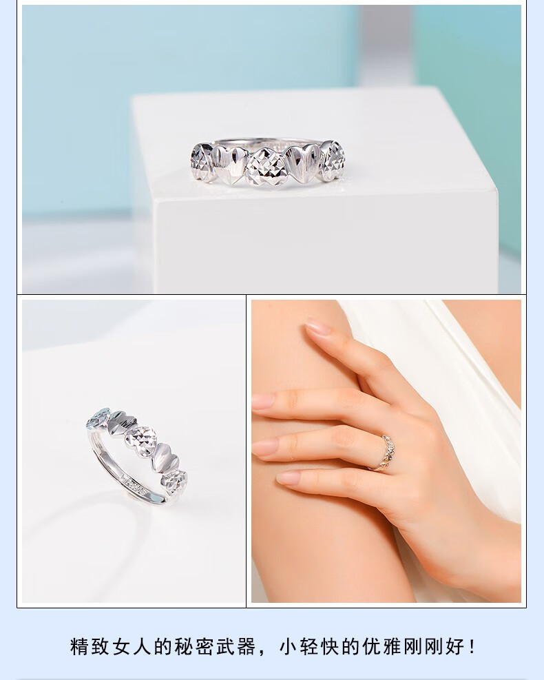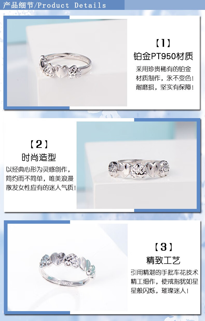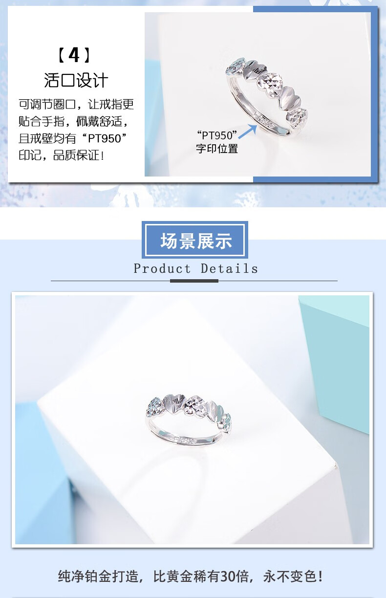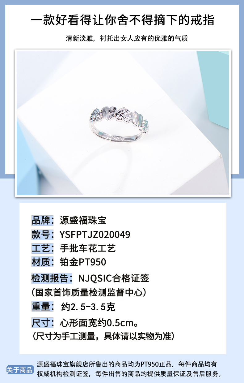 Yuan Shengfu's new PT950 fashionable heart-shaped platinum ring, women's platinum ring, adjustable, live and shiny, 2.55g