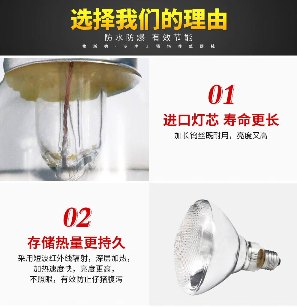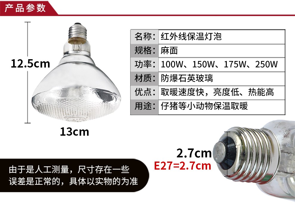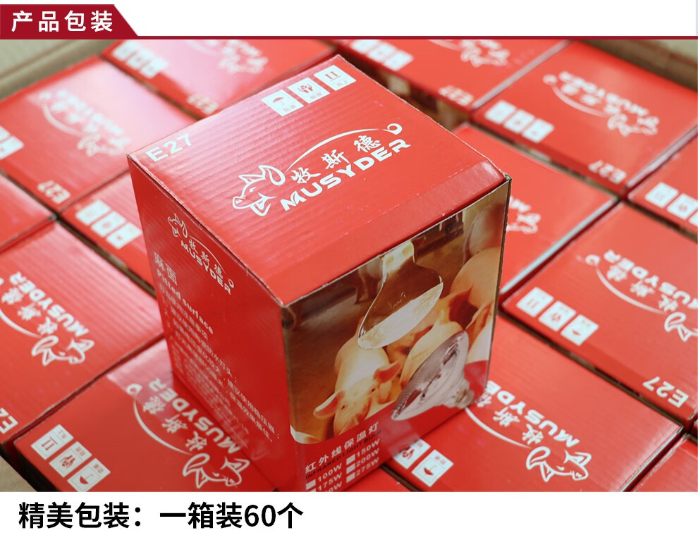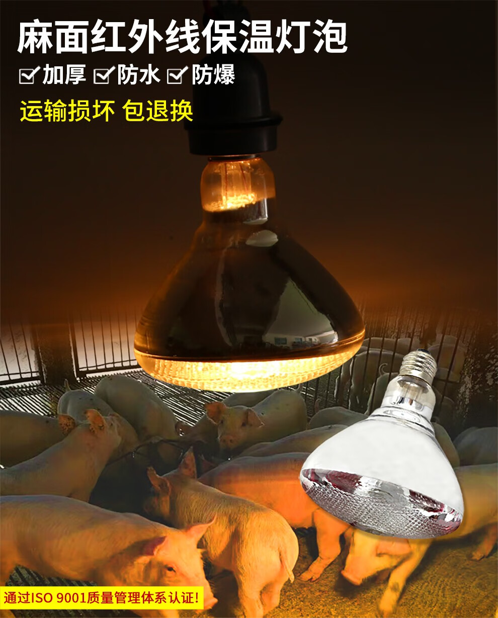 Mushide Insulation Lamp Piglet Heating Bulb Farm Heating Lamp Brooding Greenhouse Breeding Equipment 100W-275W Shipped after Disinfection 250W Premium Aluminum Head Pockmarked Bulb
