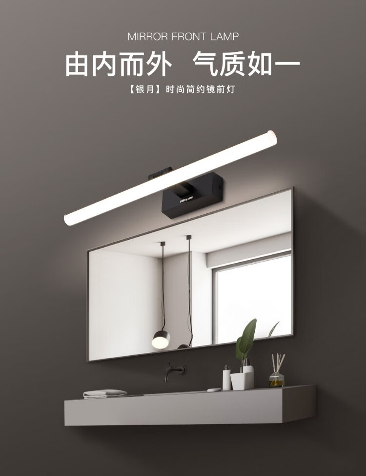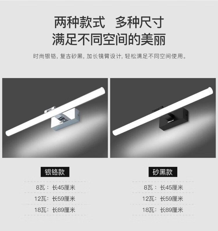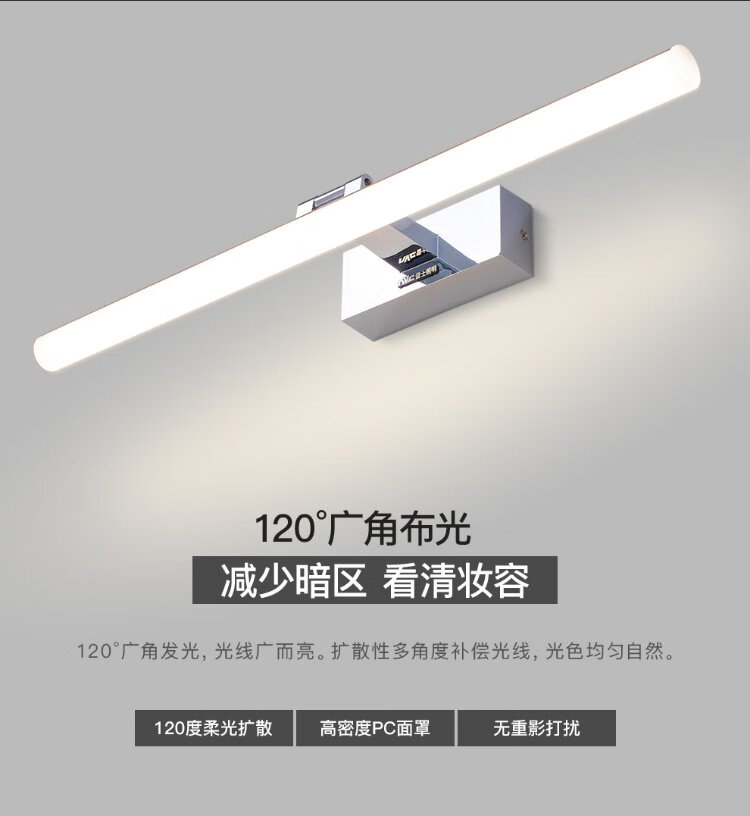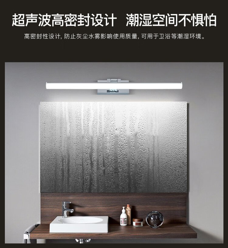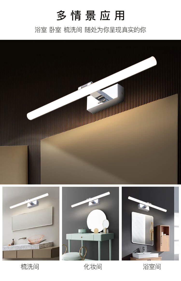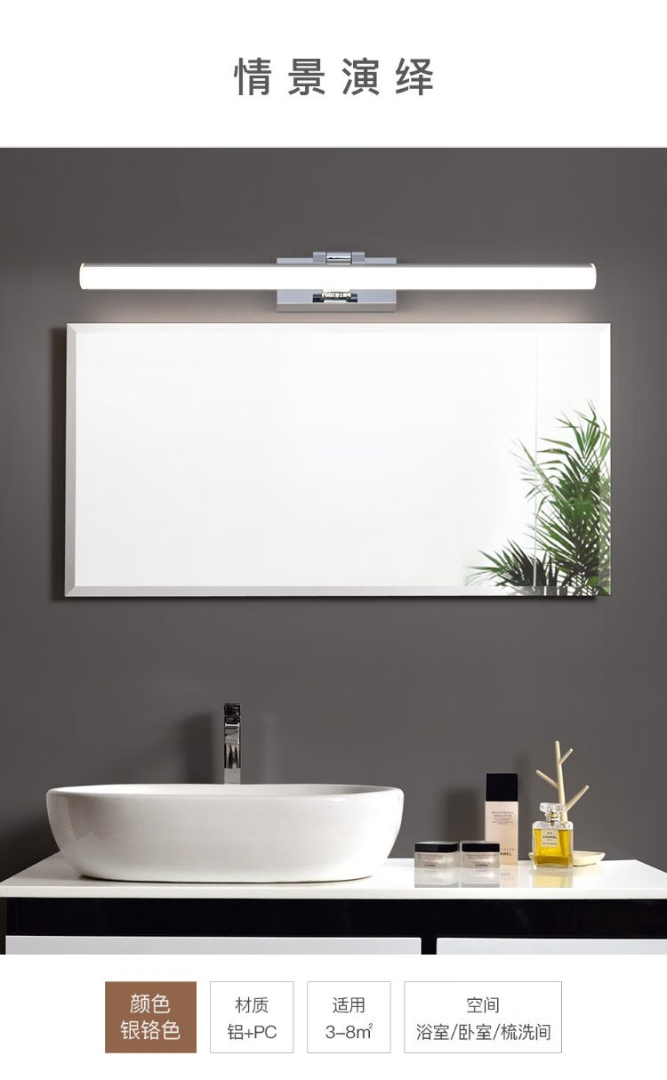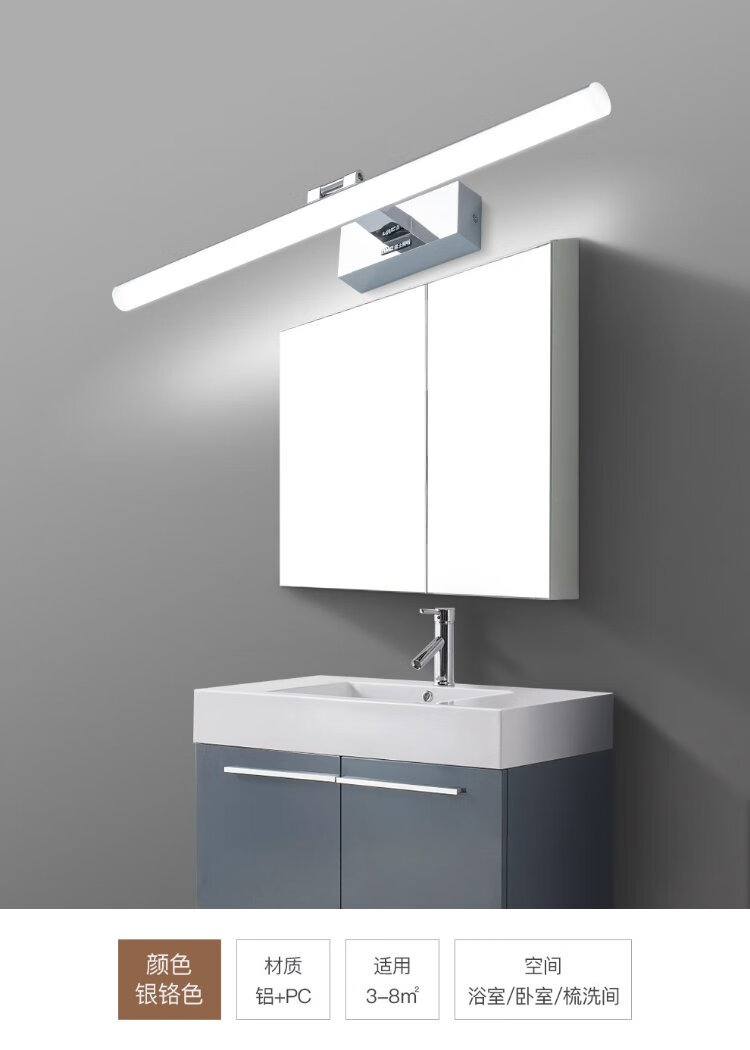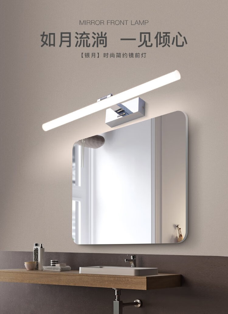 NVC LED mirror headlight bathroom waterproof and anti-fog bathroom wall lamp Nordic modern simple waterproof and anti-fog lamp lighting silver moon chrome color 12W positive white light length 59CM