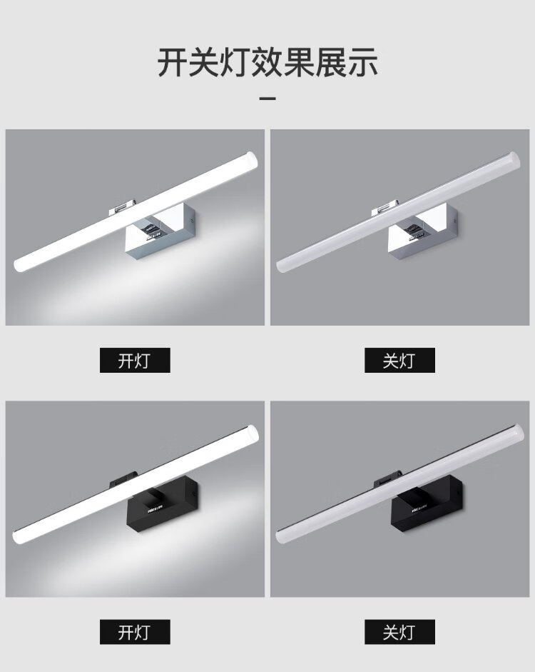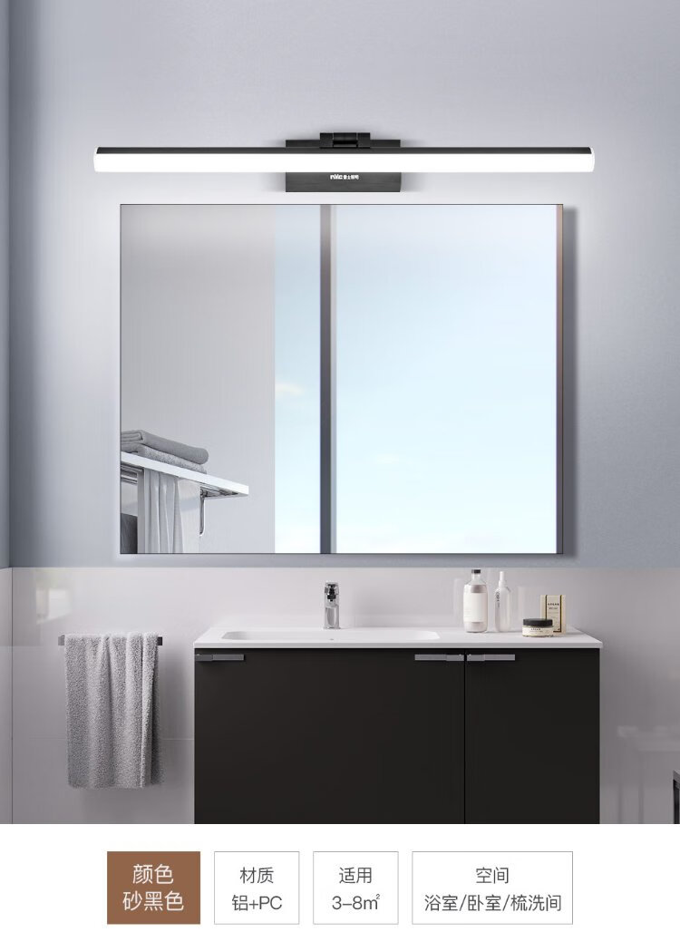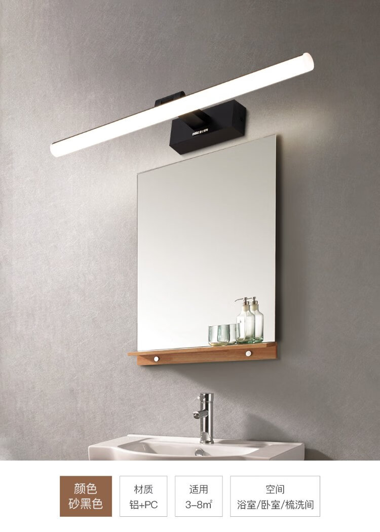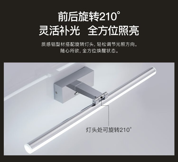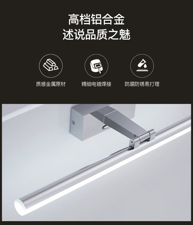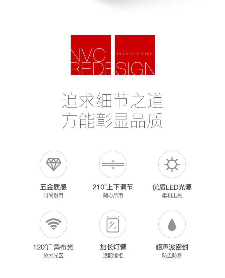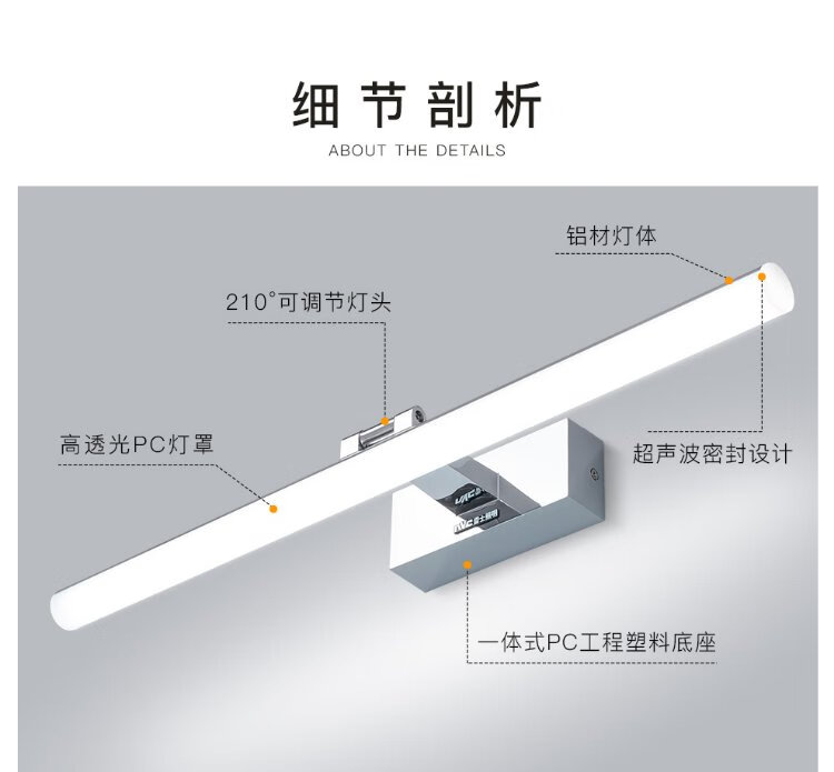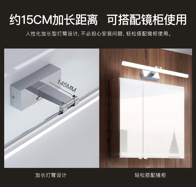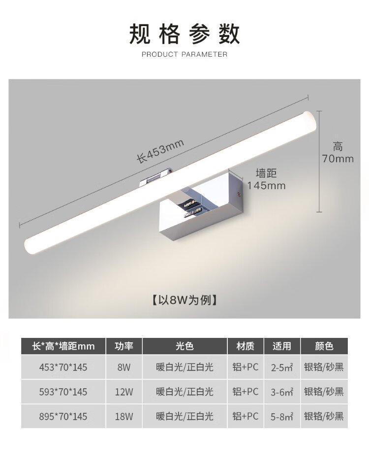 NVC LED mirror headlight bathroom waterproof and anti-fog bathroom wall lamp Nordic modern simple waterproof and anti-fog lamp lighting silver moon chrome color 12W positive white light length 59CM