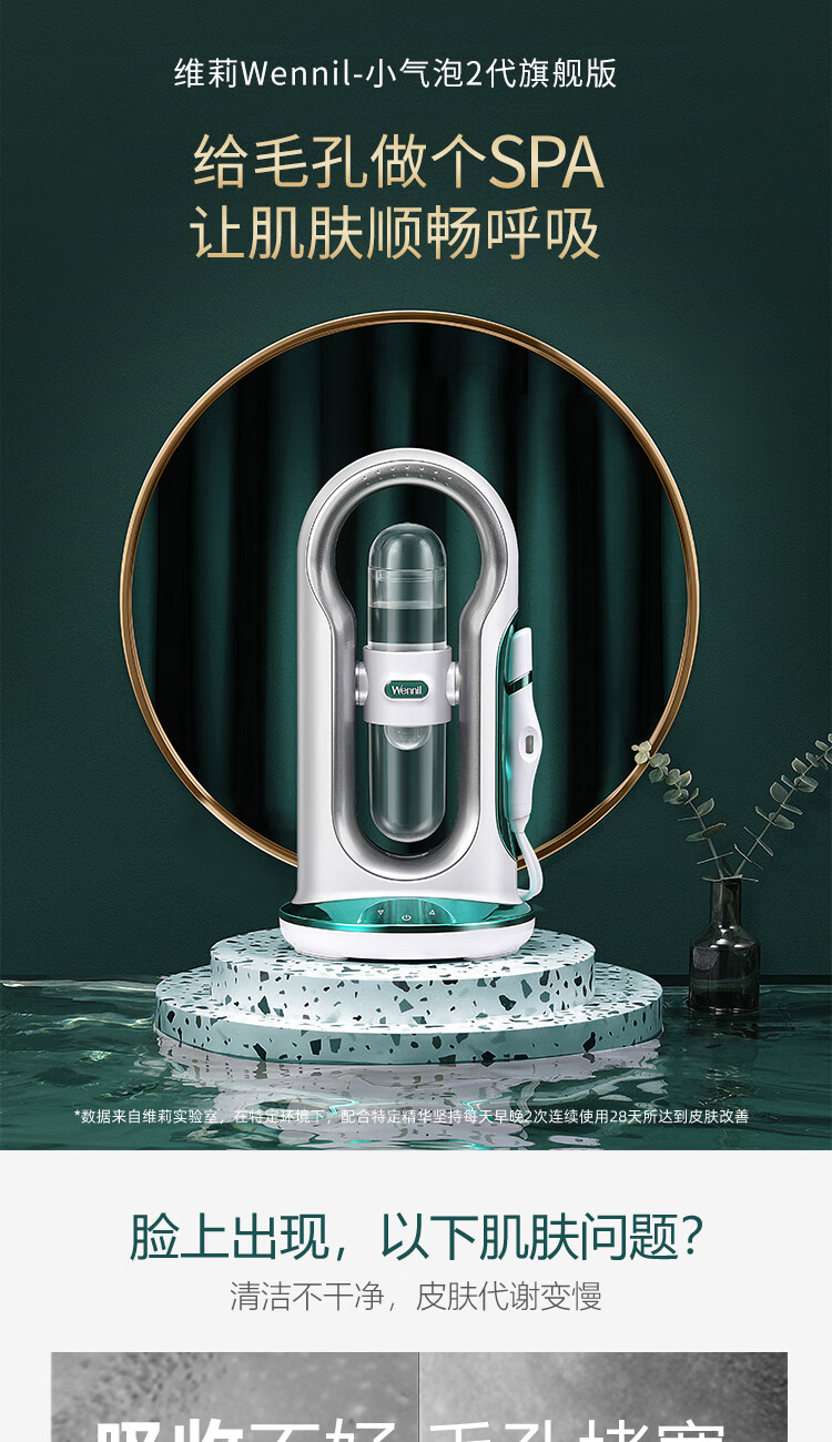 Wennil Chinese Valentine's Day Gift Small Bubble Cleaner Home Blackhead Artifact Pore Cleaner Whitehead Acne Suction Device Blackhead Device Home Facial Cleanser Green (Flagship Standard Version Suitable for Common Skin)