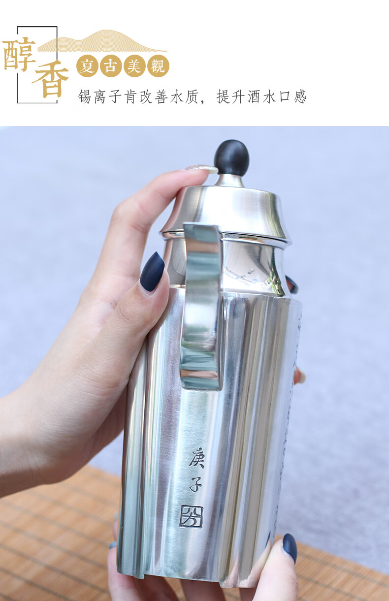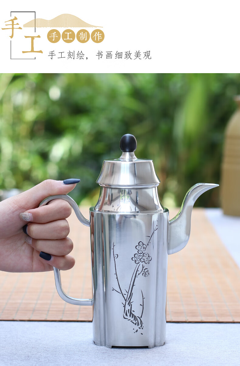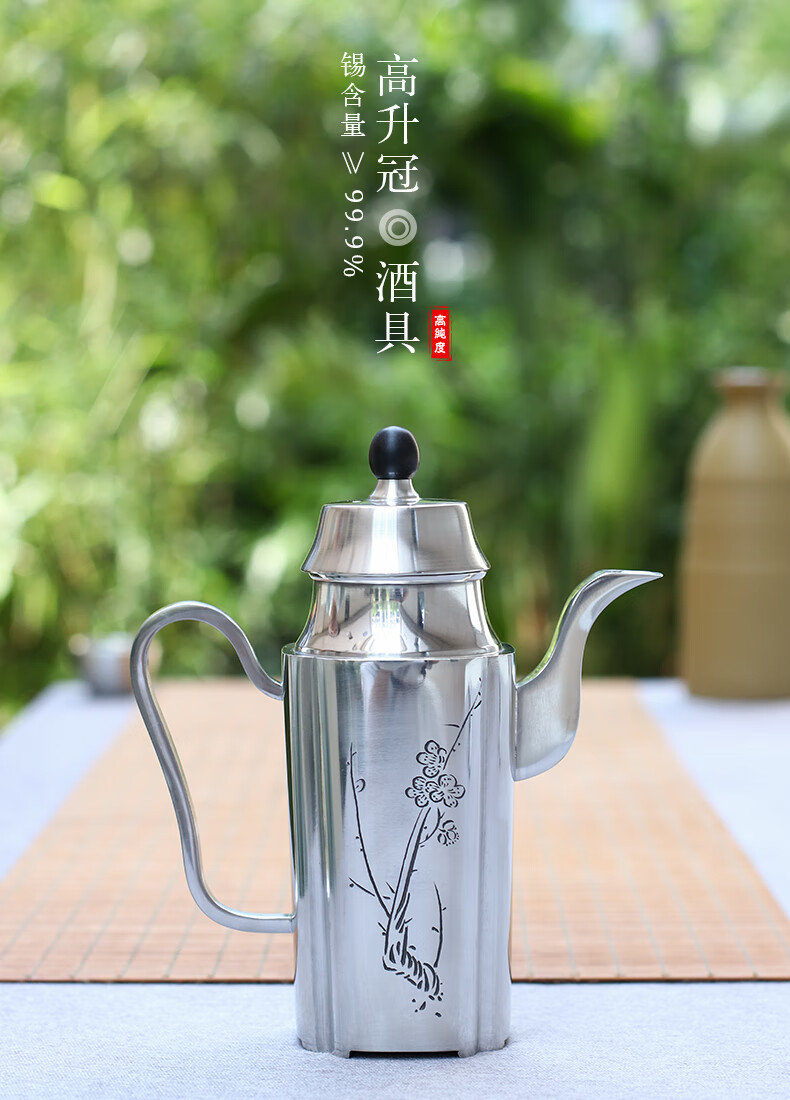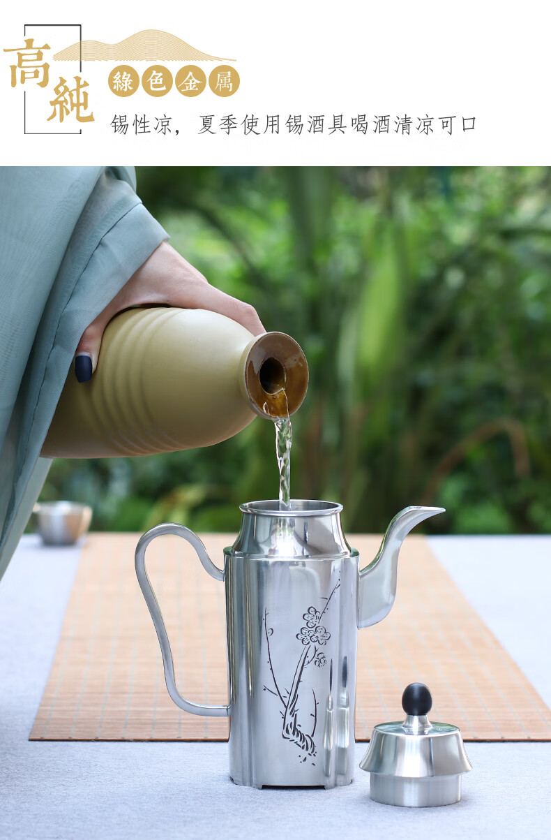 The source of the craftsman The source of the craftsman flagship store Gejiu handmade 999 pure tin wine pot wine set gift Yunnan/Gaoshengguan wine set 370ml plum six cup set