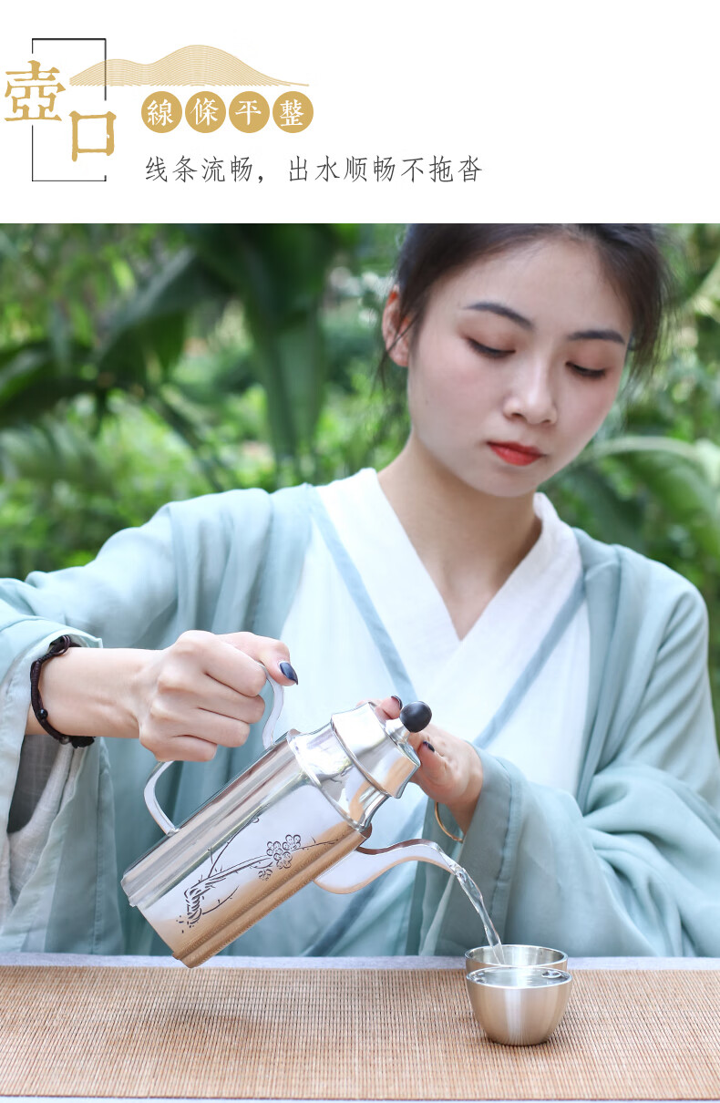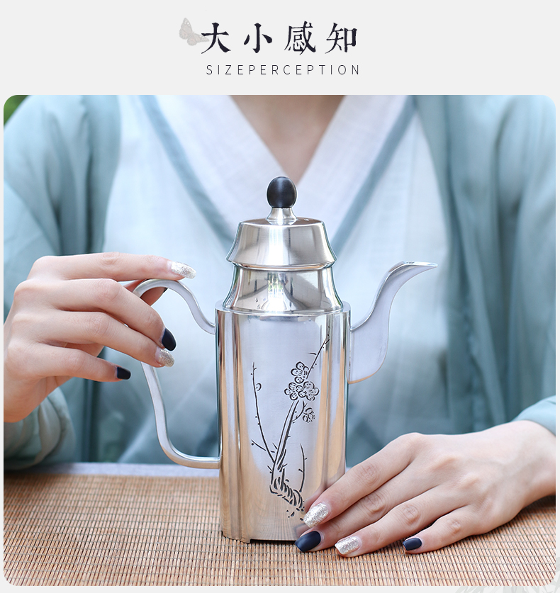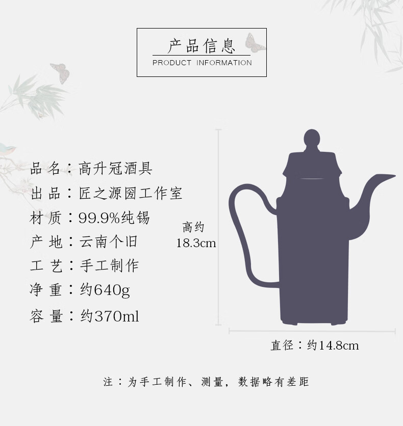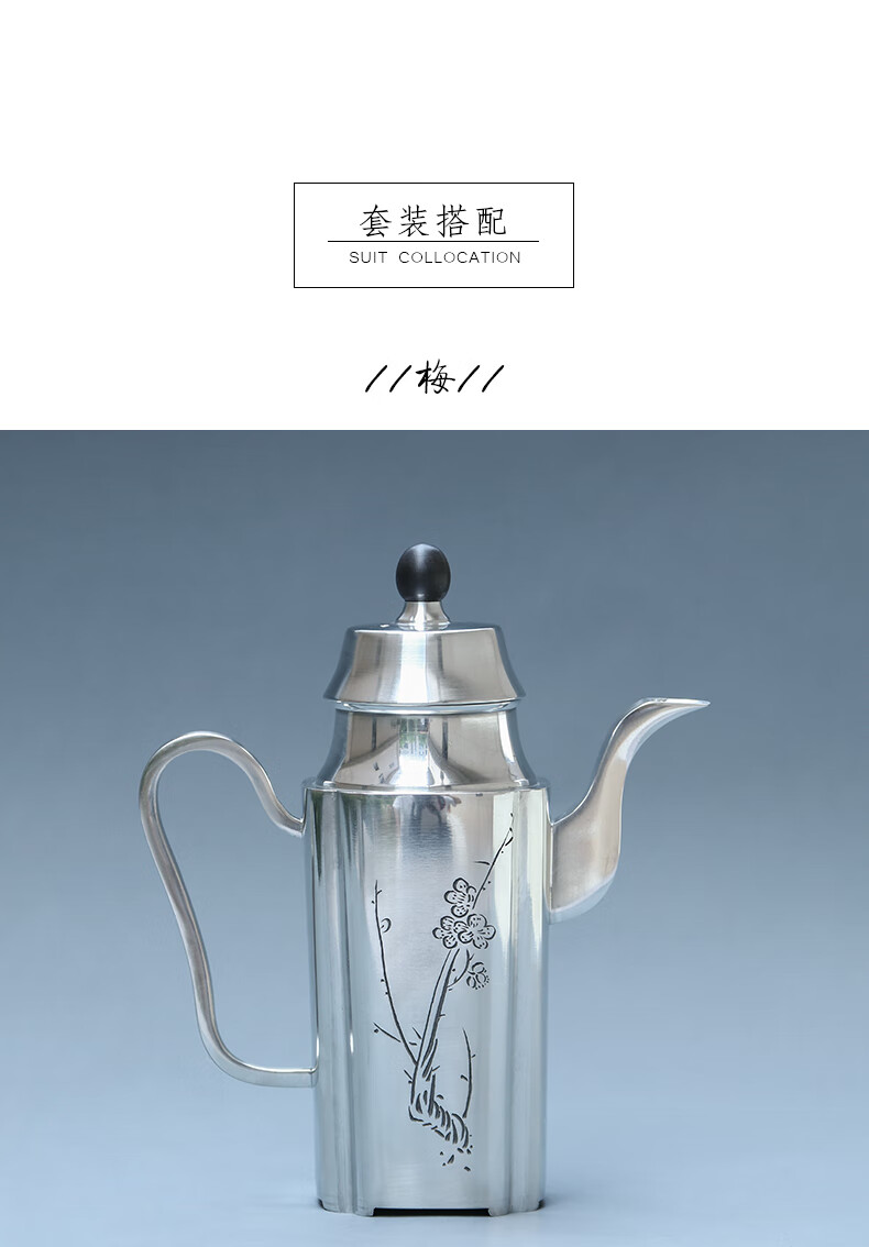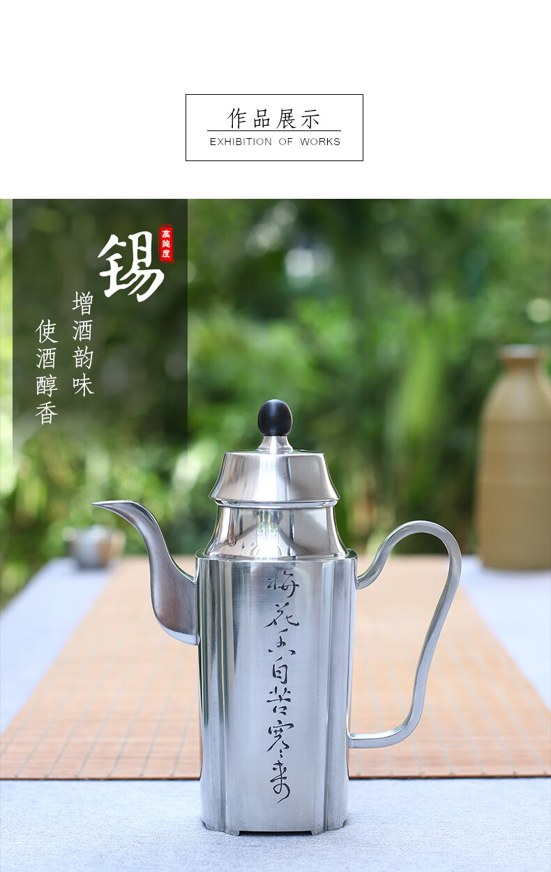 The source of the craftsman The source of the craftsman flagship store Gejiu handmade 999 pure tin wine pot wine set gift Yunnan/Gaoshengguan wine set 370ml plum six cup set