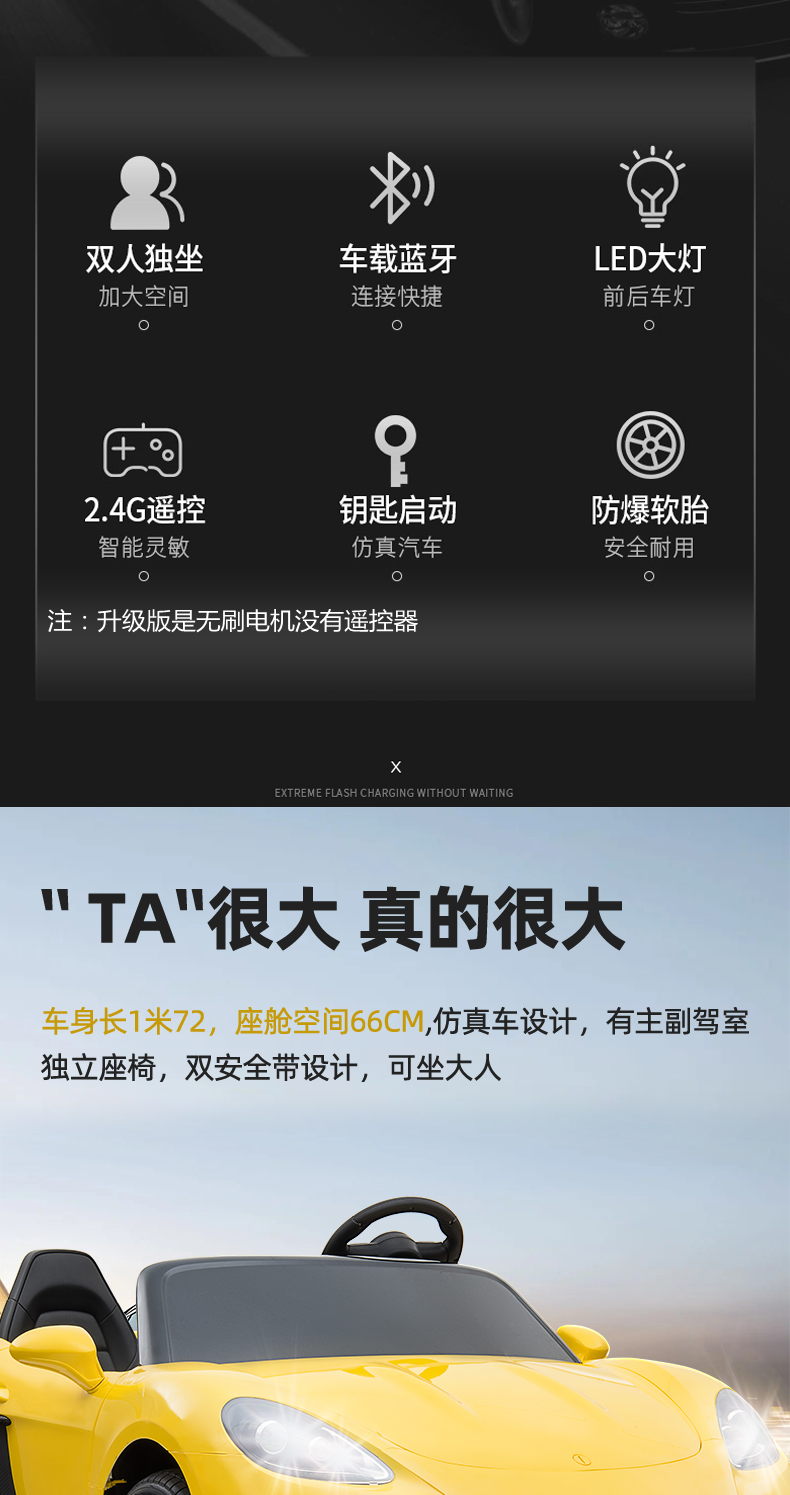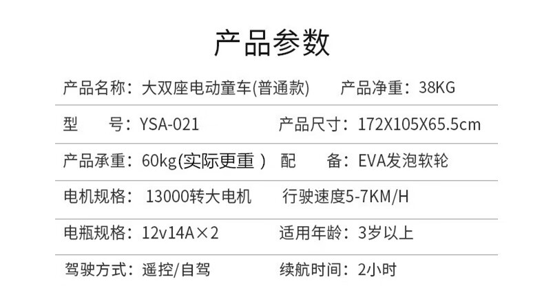 Yue's Automobile Industry Extra Large Two-seater Internet celebrity parent-child car children's electric car four-wheel remote control can sit adults and children toy car upgrade white + 24V battery + brushless motor + inflatable wheels + brakes + no remote control