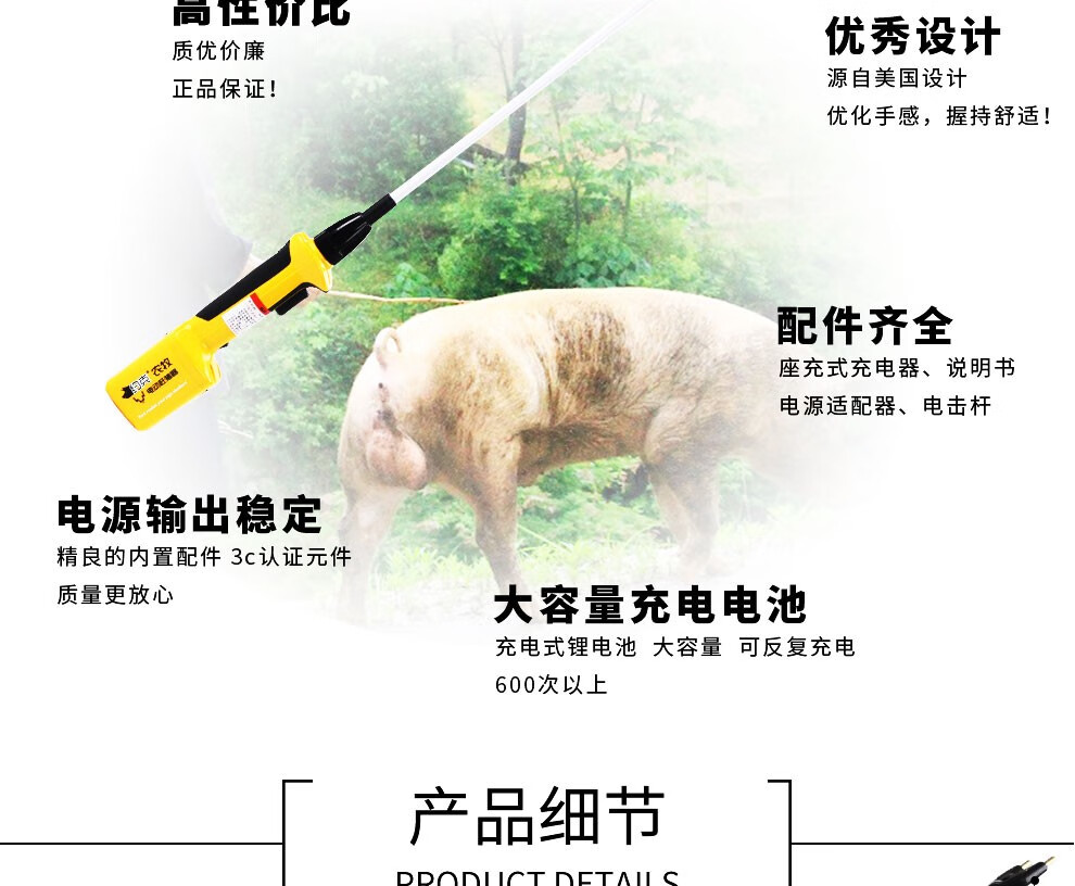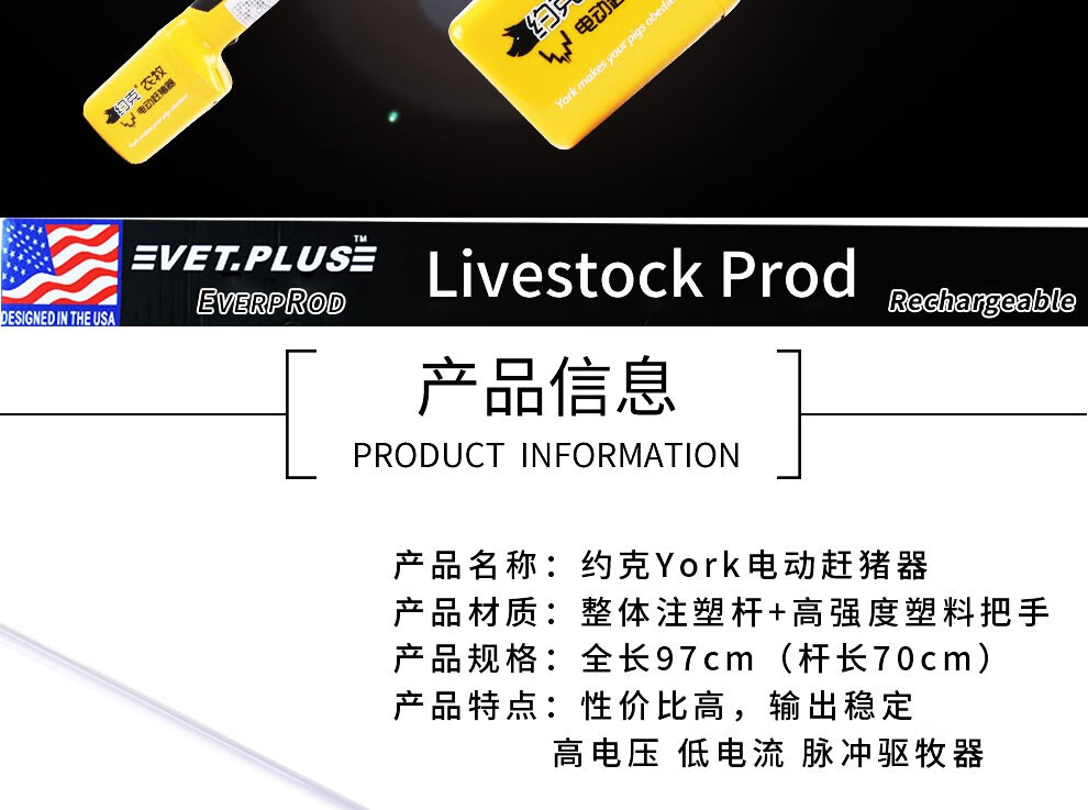 York (YORK) black gold version of the electric pig herder electric baton high-power animal electric pig herder will be shipped after disinfection Pig herder 97cm full length