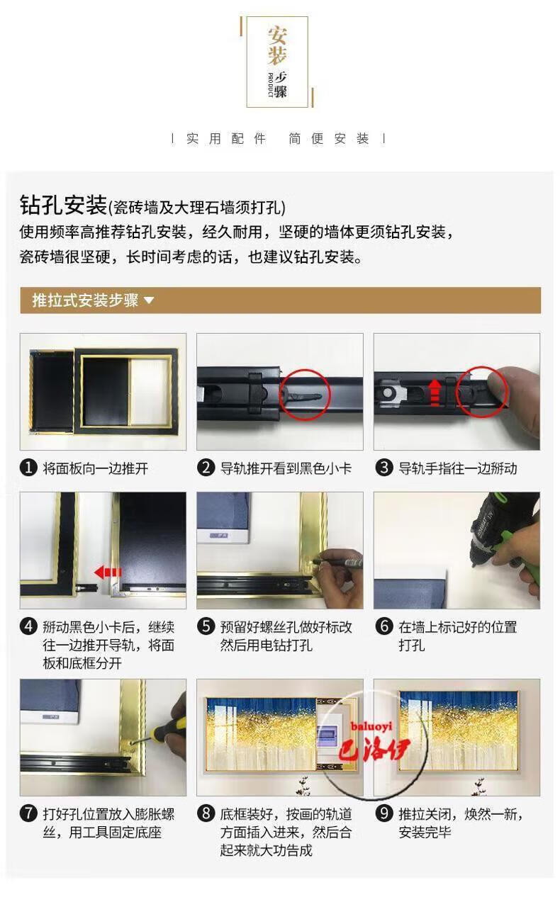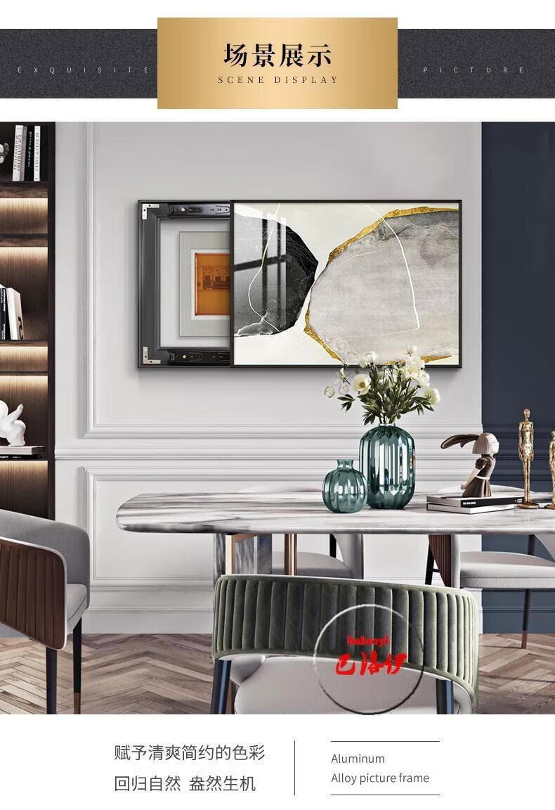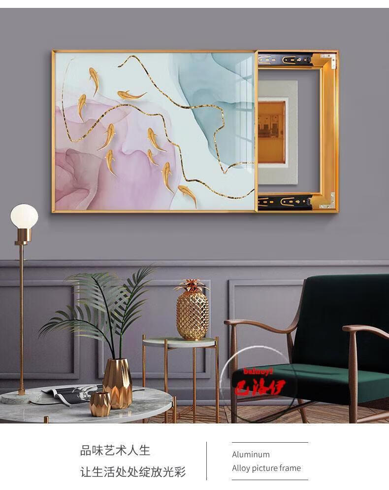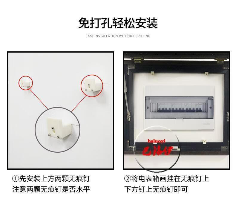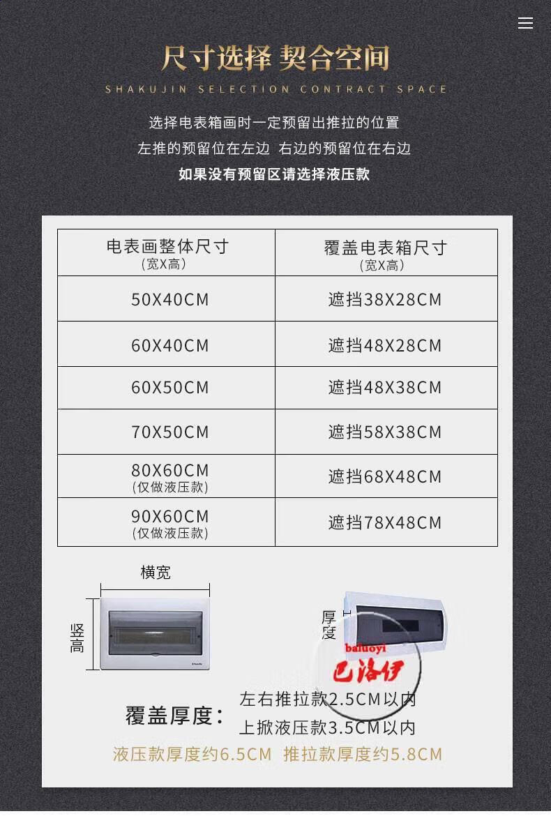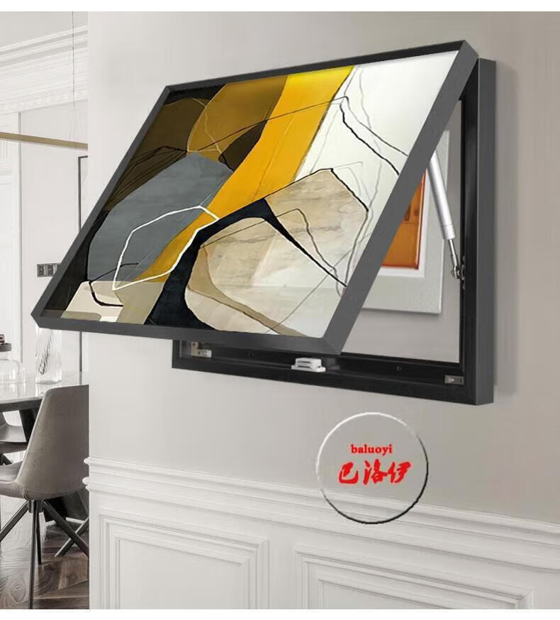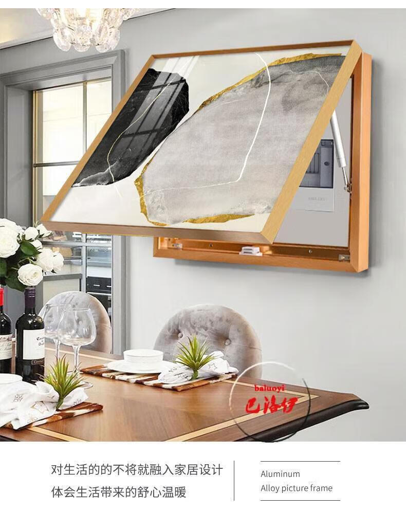 Baloyi deeply customized electric meter box decorative painting, custom-made large-size switch box painting, shielding switch, weak current box without punching, hydraulic flip cover, black frame and gold frame, customized size 2, aluminum alloy frame, tempered crystal screen