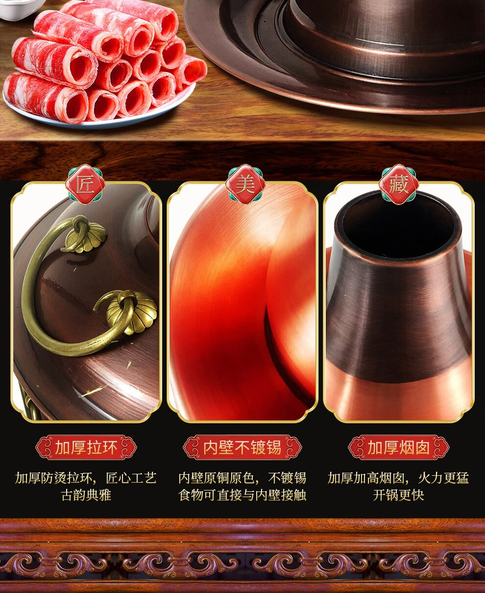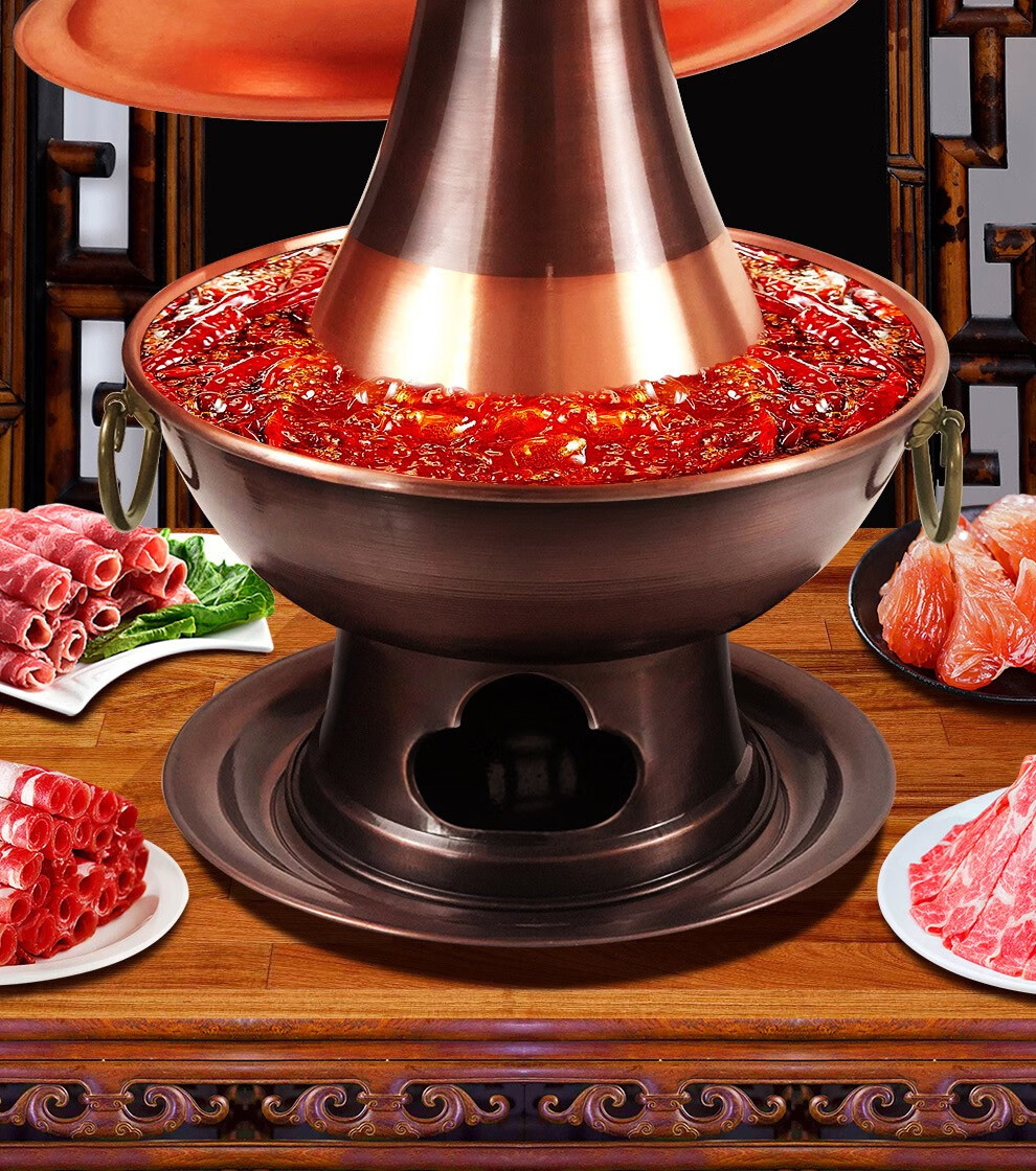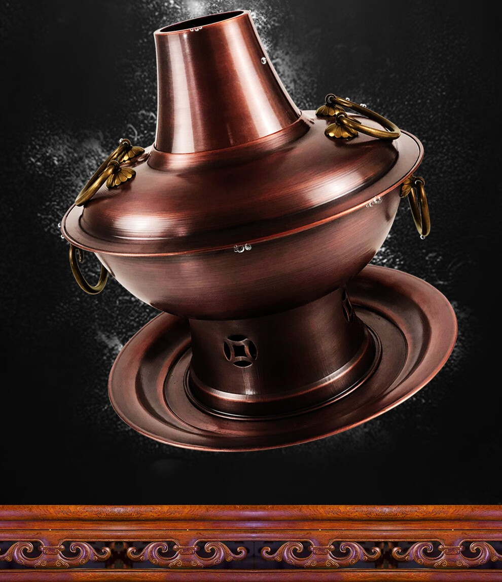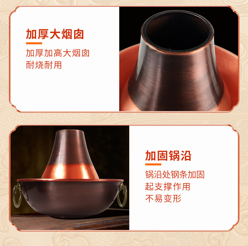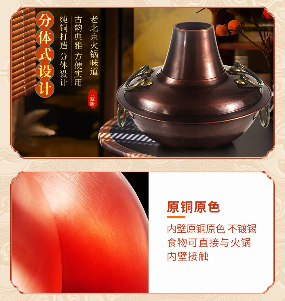 Guo Yiyuan olla caliente de cobre dividida retro olla caliente de carbón de carbón antigua olla de pato mandarín hervida con cordero de Beijing olla caliente de cobre cobre puro 34 cm sabor único 6-8 personas carbón retro 34 cm