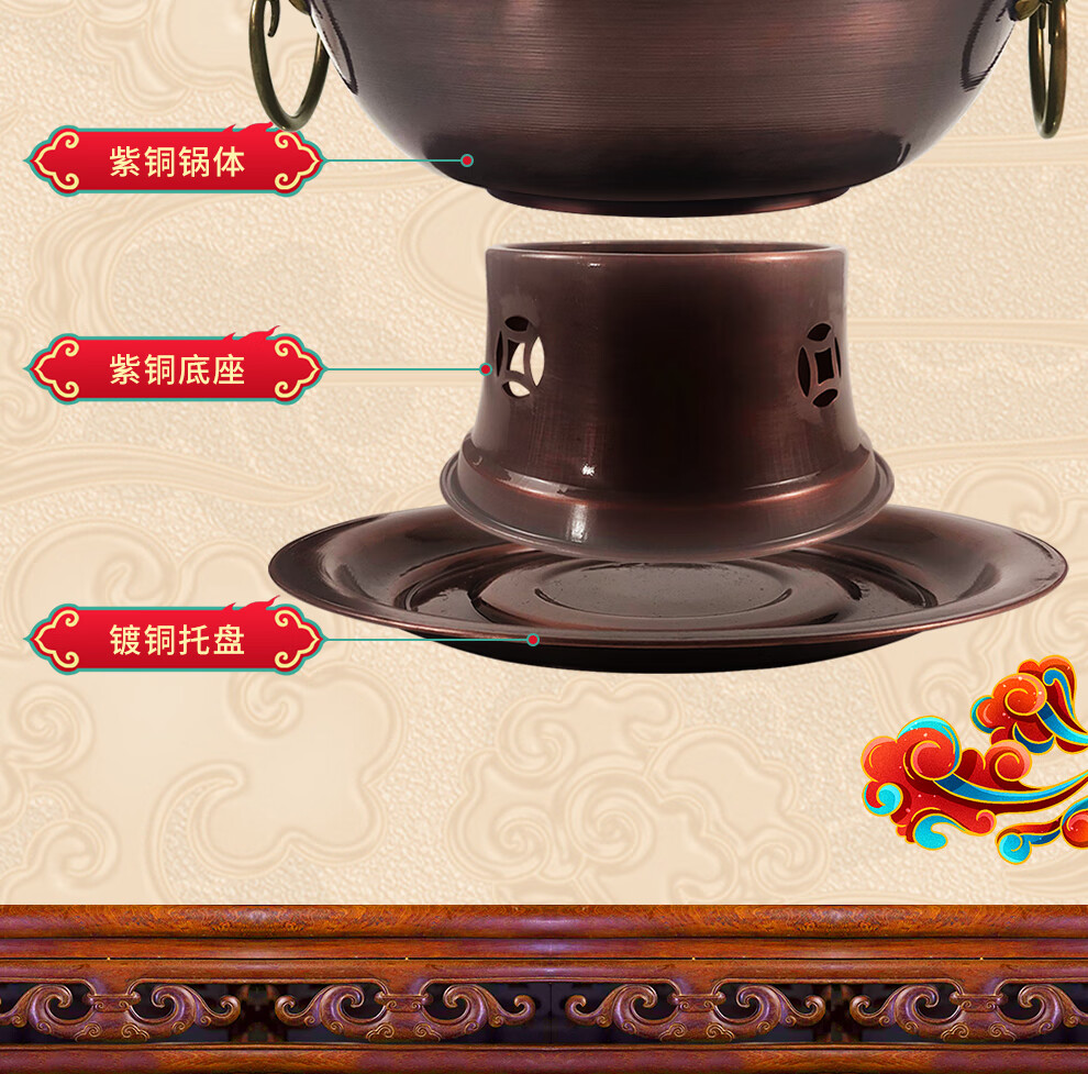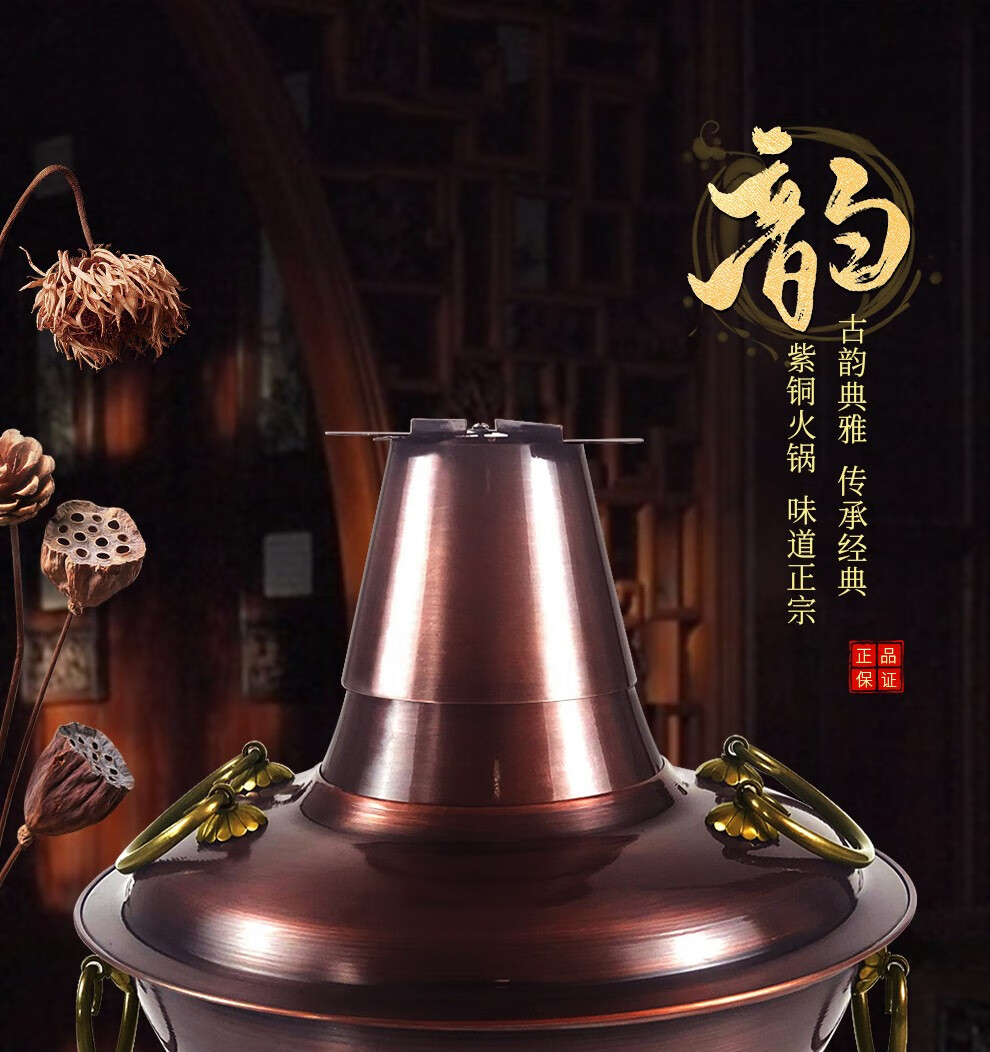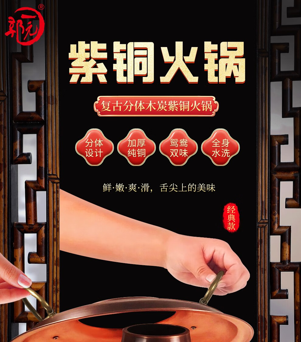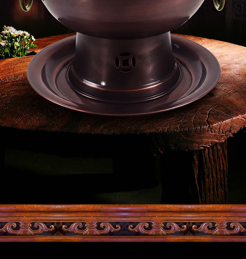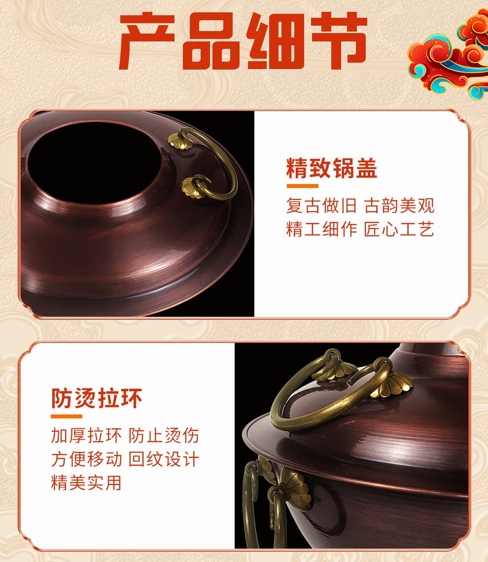 Guo Yiyuan olla caliente de cobre dividida retro olla caliente de carbón de carbón antigua olla de pato mandarín hervida con cordero de Beijing olla caliente de cobre cobre puro 34 cm sabor único 6-8 personas carbón retro 34 cm