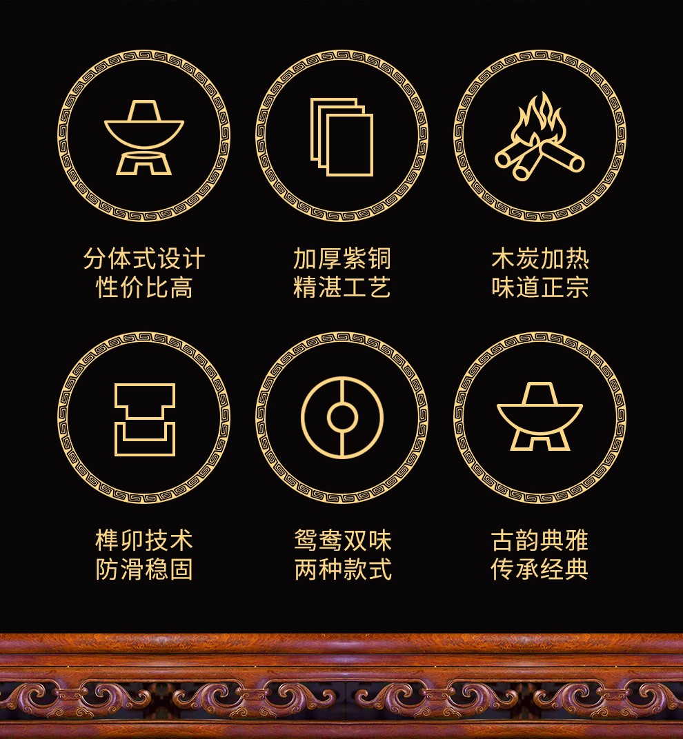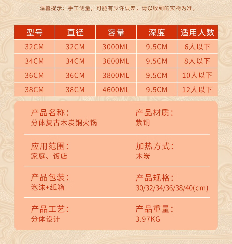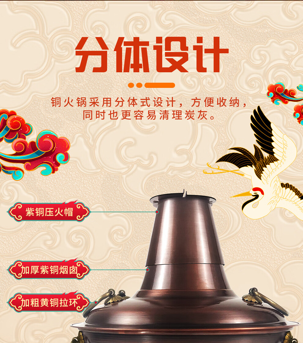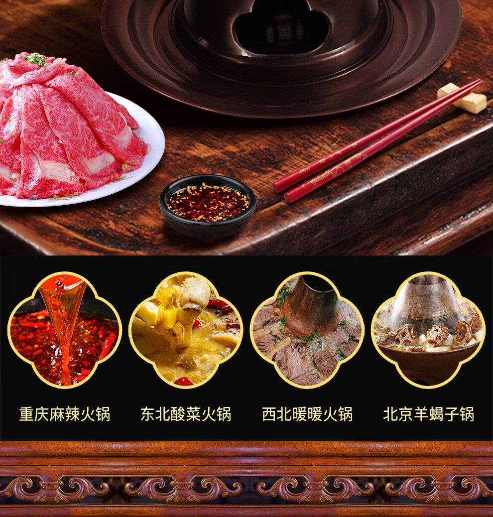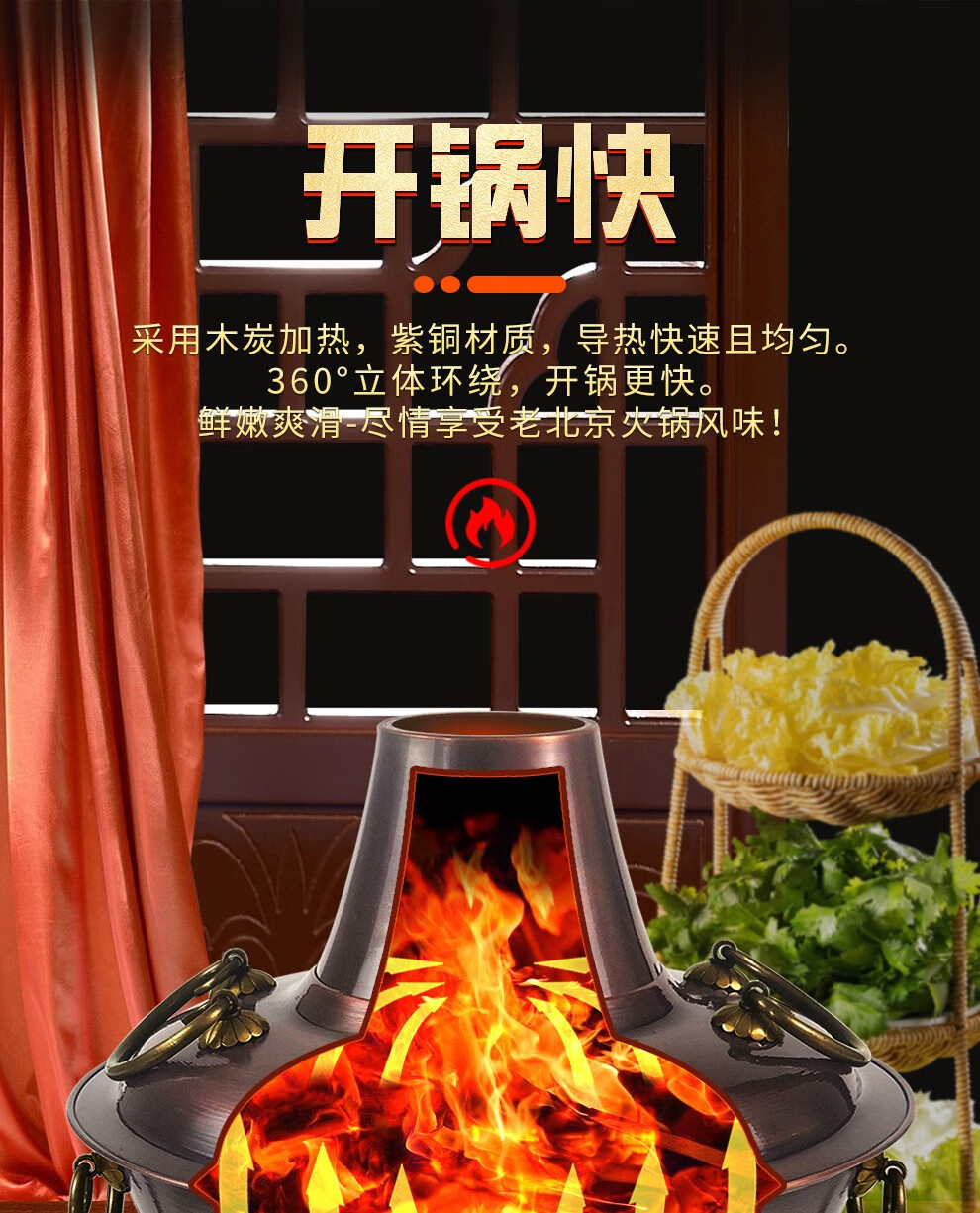 Guo Yiyuan olla caliente de cobre dividida retro olla caliente de carbón de carbón antigua olla de pato mandarín hervida con cordero de Beijing olla caliente de cobre cobre puro 34 cm sabor único 6-8 personas carbón retro 34 cm