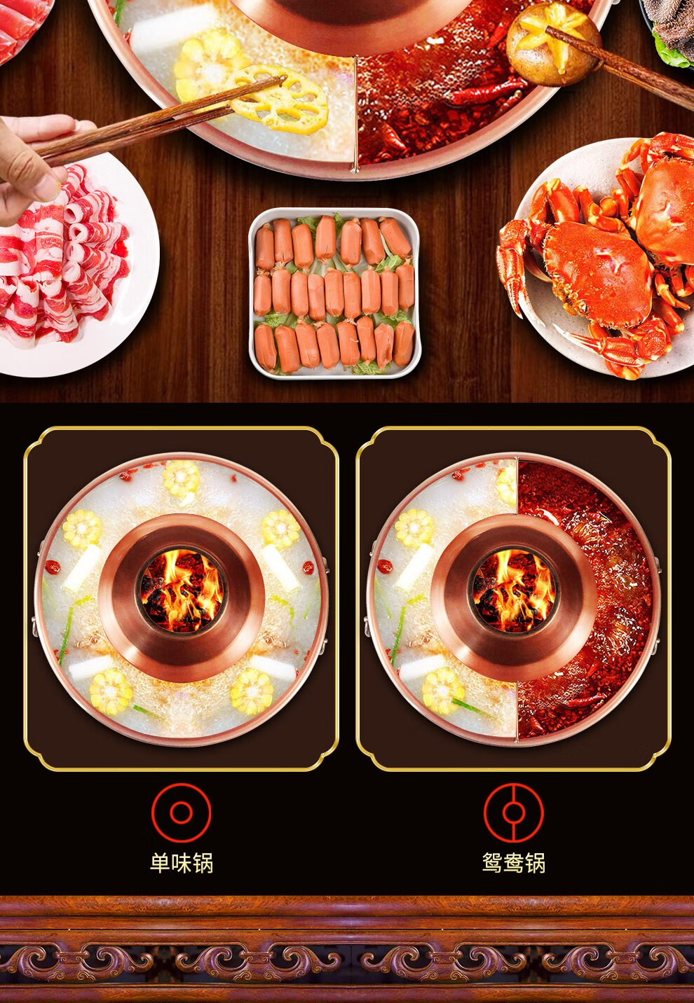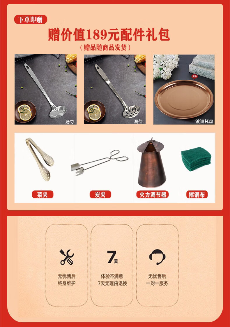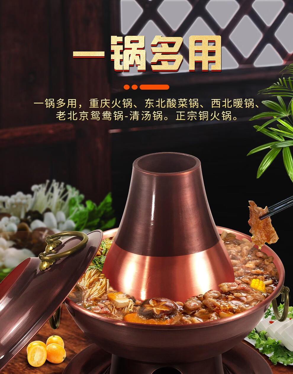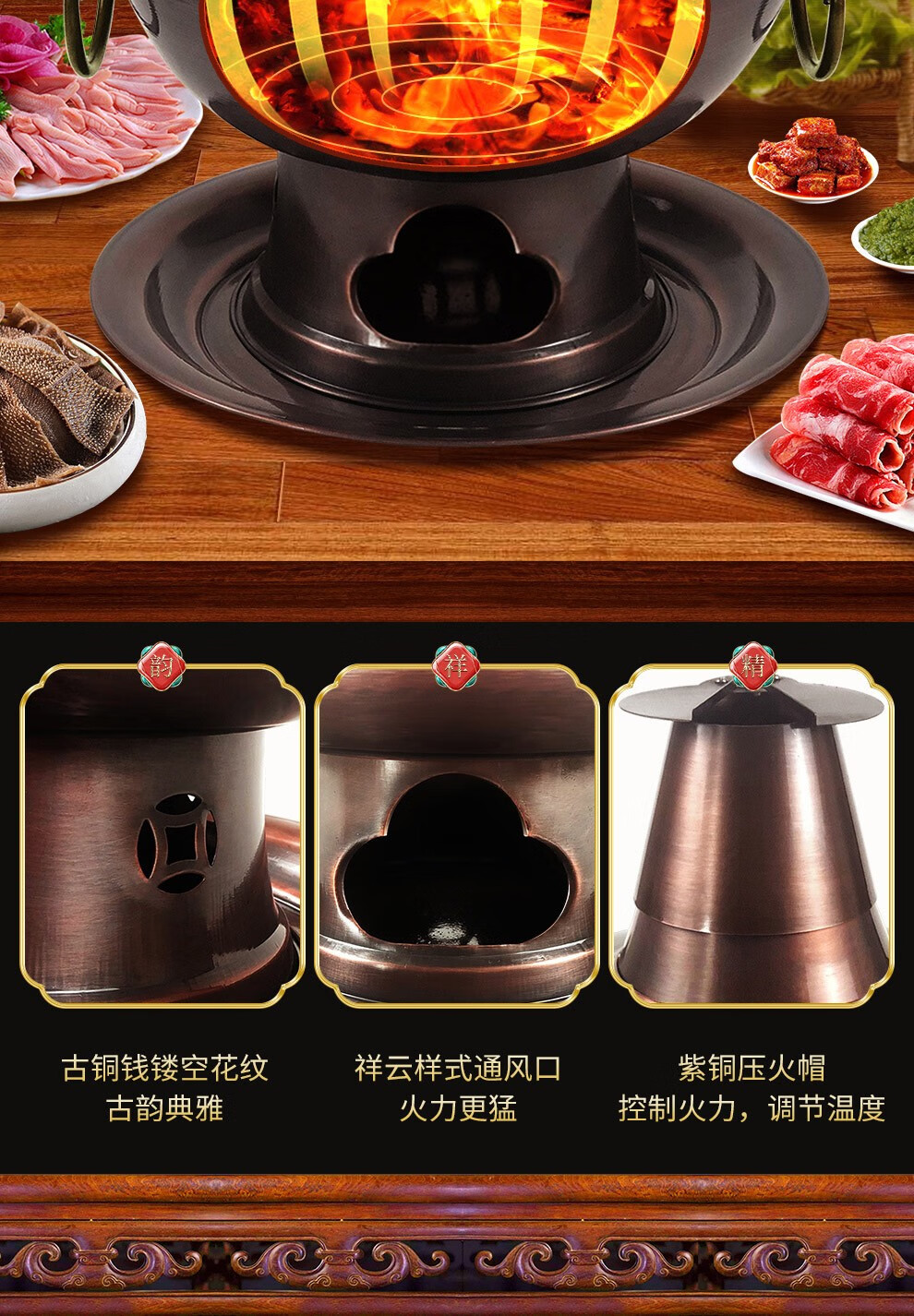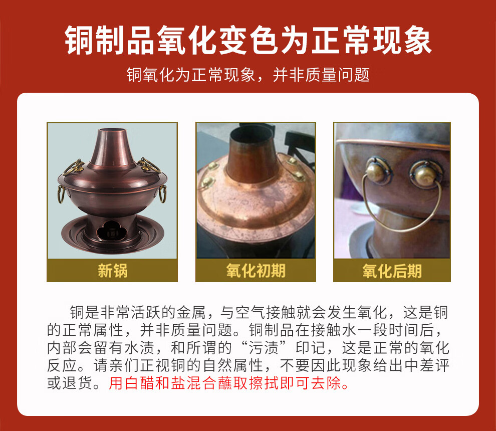 Guo Yiyuan olla caliente de cobre dividida retro olla caliente de carbón de carbón antigua olla de pato mandarín hervida con cordero de Beijing olla caliente de cobre cobre puro 34 cm sabor único 6-8 personas carbón retro 34 cm