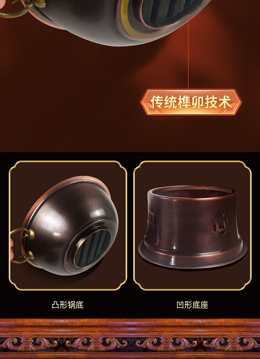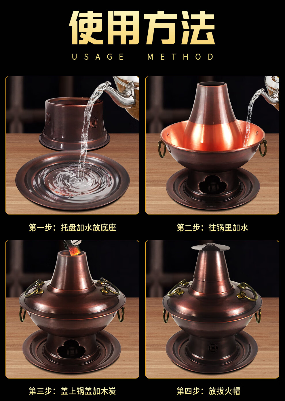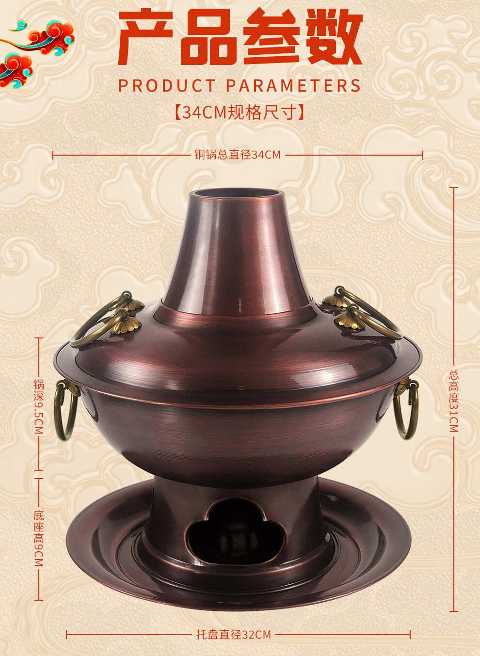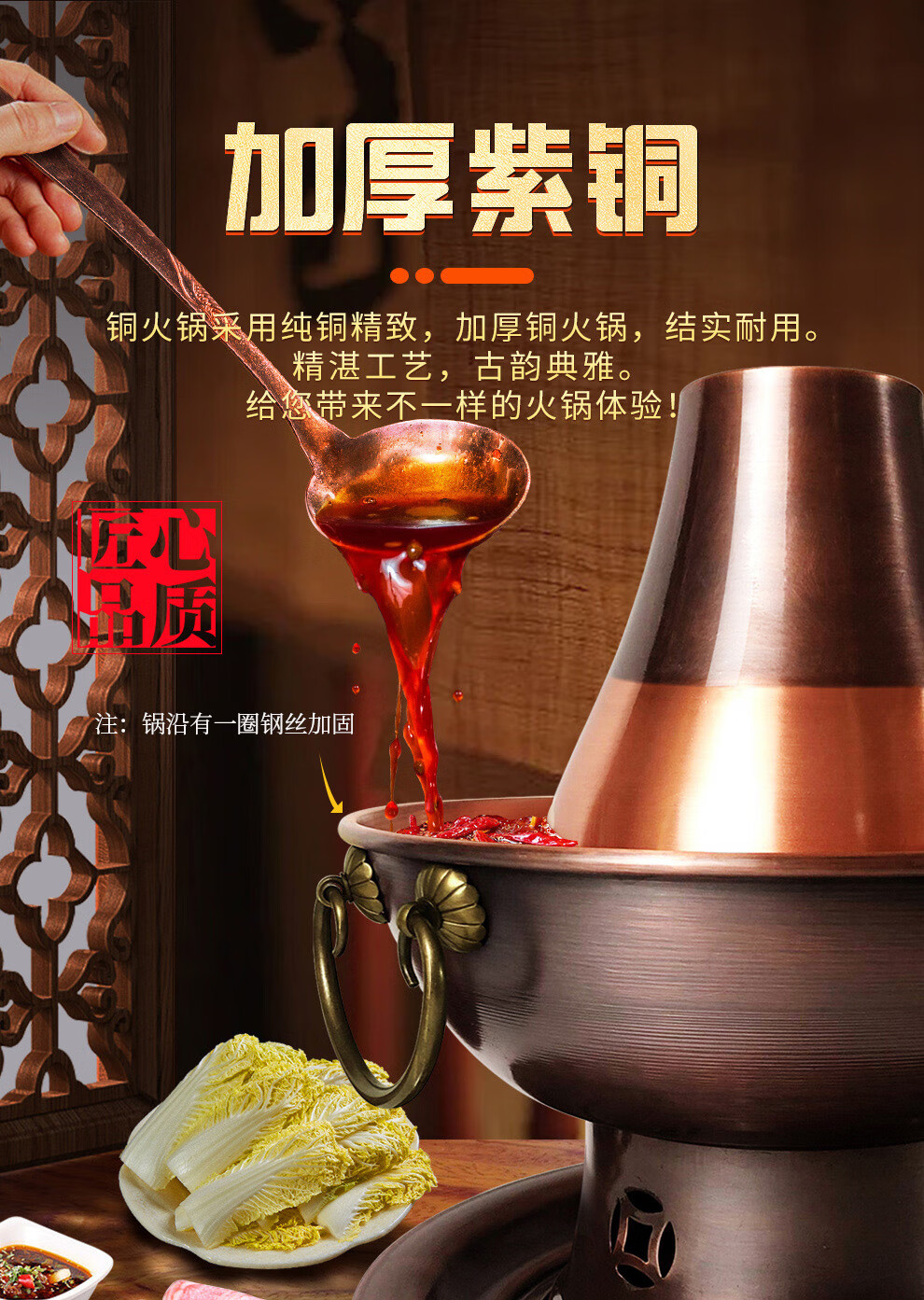 Guo Yiyuan olla caliente de cobre dividida retro olla caliente de carbón de carbón antigua olla de pato mandarín hervida con cordero de Beijing olla caliente de cobre cobre puro 34 cm sabor único 6-8 personas carbón retro 34 cm