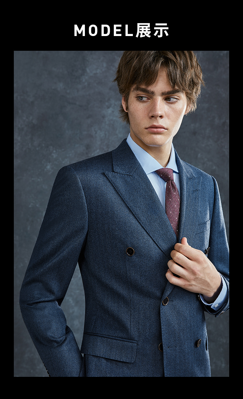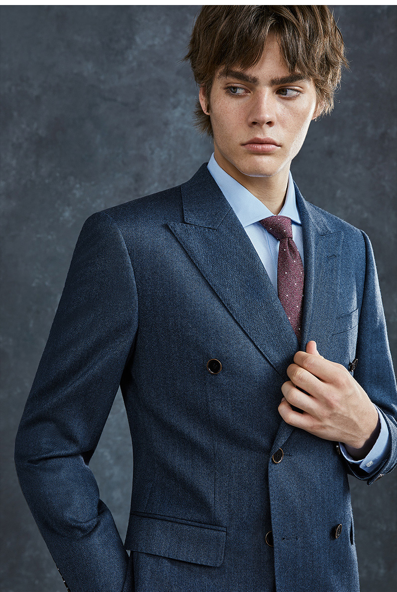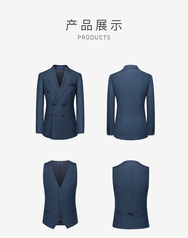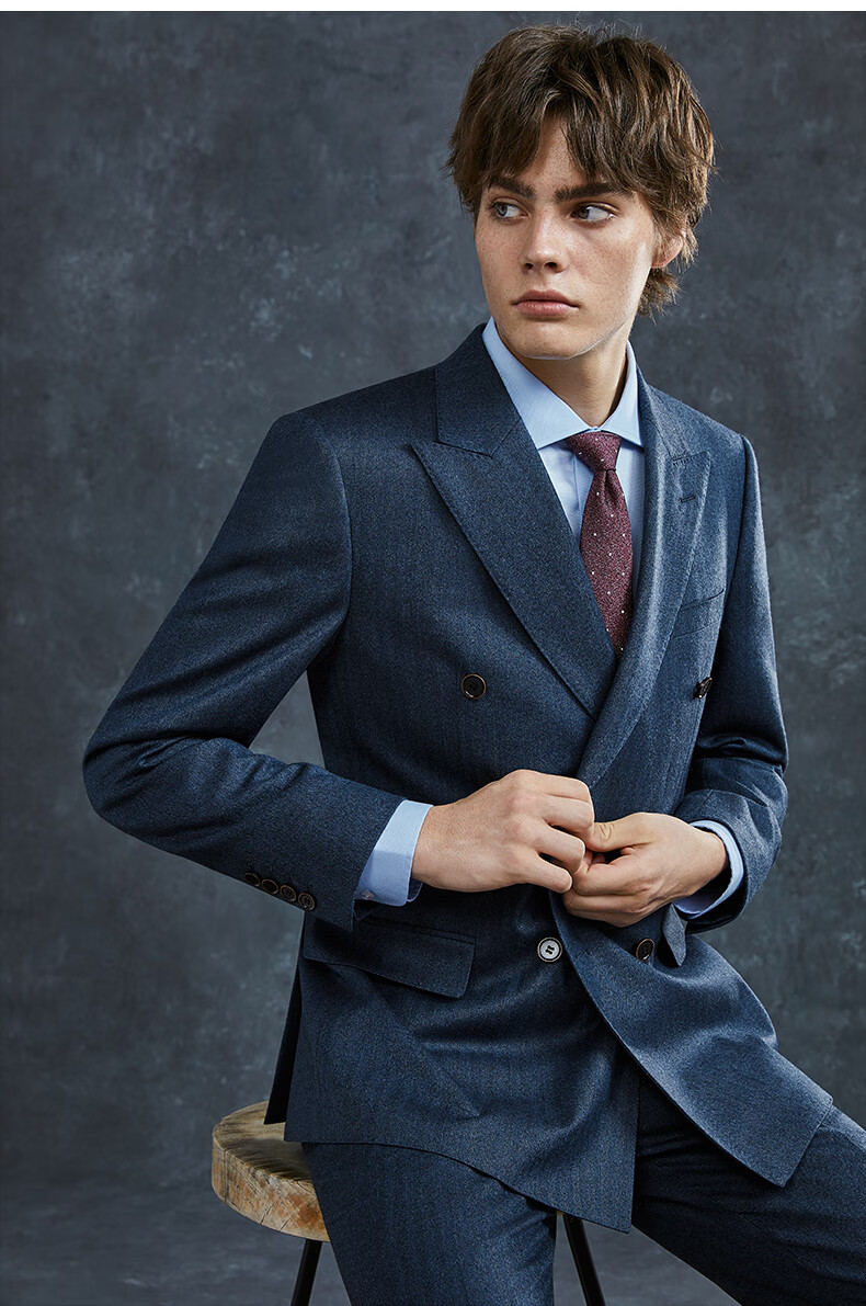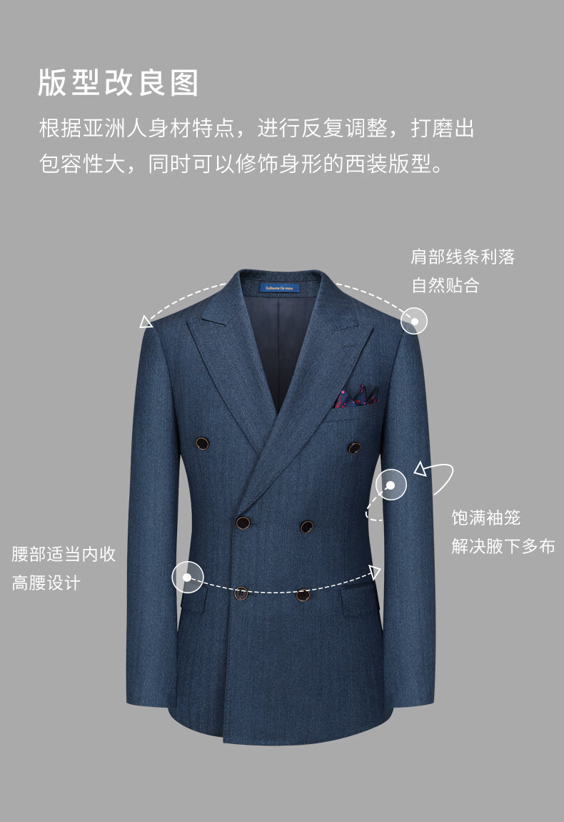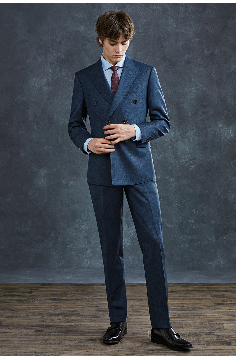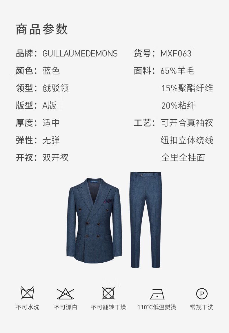 Guillaume de Mons Wool Suit Men's Double-breasted Blue Slim Business Formal Suit Groom Wedding Dress Three-piece Set Blue Top + Pants MXF063 54 Please note the size of the trousers