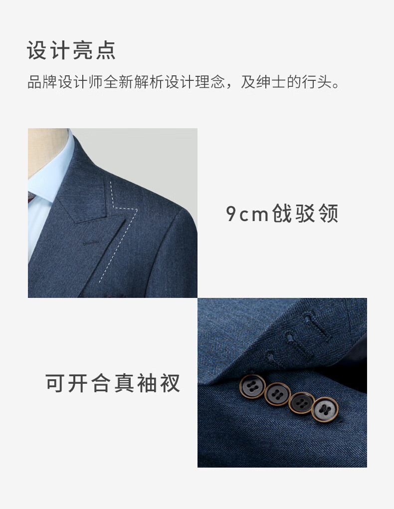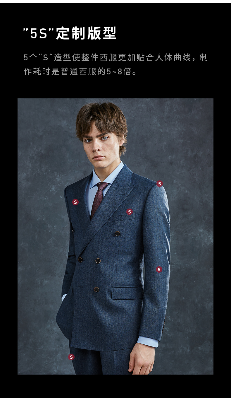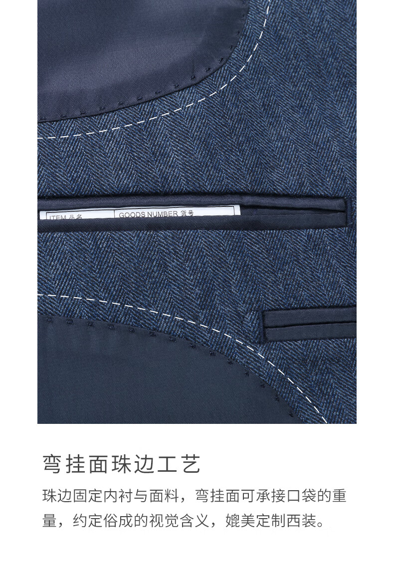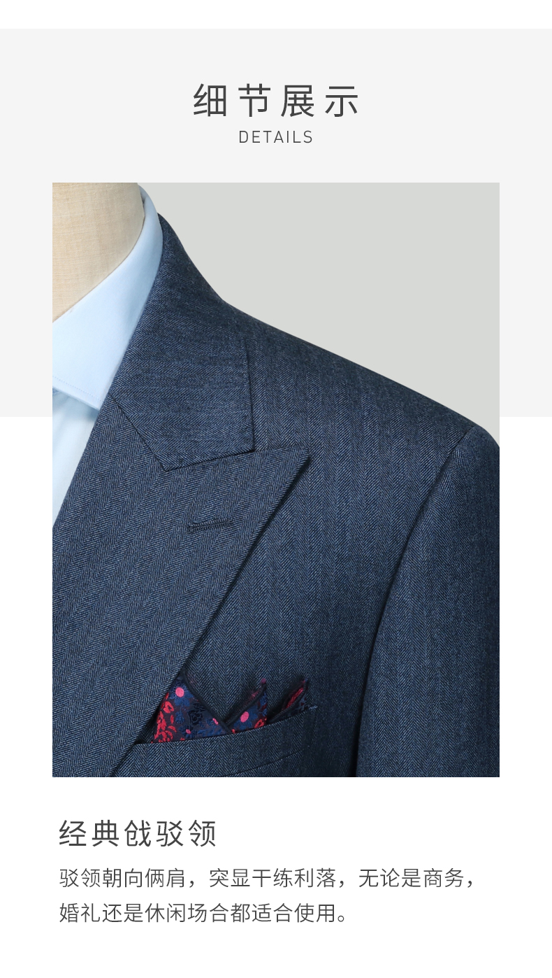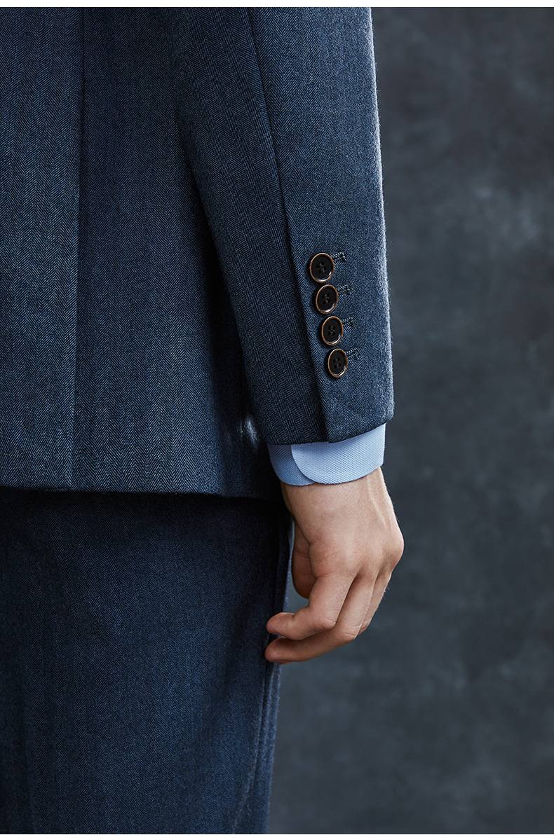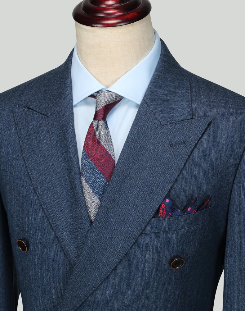 Guillaume de Mons Wool Suit Men's Double-breasted Blue Slim Business Formal Suit Groom Wedding Dress Three-piece Set Blue Top + Pants MXF063 54 Please note the size of the trousers