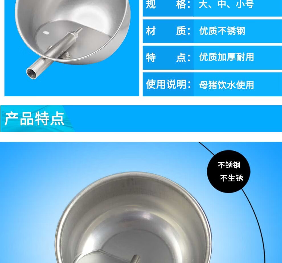 York (YORK) stainless steel pig drinking bowl, piglet drinking trough, sow automatic waterer, spout, pig farm water bowl, disinfected, extra large water bowl