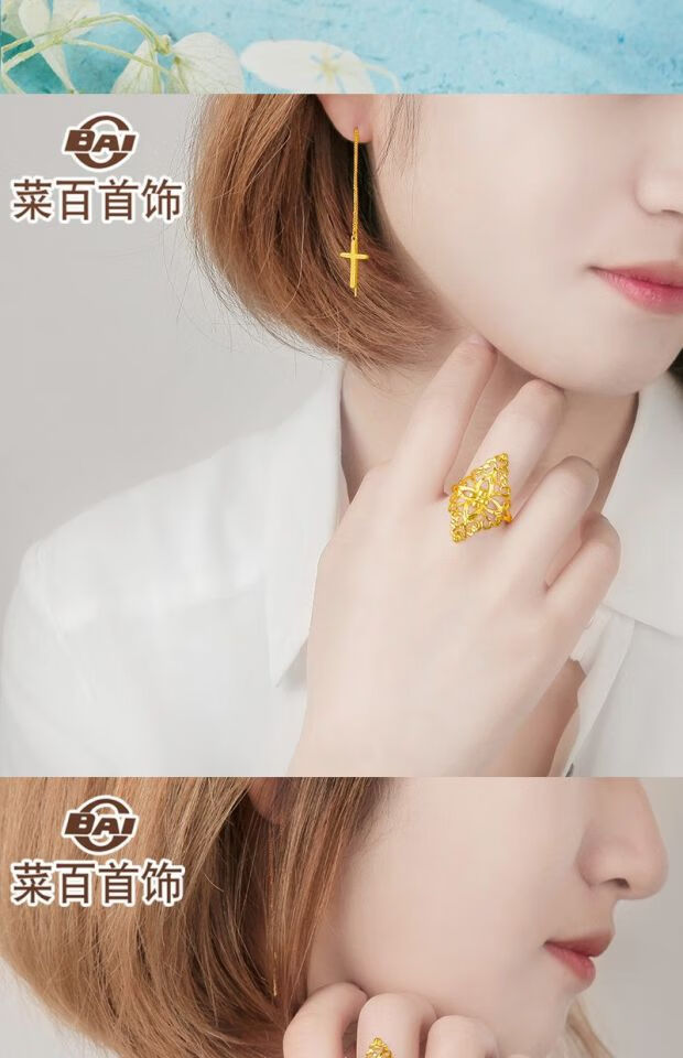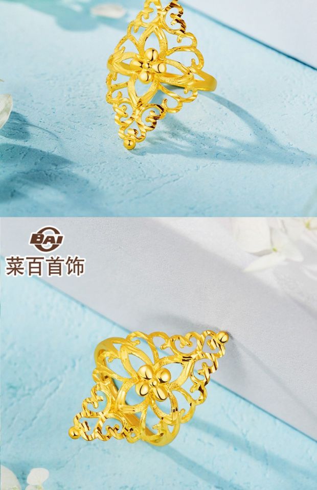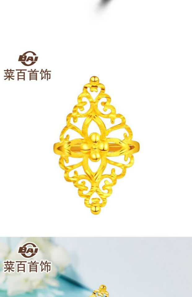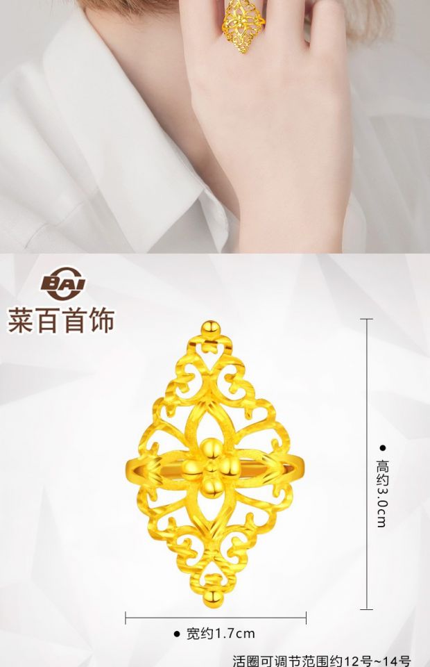 Caibai Jewelry Gold Ring Pure Gold Fashionable Diamond-shaped Hollow Flower Ring Fashionable Women’s Ring Price HJ Gold Ring Approximately 4.10g