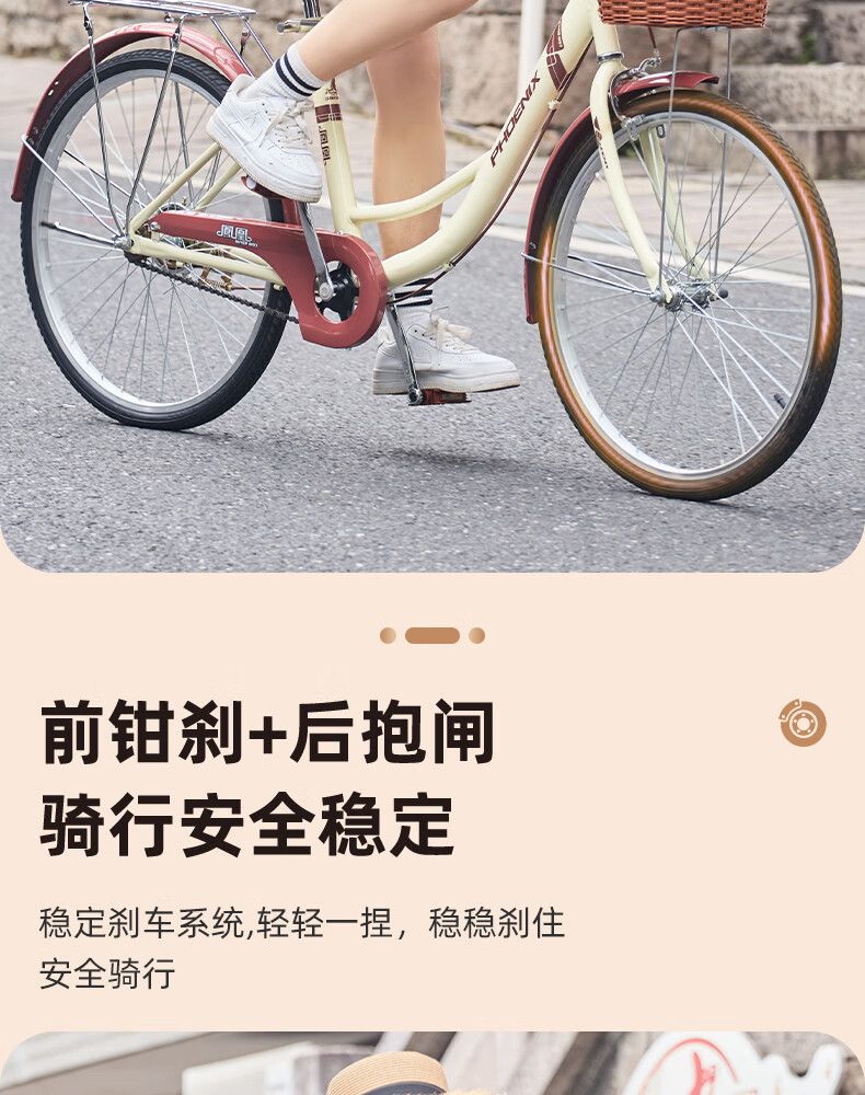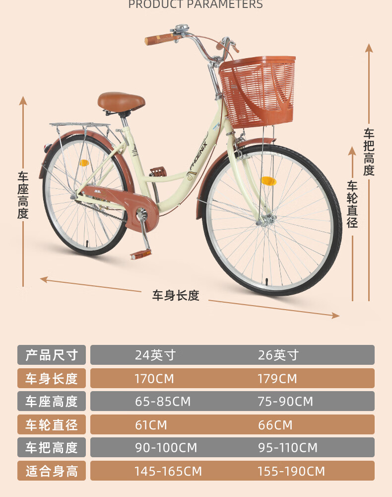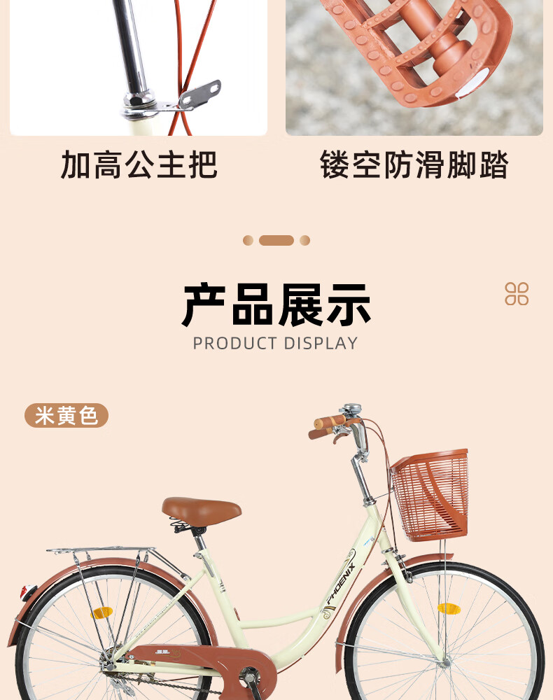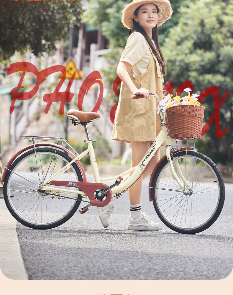 Phoenix (Phoenix) bicycle adult unisex universal urban commuter bicycle female ballet 24 inches beige