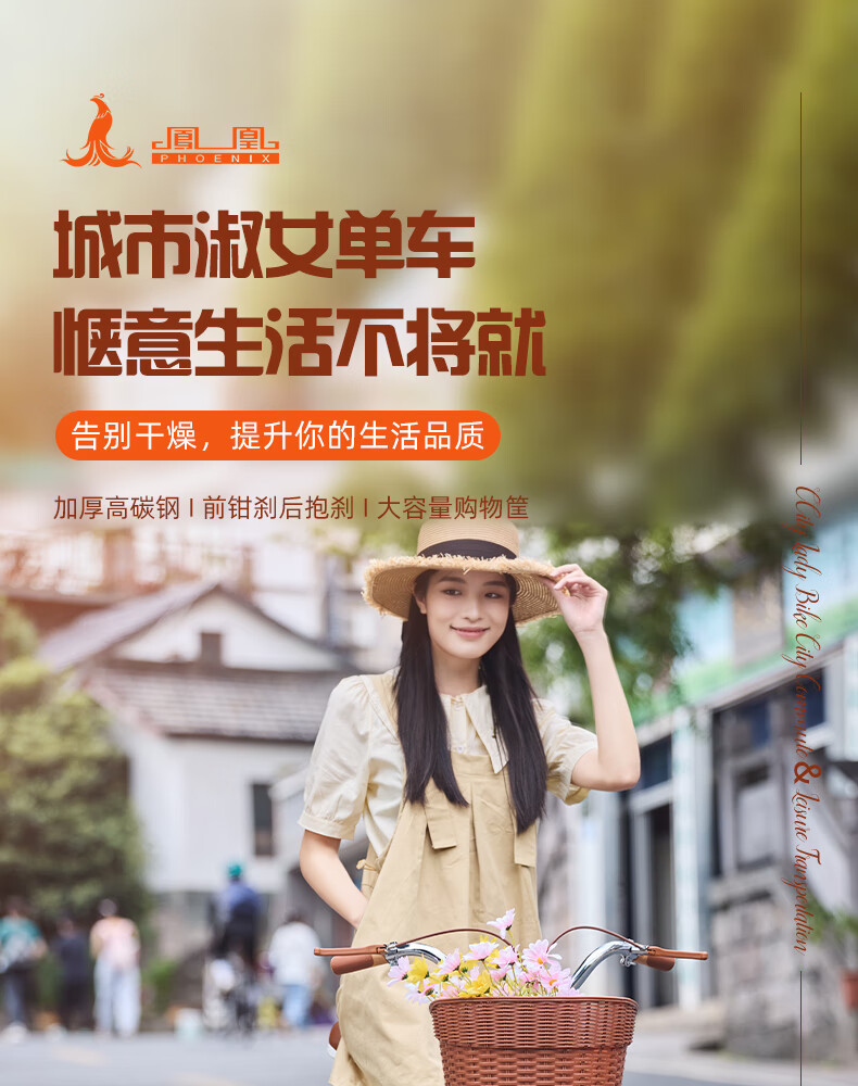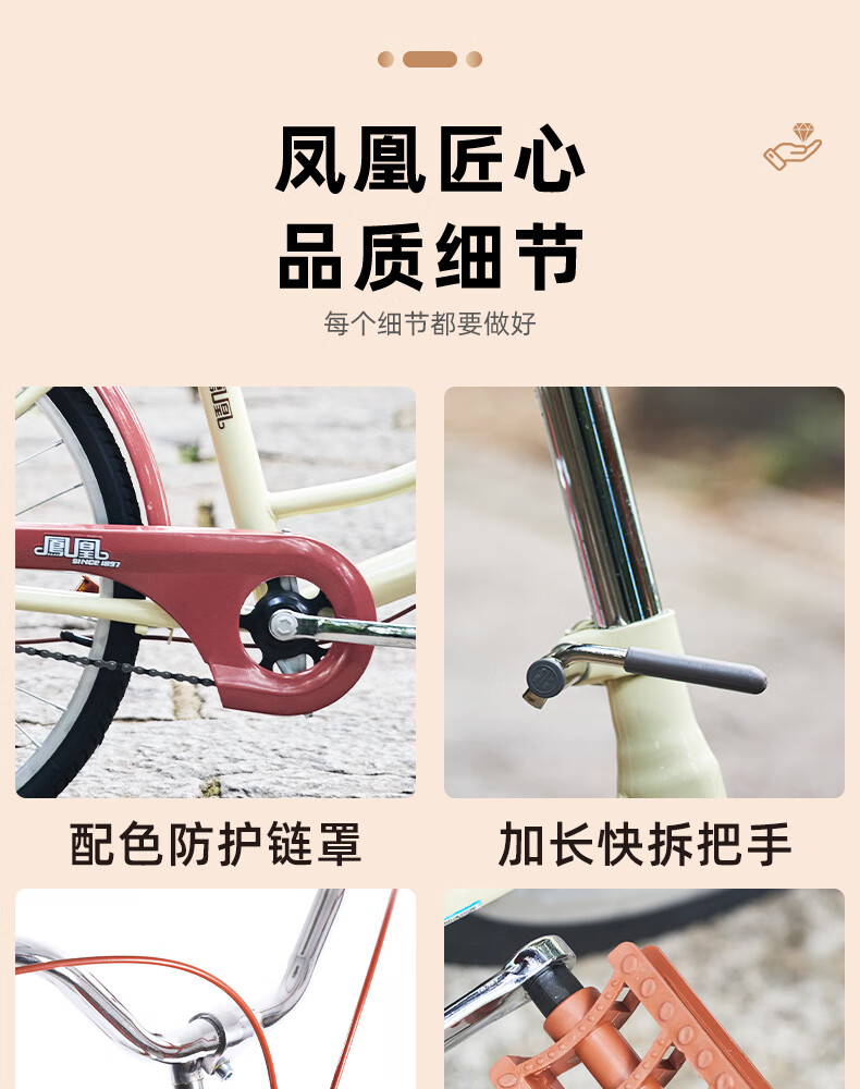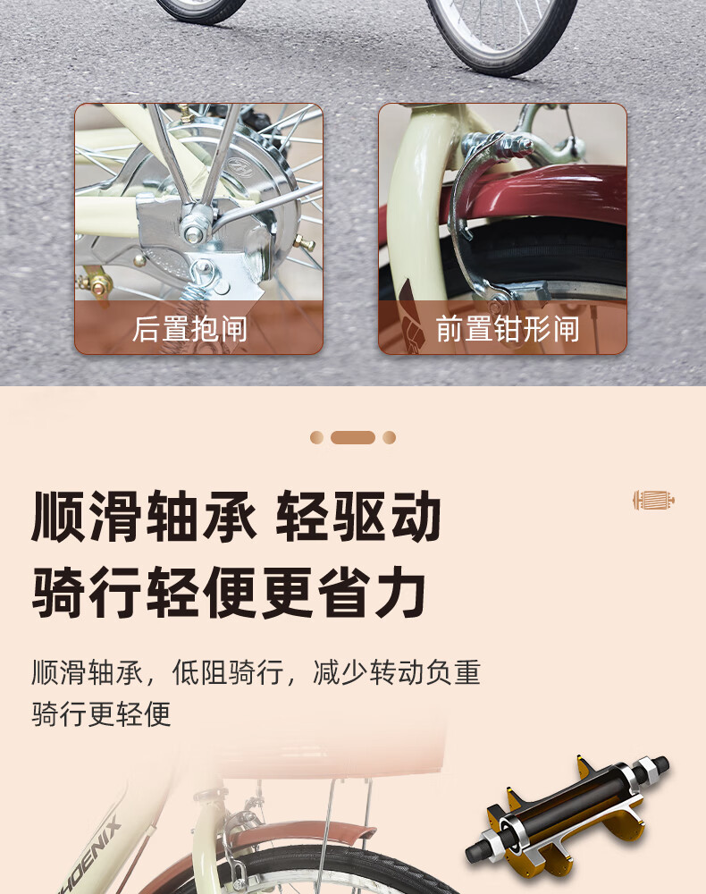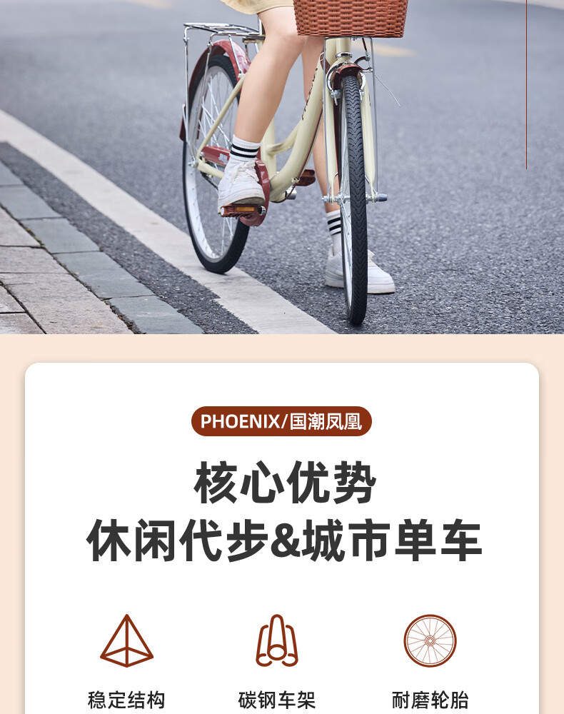 Phoenix (Phoenix) bicycle adult unisex universal urban commuter bicycle female ballet 24 inches beige