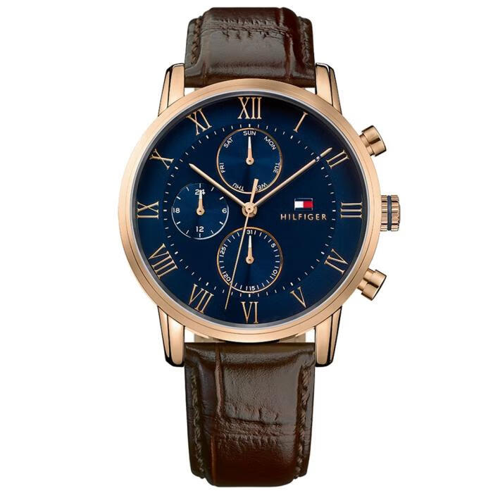 Tommy Hilfiger luxury fashion brand Tommy men's 50m quartz brown leather strap watch 44mm1791399 Brown ONE SIZE