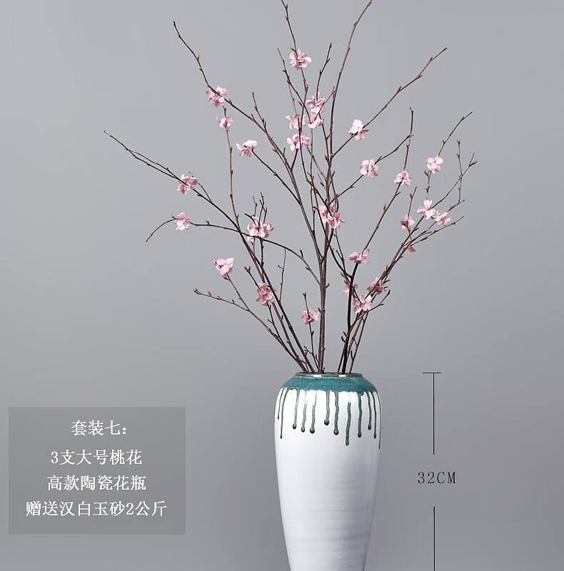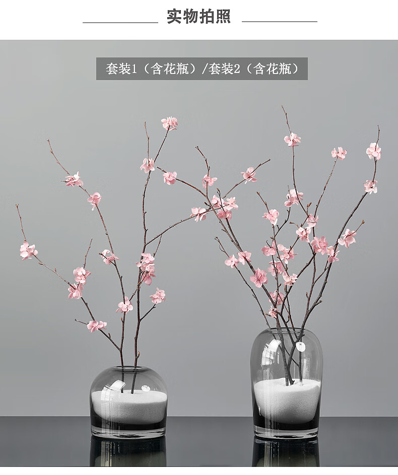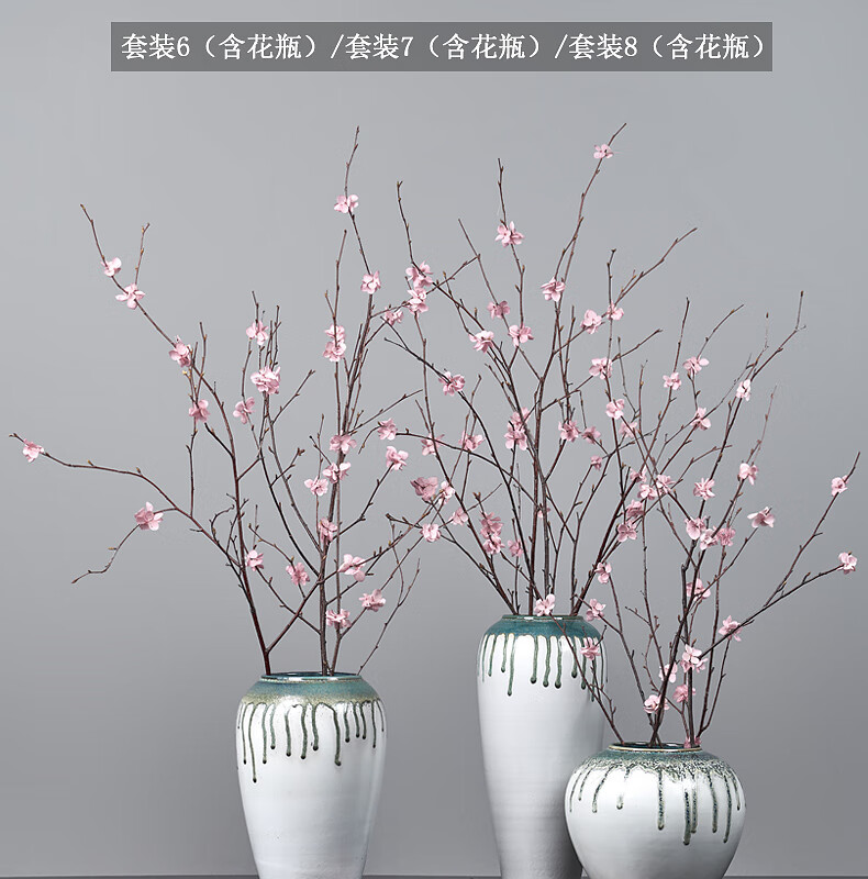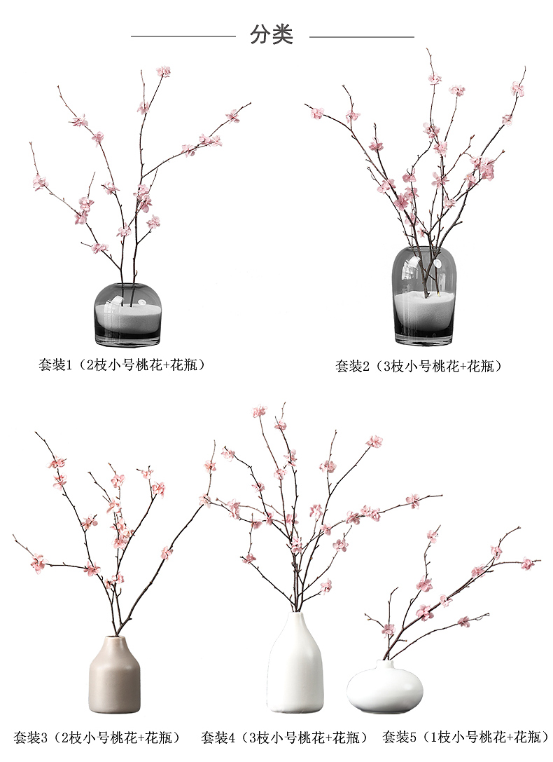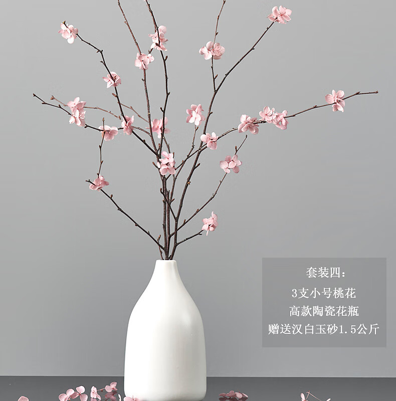 Peach blossom branch, peach blossom, fake peach blossom branch, peach blossom decoration, peach blossom dried flower bouquet, home furnishings, fake simulated peach blossom branch, single dried flower vase, decorative ornaments with vase, simulated flower set, one small peach blossom branch, about 60 cm long