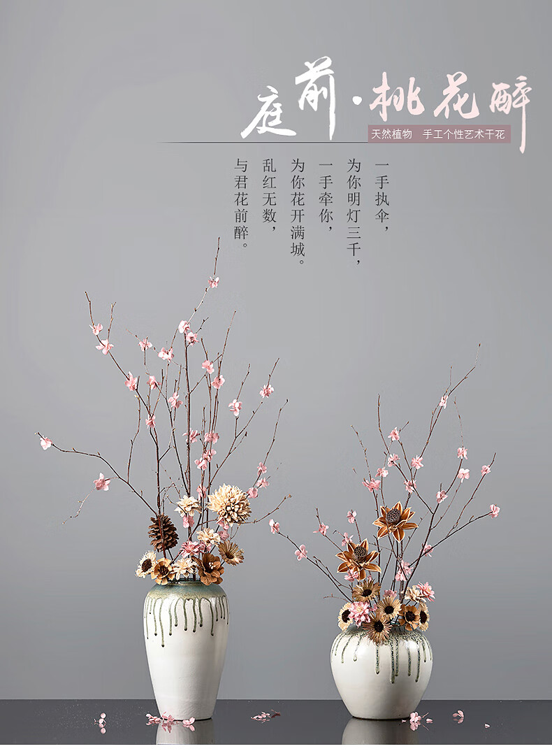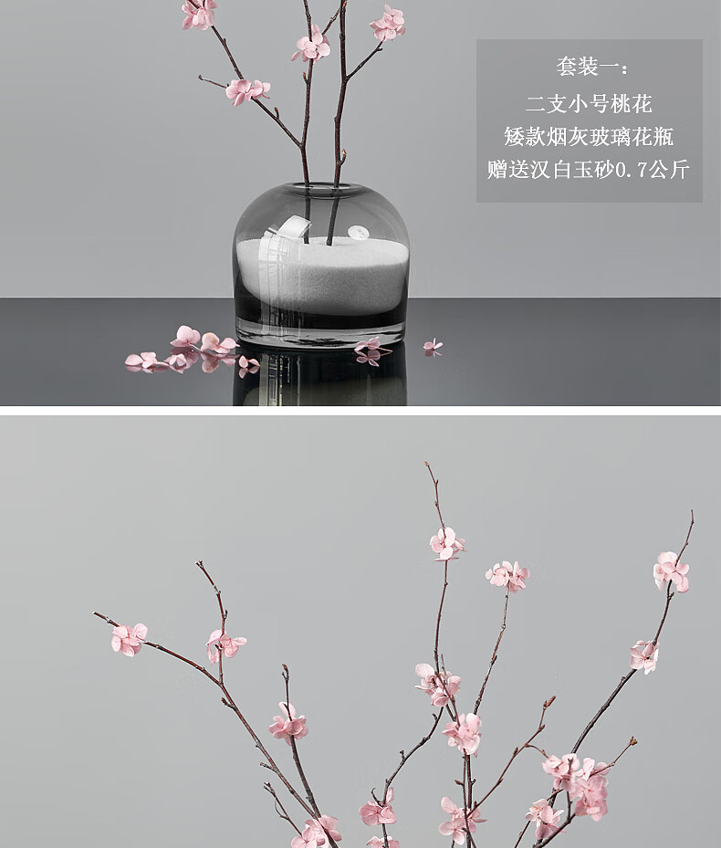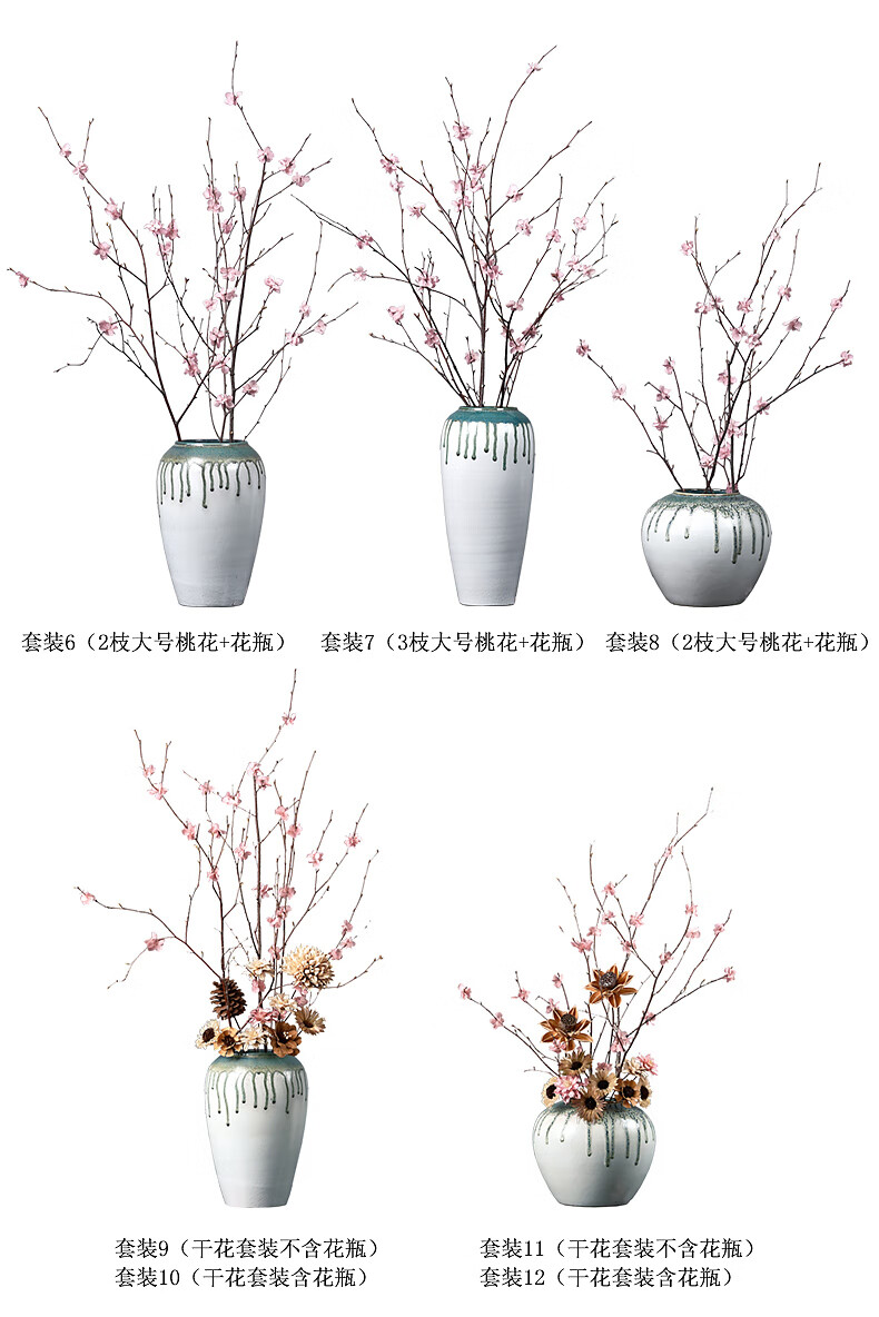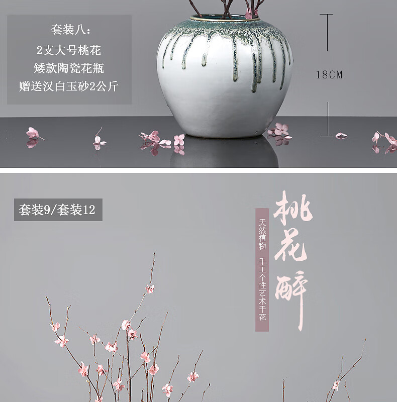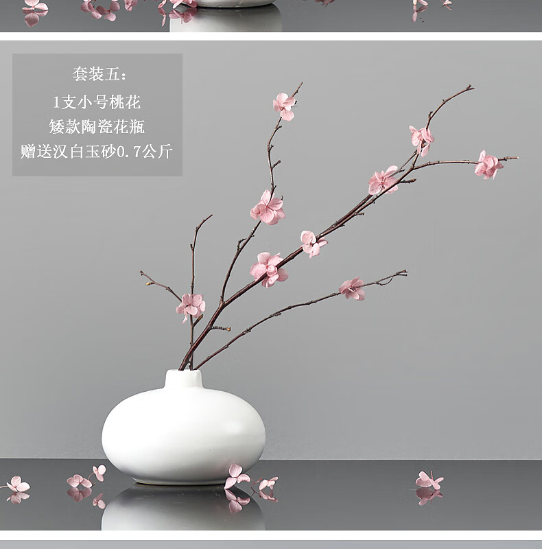 Peach blossom branch, peach blossom, fake peach blossom branch, peach blossom decoration, peach blossom dried flower bouquet, home furnishings, fake simulated peach blossom branch, single dried flower vase, decorative ornaments with vase, simulated flower set, one small peach blossom branch, about 60 cm long