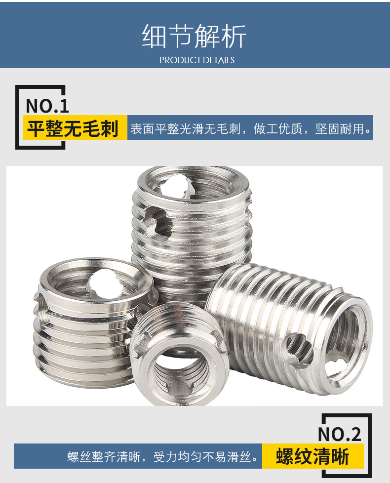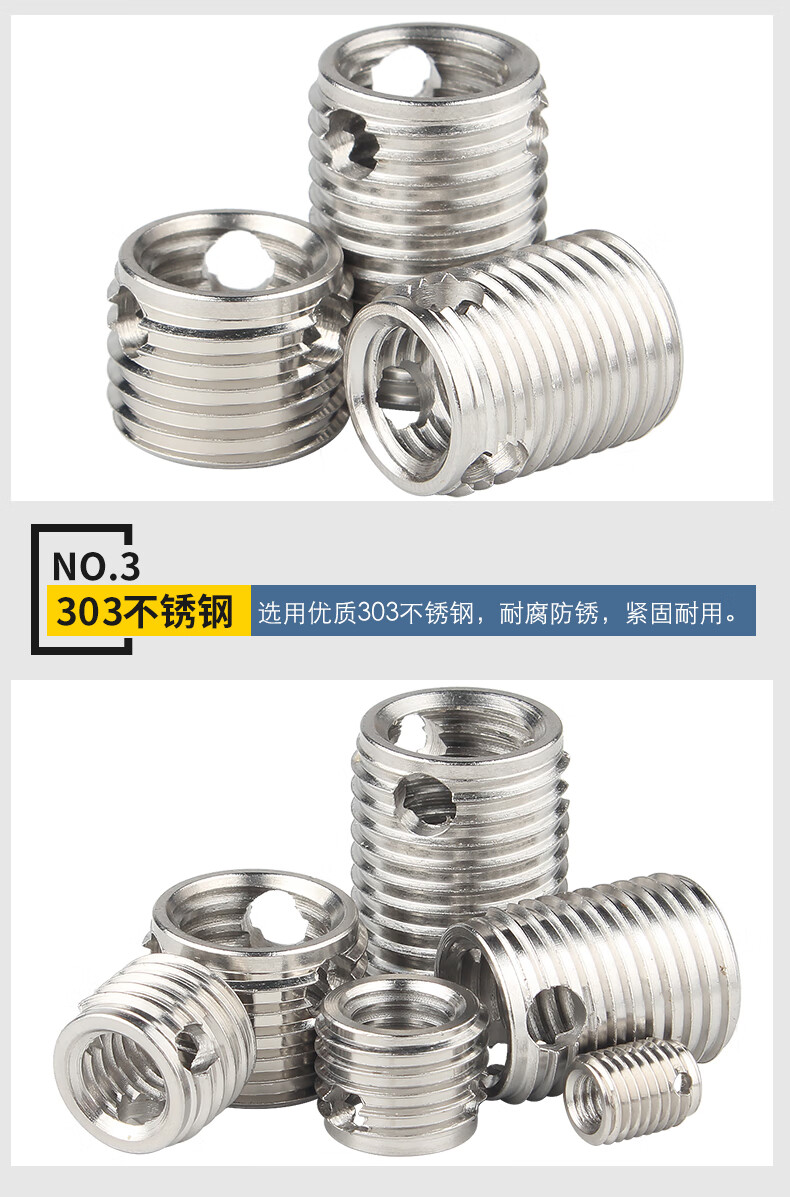 Guwanji 307\/308 stainless steel self-tapping screw insert\/three-hole brace thread protective sleeve M4*6.5*6 307 type-2 pieces