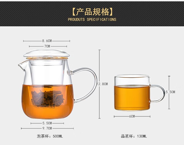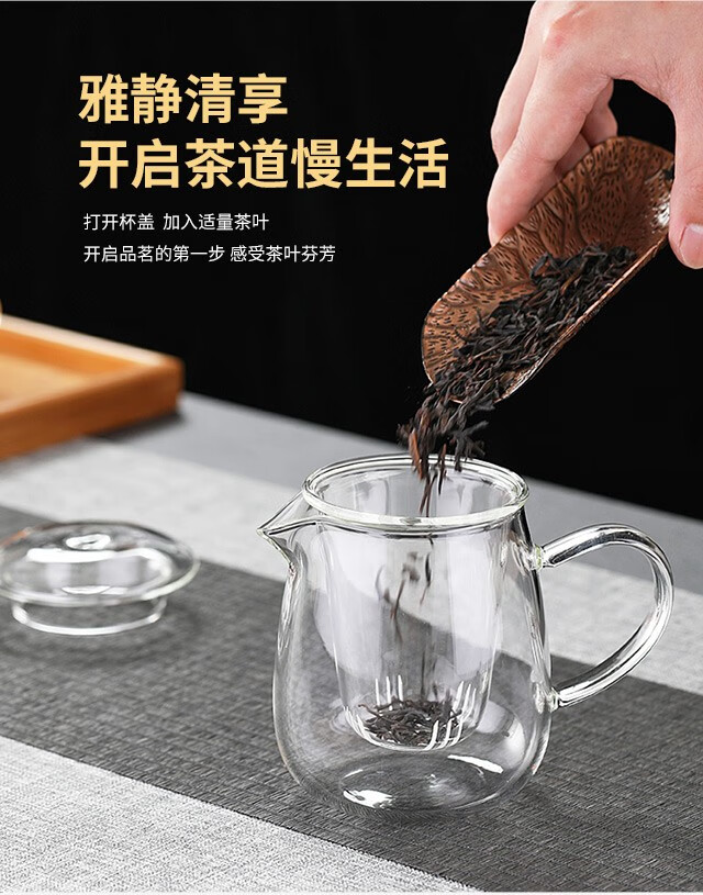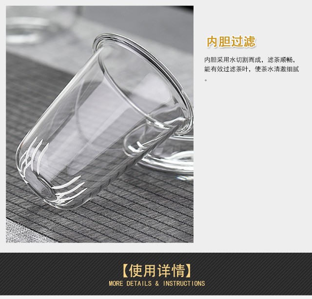 Yiji thickened heat-resistant glass tea water separation teapot transparent black tea tea set tea maker household large-capacity floral teapot mushroom cup single cup 500ML